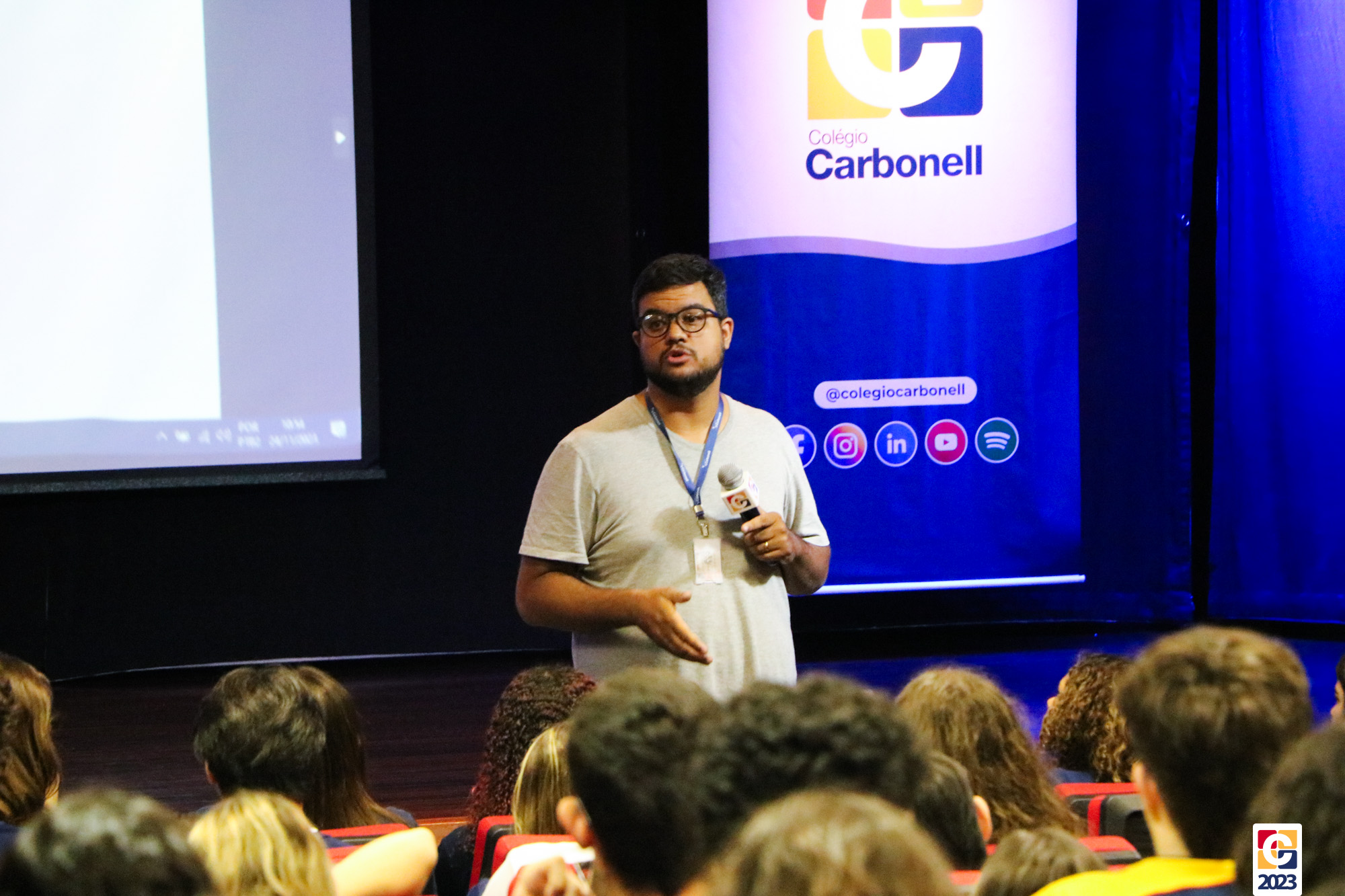 Para começar, imagens das turmas de 9º ano e do Ensino Médio em mais uma edição do Cine Debate. O evento, tradicionalmente organizado pela área de Ciências Humanas, fez parte das celebrações pelo Dia da Consciência Negra. Na ocasião, foi exibido o documentário “AmarElo: é tudo pra ontem“, no qual o artista Emicida apresenta personalidades negras brasileiras, intercalando-as com trechos de um grande show gravado no Theatro Municipal. 🎭
