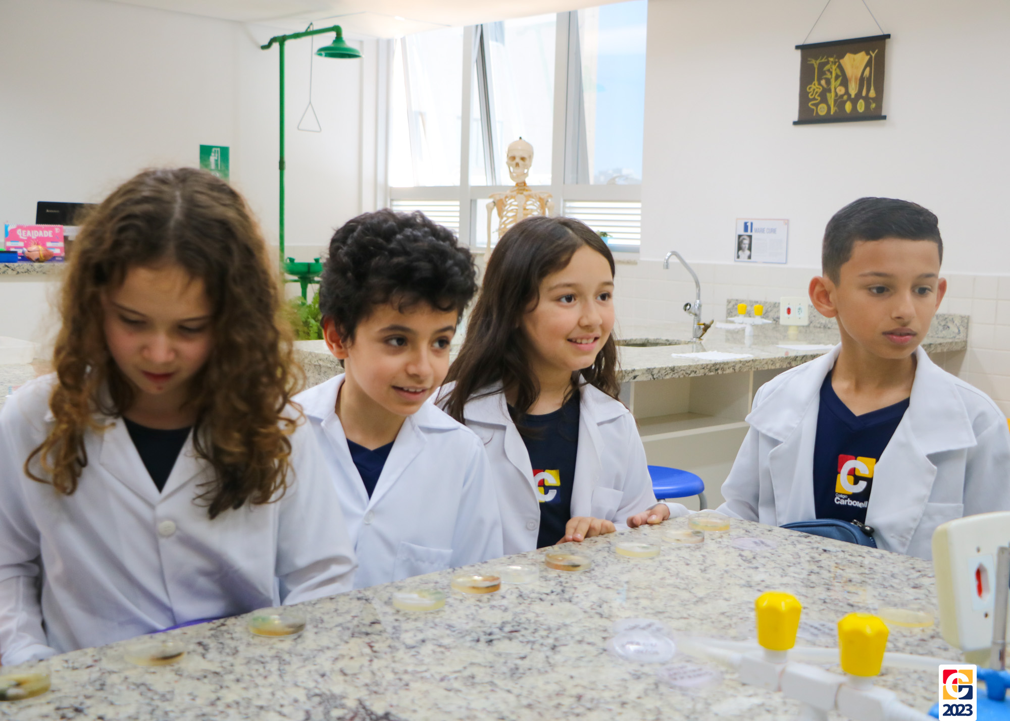 Na aula de Ciências do 4º ano – Anos Iniciais, os estudantes tiveram a oportunidade de explorar diferentes tipos de microrganismos e onde eles podem ser encontrados. No laboratório de Ciências, sob a orientação da professora Ekaterini, eles participaram de uma experiência científica. 👩🔬
