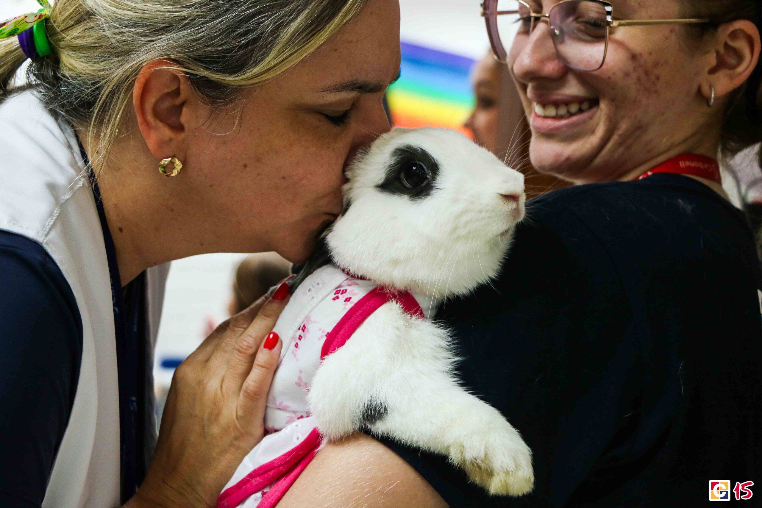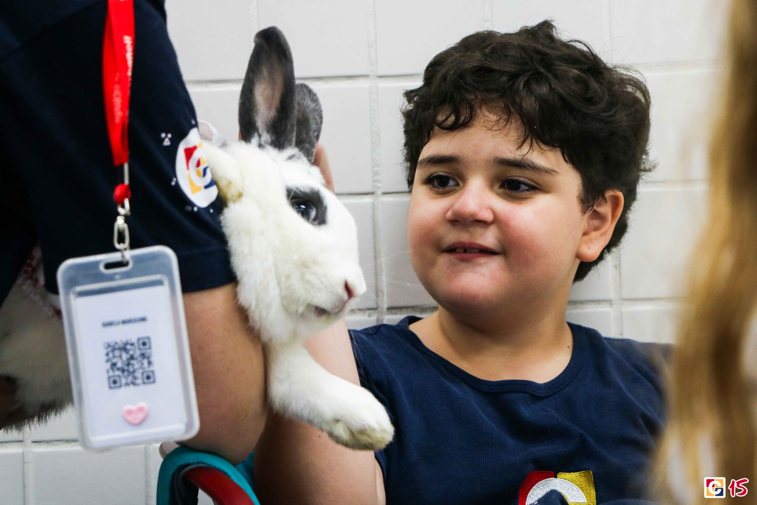 A presença de Fofucha foi também oportunidade de aprendizado, pois todos puderam aprender sobre a importância da empatia e cuidado com os animais! Que a visita nos inspire a levar alegria e bondade por onde passarmos, não apenas durante a Páscoa, mas em todos os dias do ano. 🐇