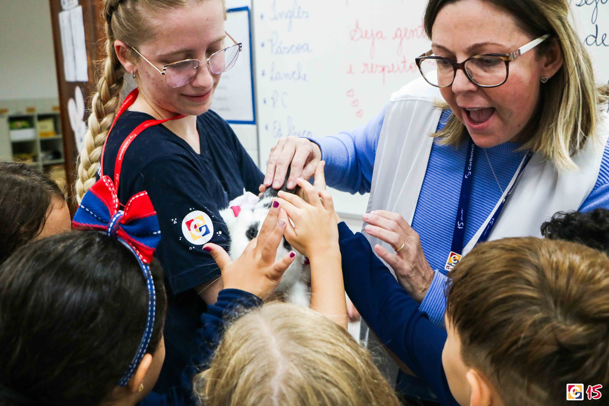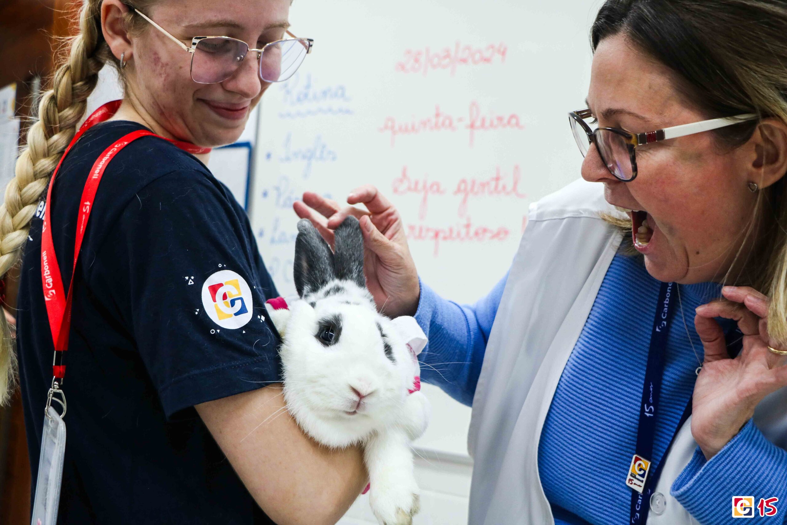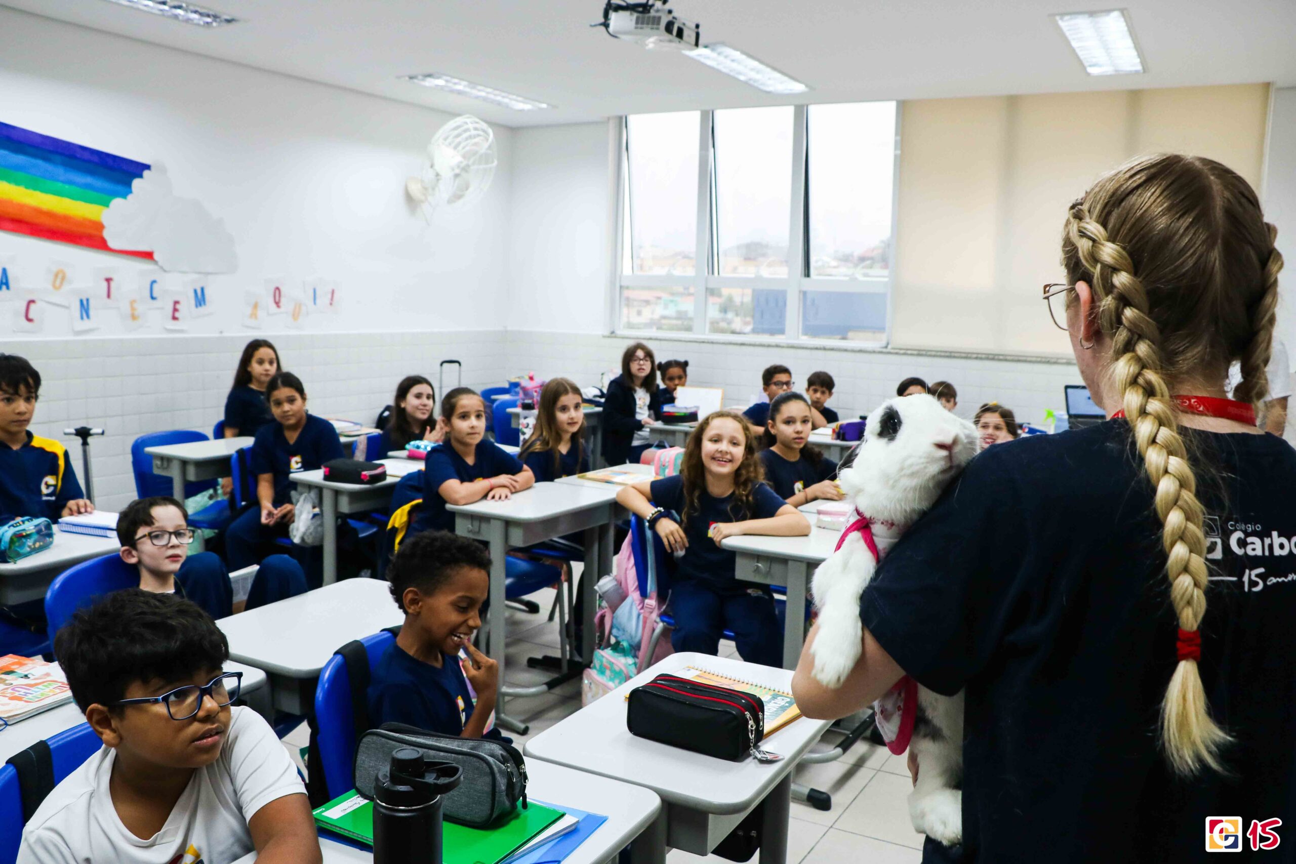 Nestes dias que antecedem a Páscoa, o Carbonell teve a honra de receber uma visita muito especial: Fofucha, adorável coelhinha que veio espalhar a alegria desta época festiva entre os estudantes e todo o Time Carbonell. Graças à generosidade de Isabela Rinaldi, colaboradora da Educação Infantil e companheira da coelhinha no dia a dia, Fofucha andou pelas salas de aula e arrancou sorrisos por onde passou, das crianças e jovens aos adultos. Uma fofura! 😻