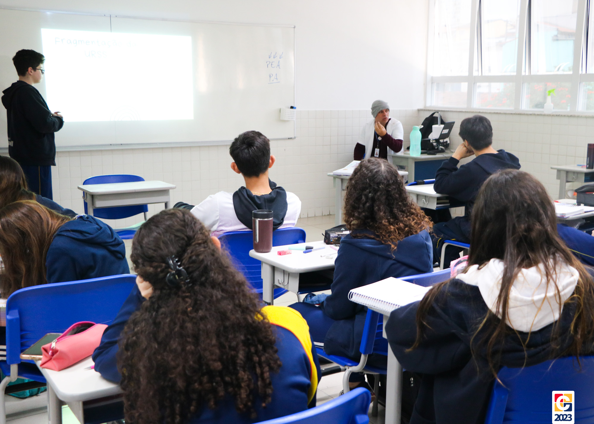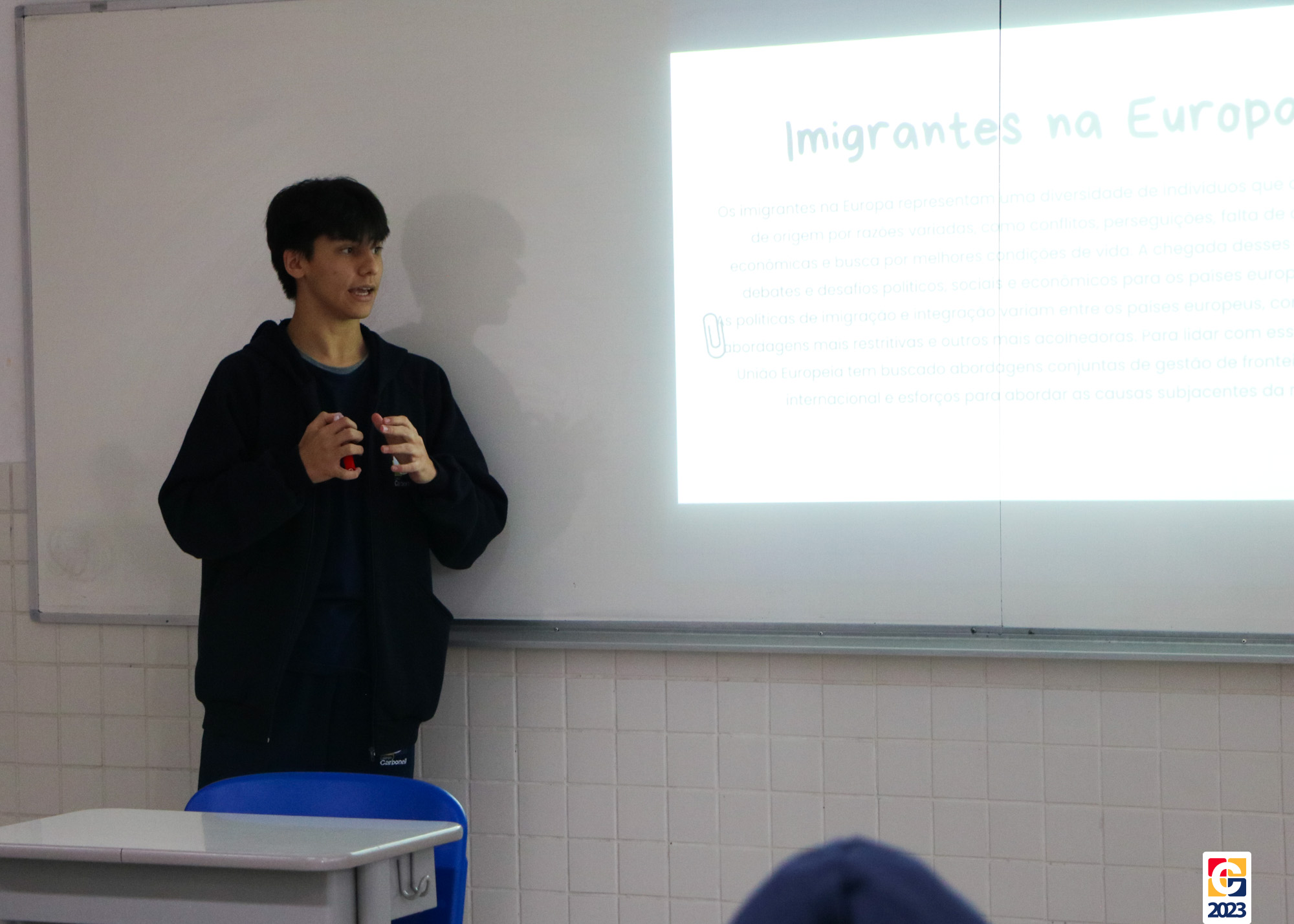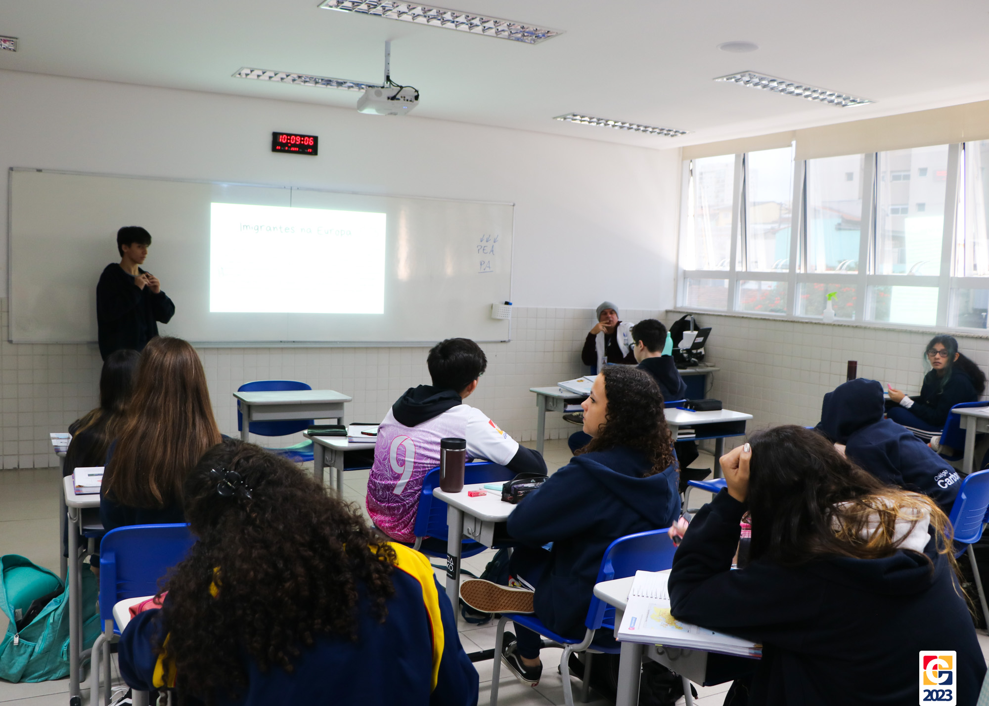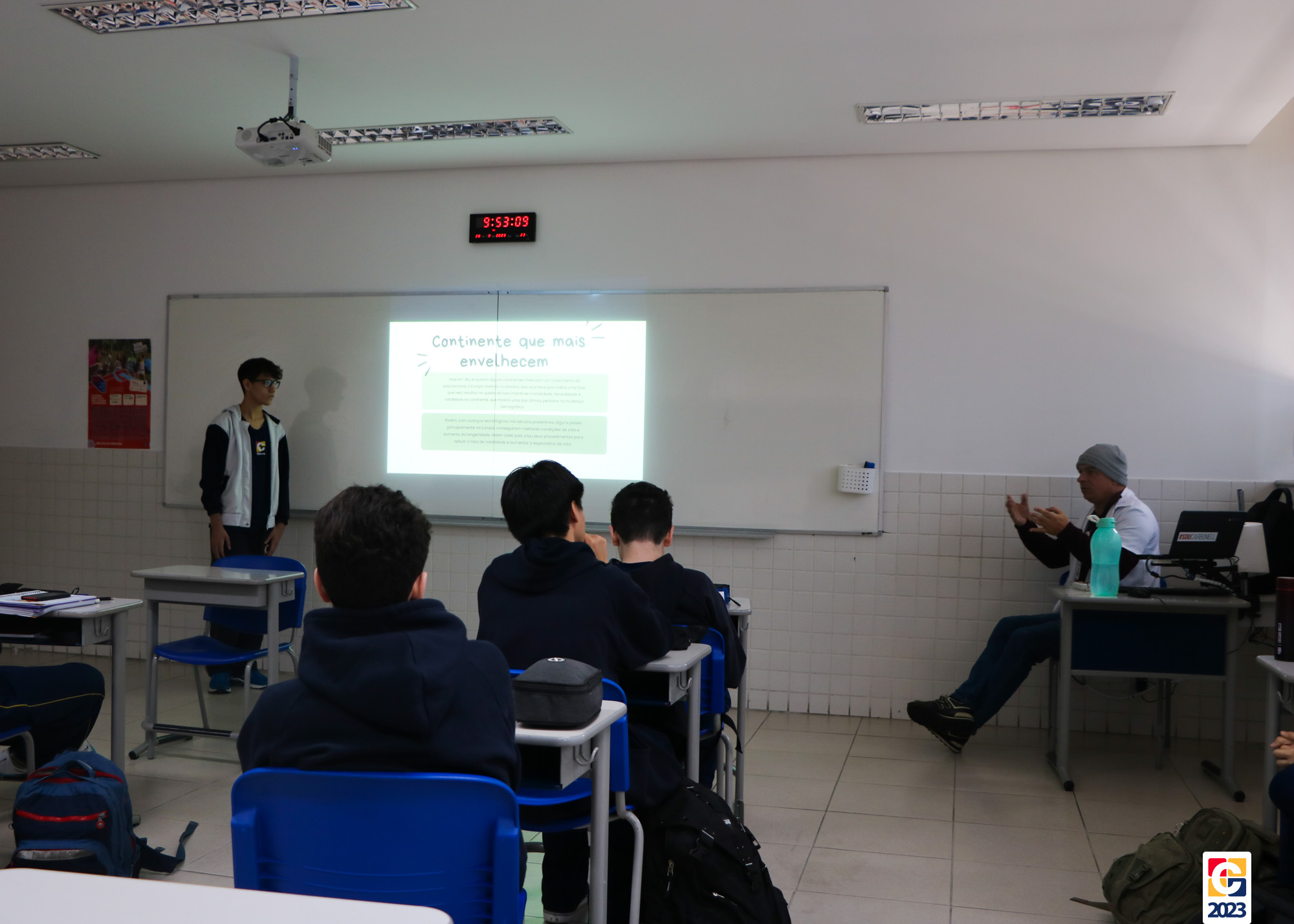 A aula de Geografia com o professor João Luiz Becegato no Carbonell trouxe uma nova proposta para otimizar o aprendizado. Durante a aula, a dinâmica da aula invertida foi implementada com a turma do 9º ano B – Anos Finais. Nessa abordagem, os estudantes foram responsáveis por ministrar a própria aula, divididos em grupos, sendo cada um encarregado de um capítulo do livro didático deste semestre. Dentro desses grupos, escolheram individualmente os tópicos a serem apresentados à turma. 📖🤓