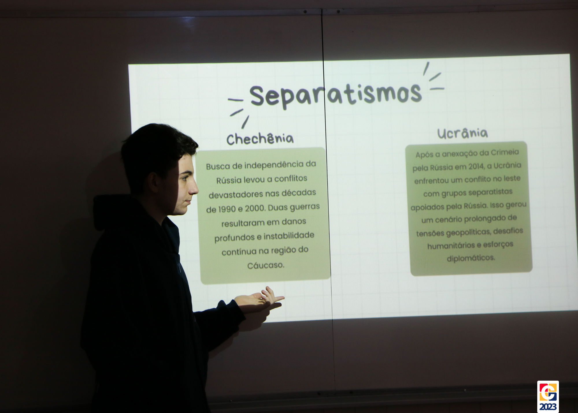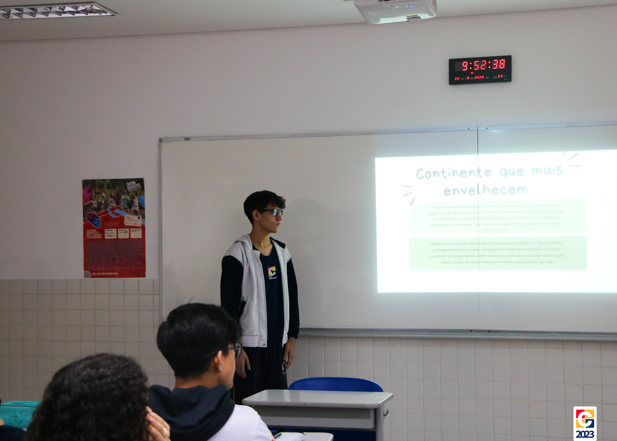 Na aula desta segunda-feira (28), o capítulo apresentado tratou sobre o continente europeu, explorando seus acontecimentos históricos e questões sociais. Os estudantes tiveram total autonomia em suas apresentações, enquanto o professor apenas complementava quando necessário. 🌍⌛