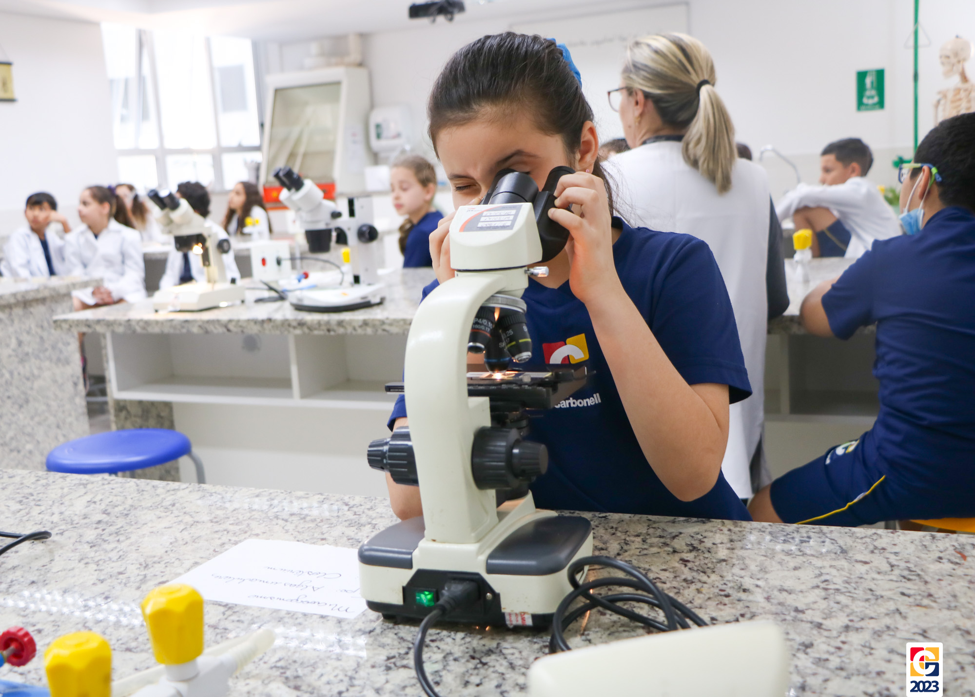 Durante a aula, as crianças coletaram amostras de suas mãos, que aparentemente estavam limpas, e as depositaram em lâminas, criando culturas individuais de microrganismos. Após alguns dias, quando retornaram, tiveram a oportunidade de observar os resultados com o auxílio de microscópios. Nessa etapa, a professora abordou os diferentes tipos de microrganismos, incluindo fungos, protozoários e bactérias. 🔬🦠