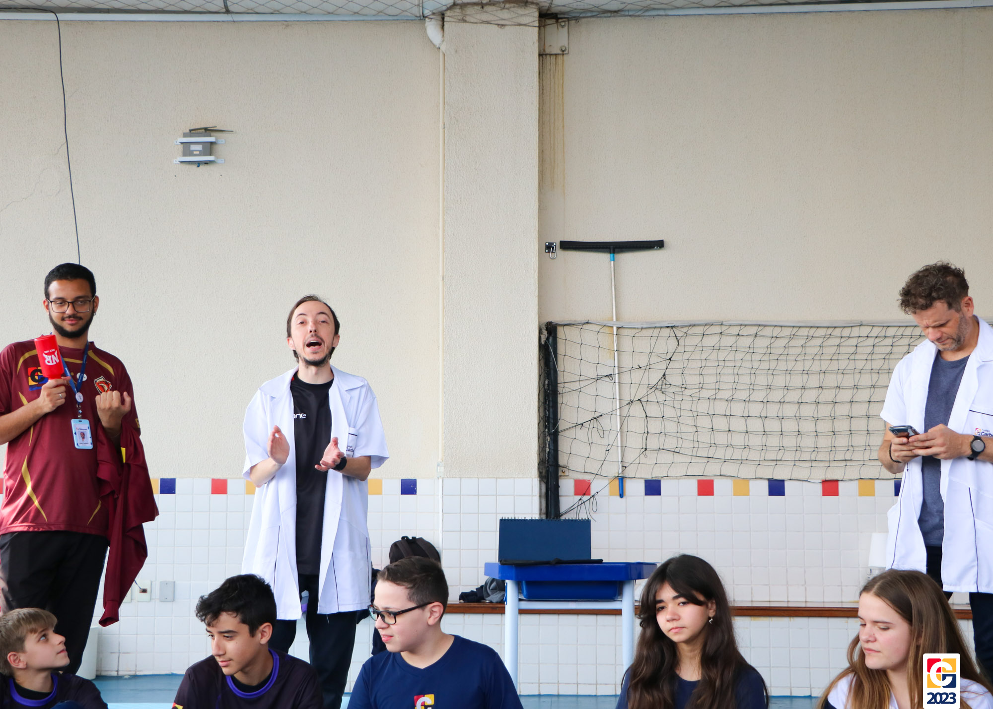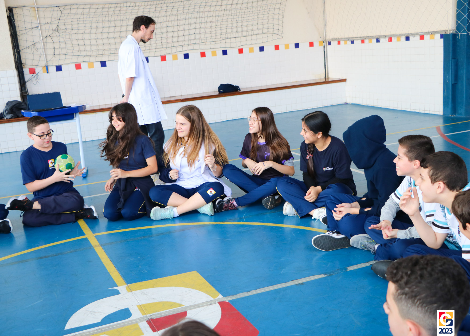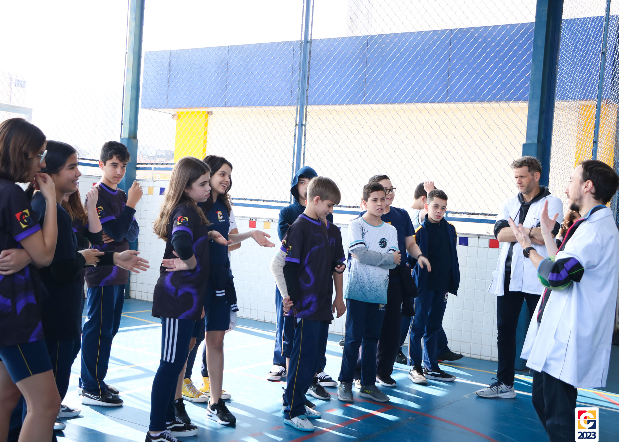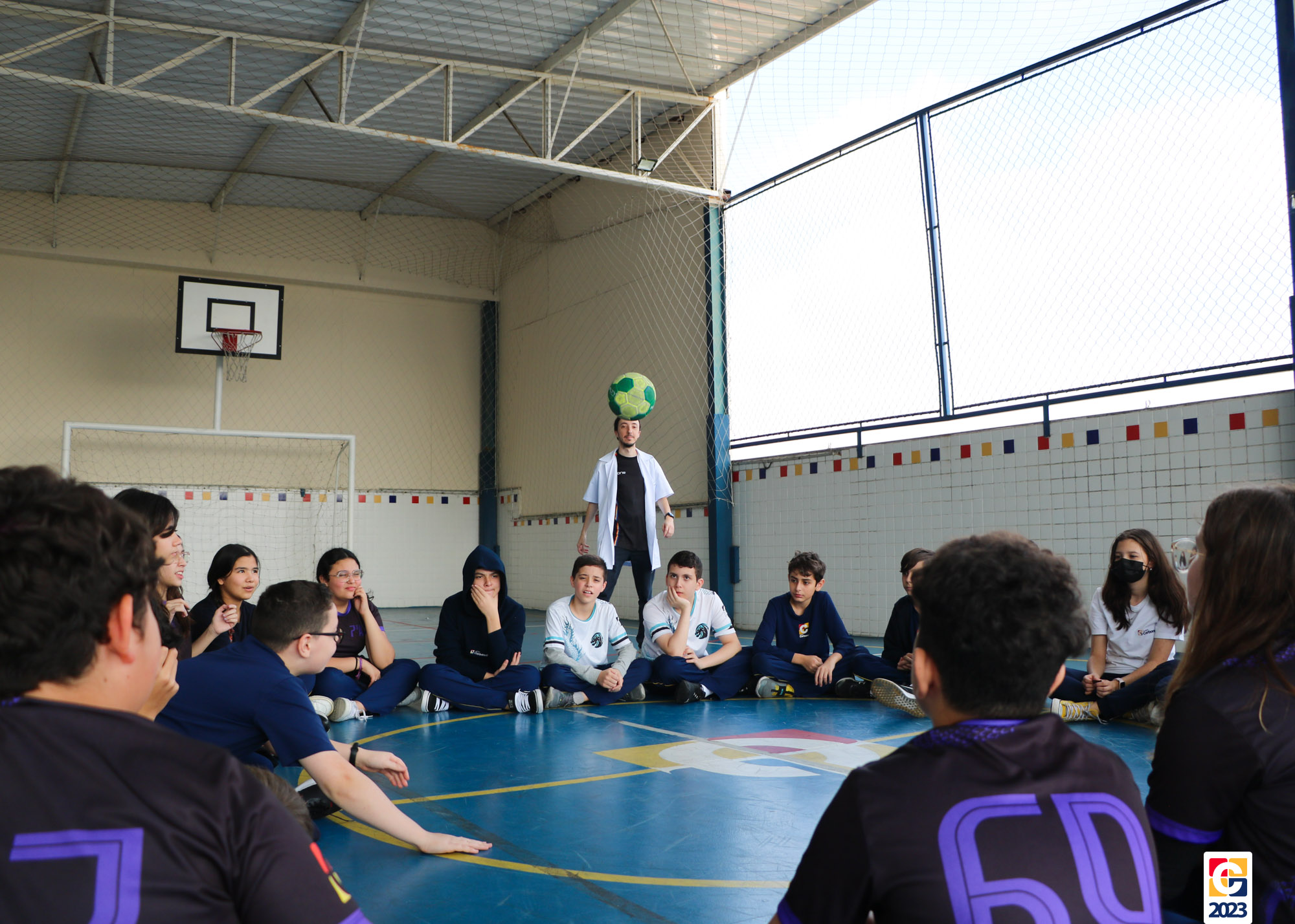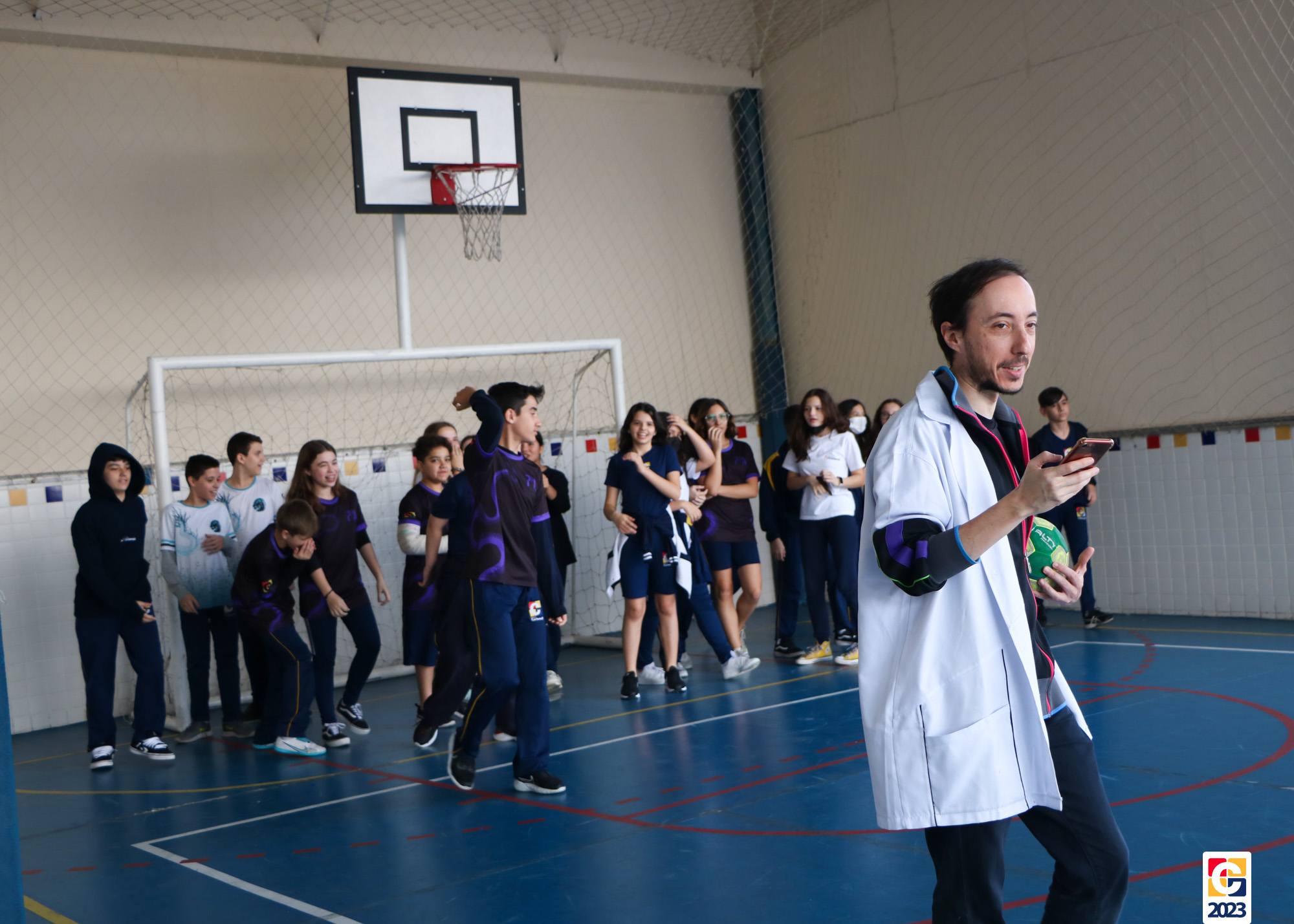 Durante a atividade, professores anunciavam um número e, então, baseados em seus conhecimentos, os jovens escolhiam para qual lado da quadra correr; caso errassem, eram eliminados do jogo. Eles também brincaram de “batata quente” e, quando a música parava, a pessoa com a bola tinha que responder a uma equação ou uma pergunta sobre algum conceito matemático. 🏐📝🤓