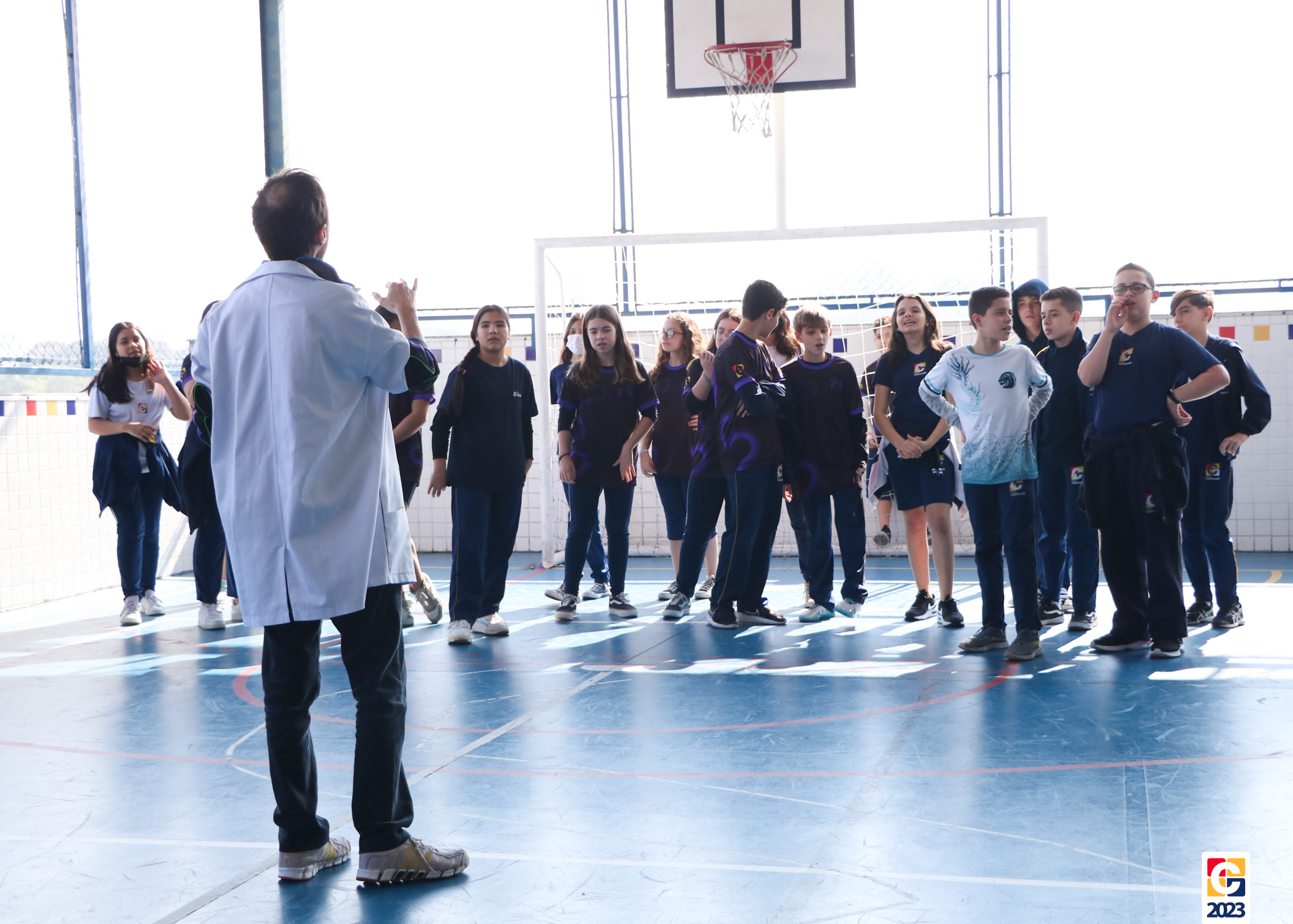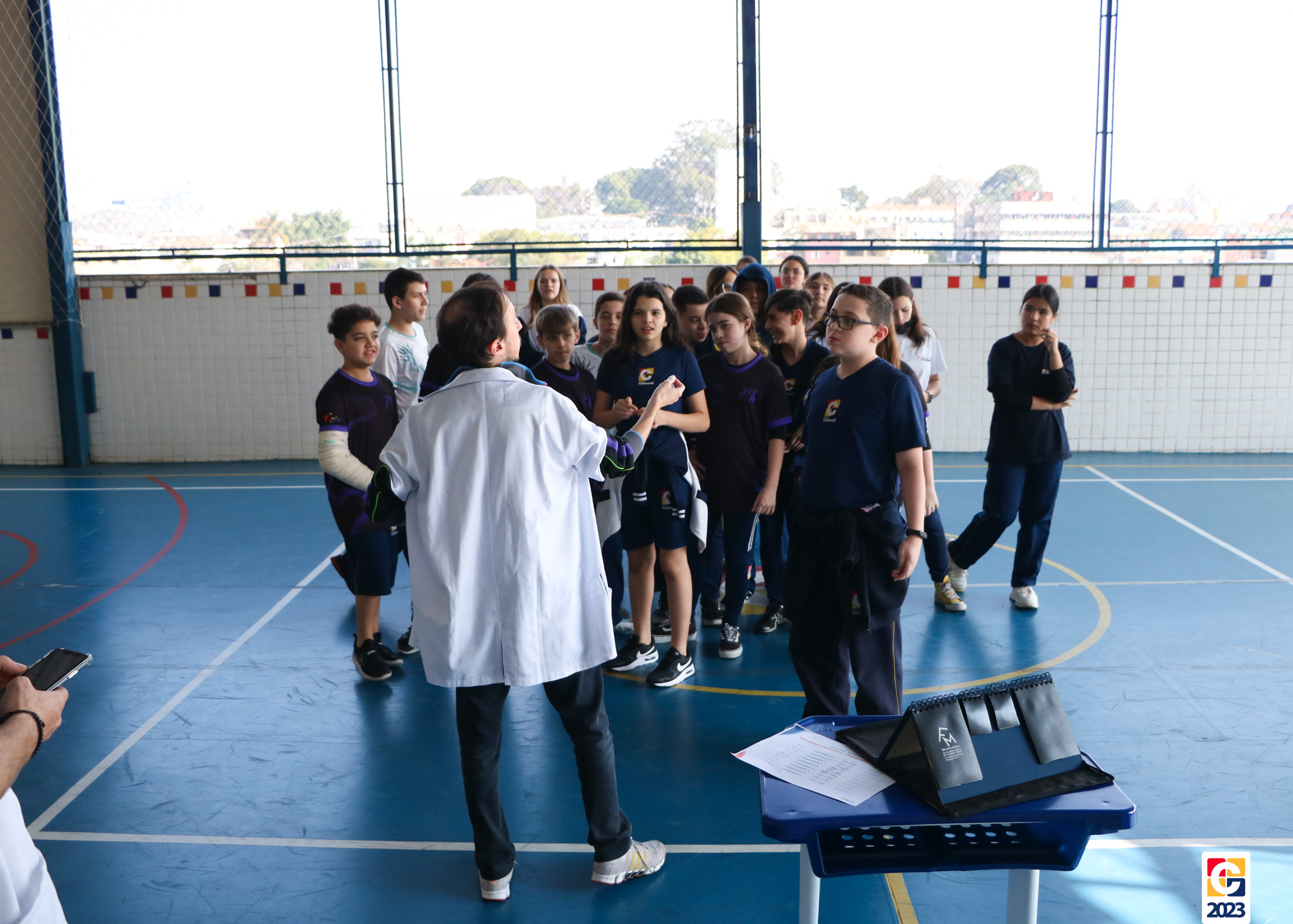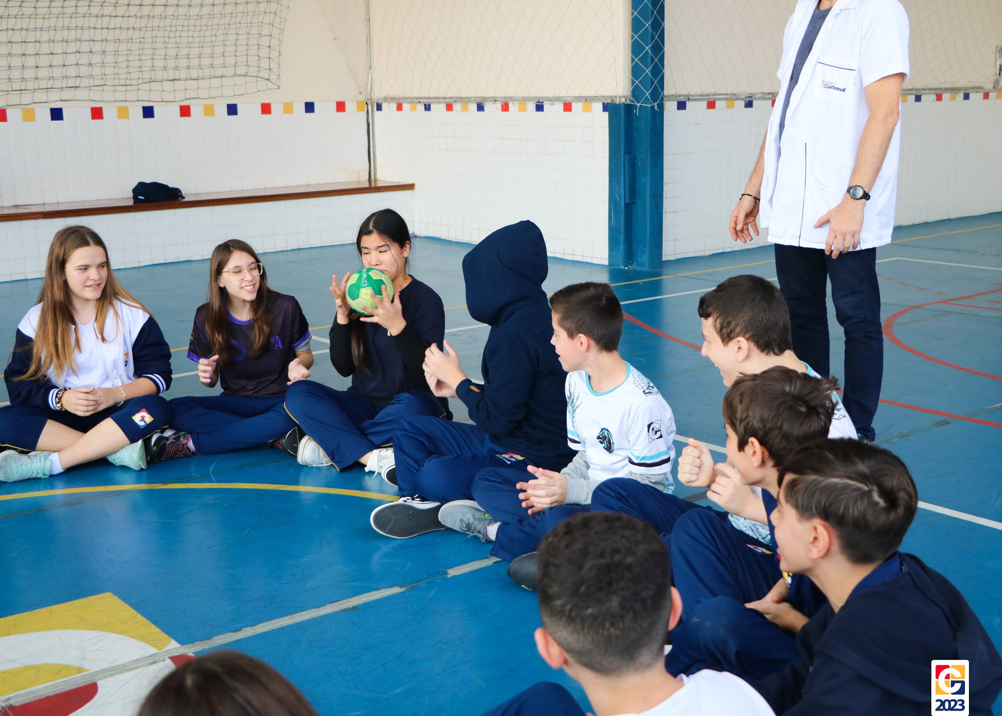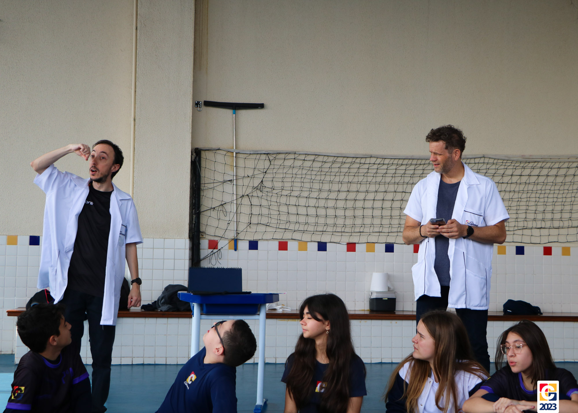 Durante a atividade, professores anunciavam um número e, então, baseados em seus conhecimentos, os jovens escolhiam para qual lado da quadra correr; caso errassem, eram eliminados do jogo. Eles também brincaram de “batata quente” e, quando a música parava, a pessoa com a bola tinha que responder a uma equação ou uma pergunta sobre algum conceito matemático. 🏐📝🤓