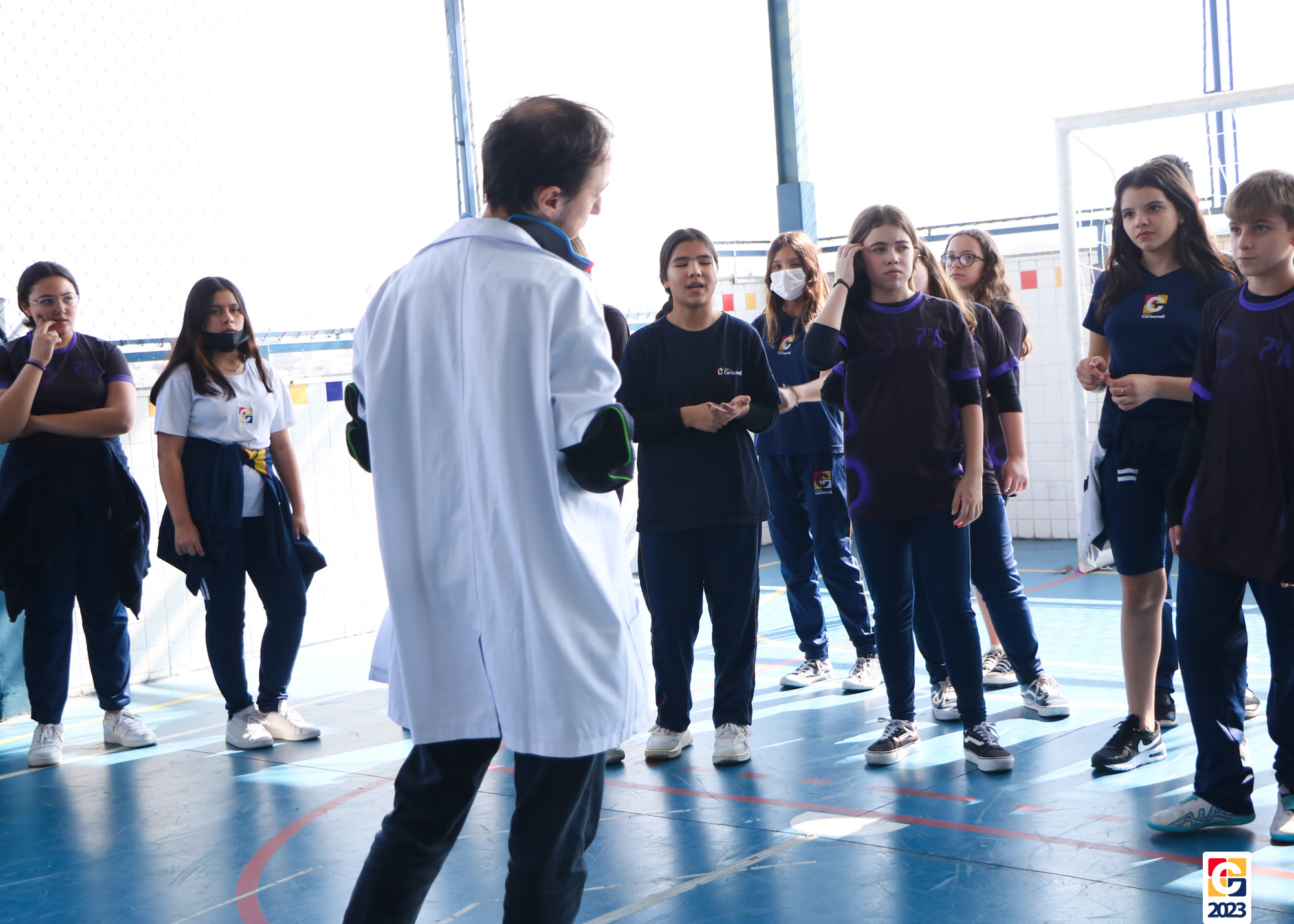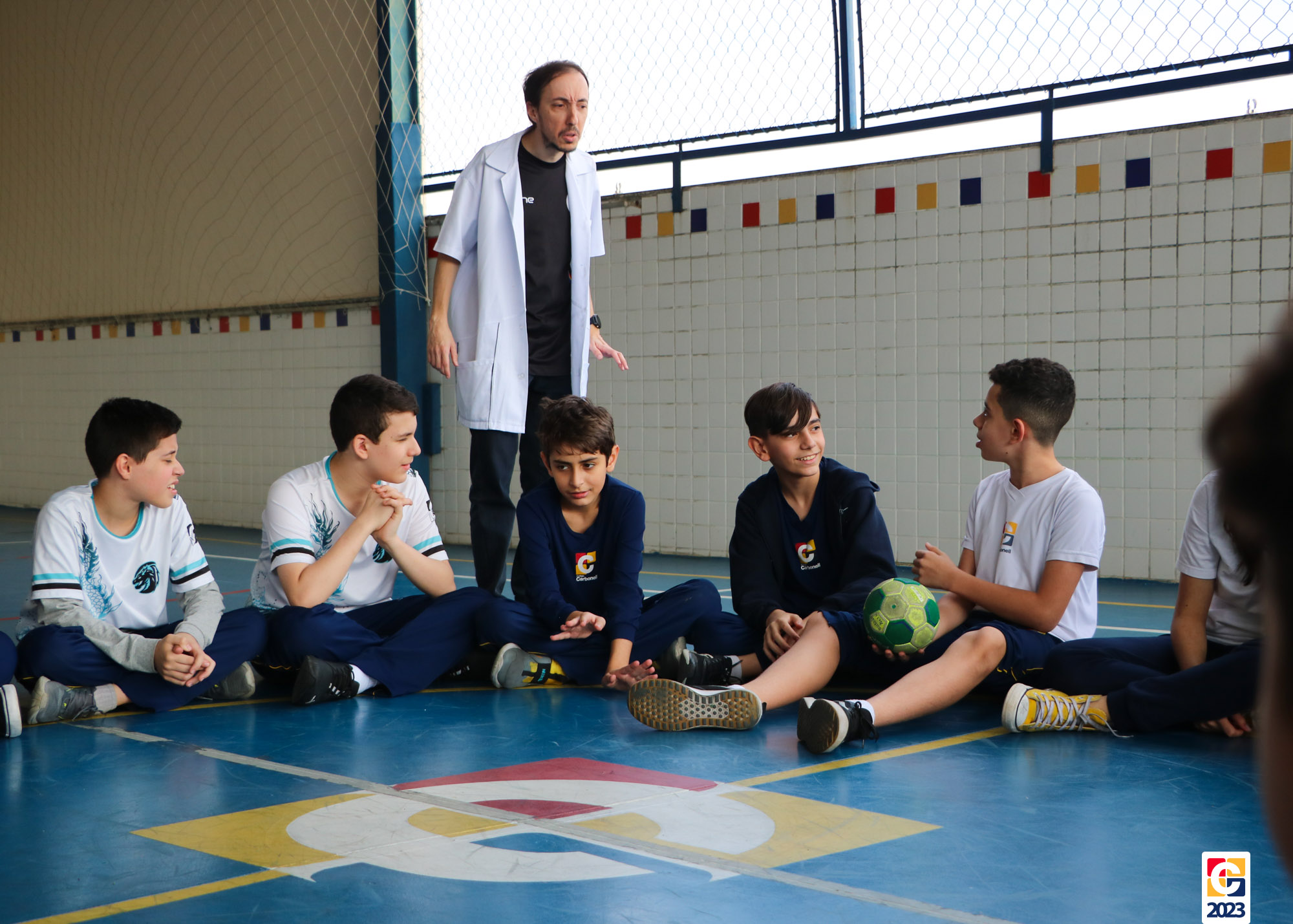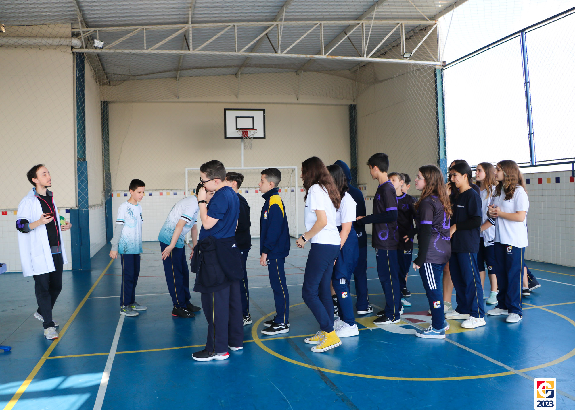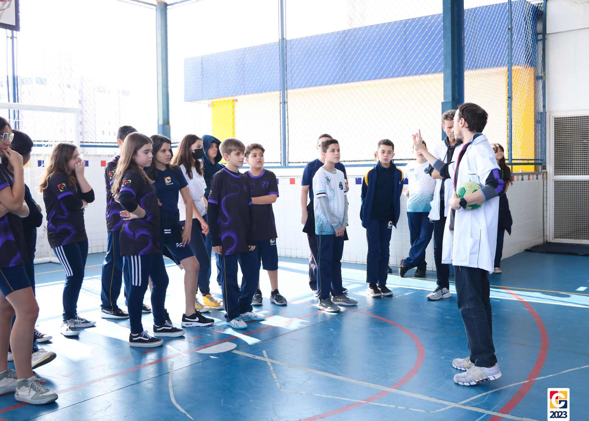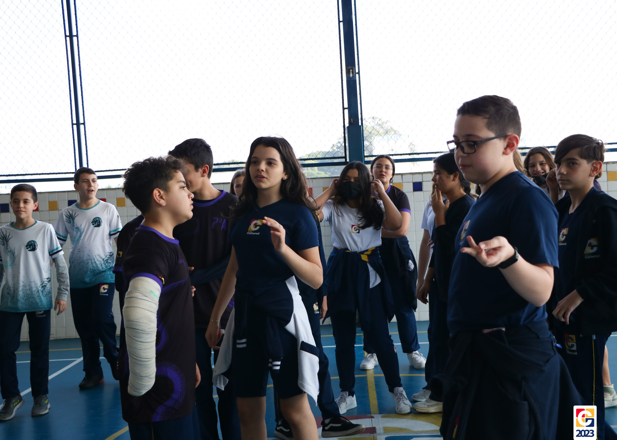 Durante a atividade, professores anunciavam um número e, então, baseados em seus conhecimentos, os jovens escolhiam para qual lado da quadra correr; caso errassem, eram eliminados do jogo. Eles também brincaram de “batata quente” e, quando a música parava, a pessoa com a bola tinha que responder a uma equação ou uma pergunta sobre algum conceito matemático. 🏐📝🤓