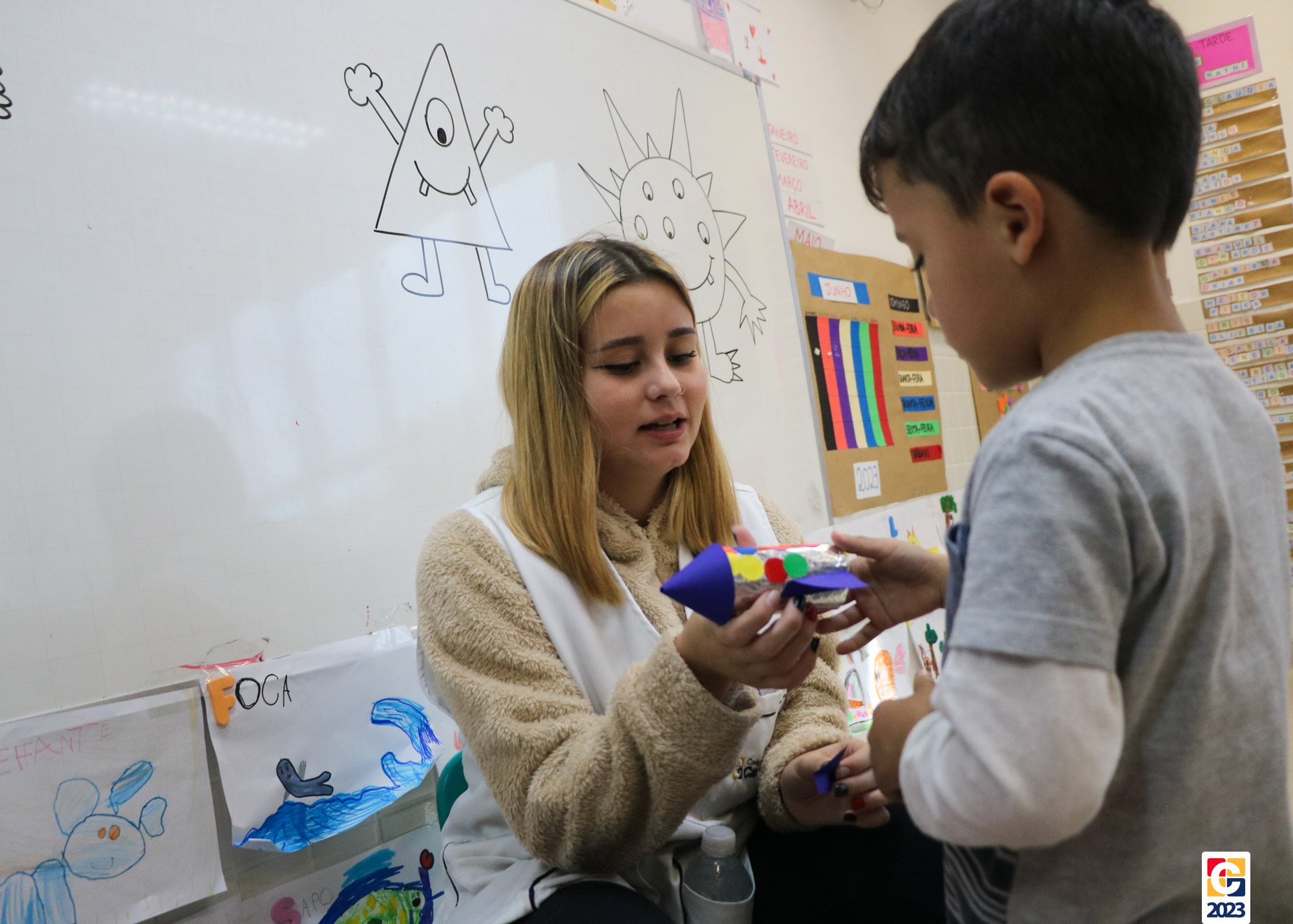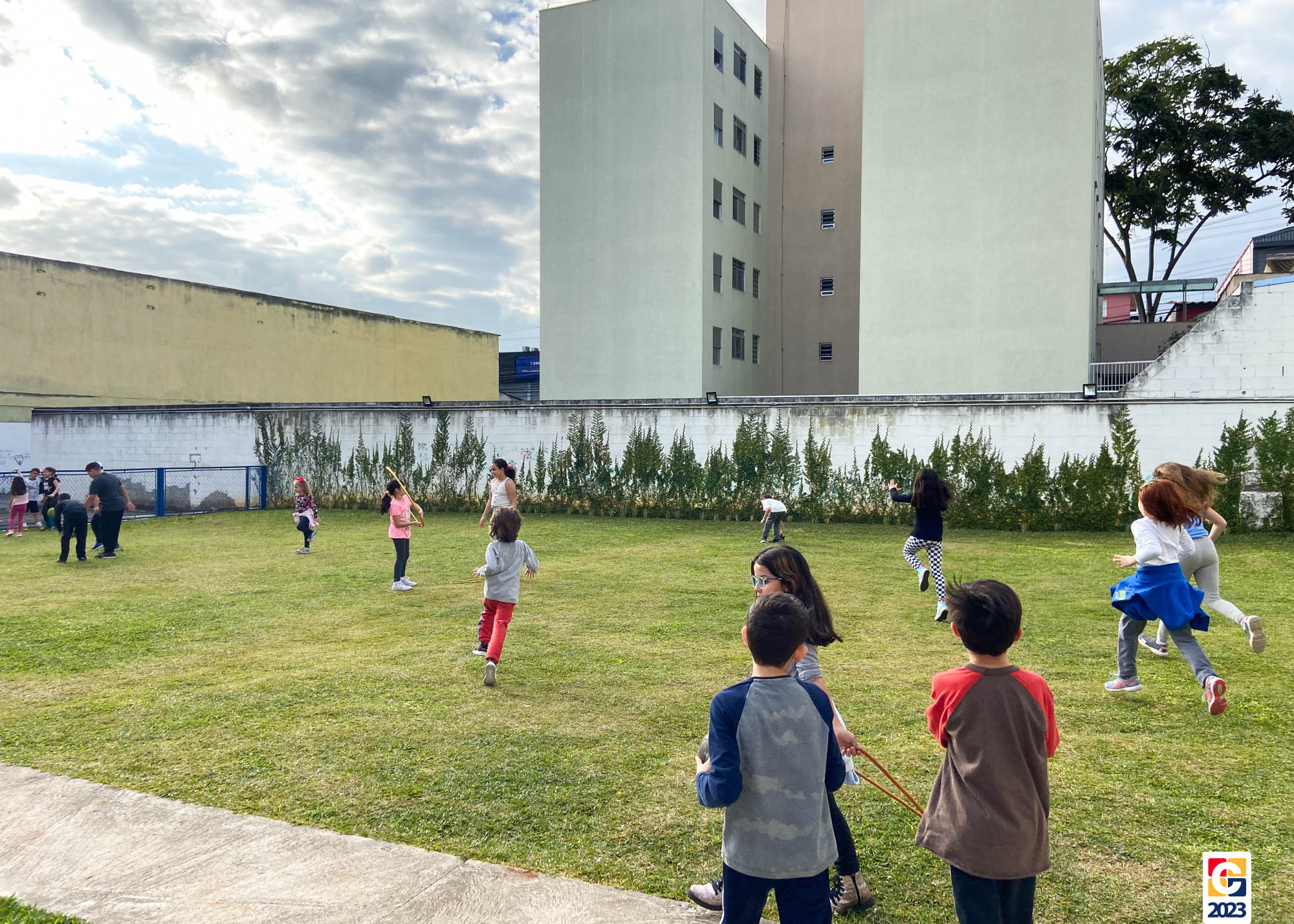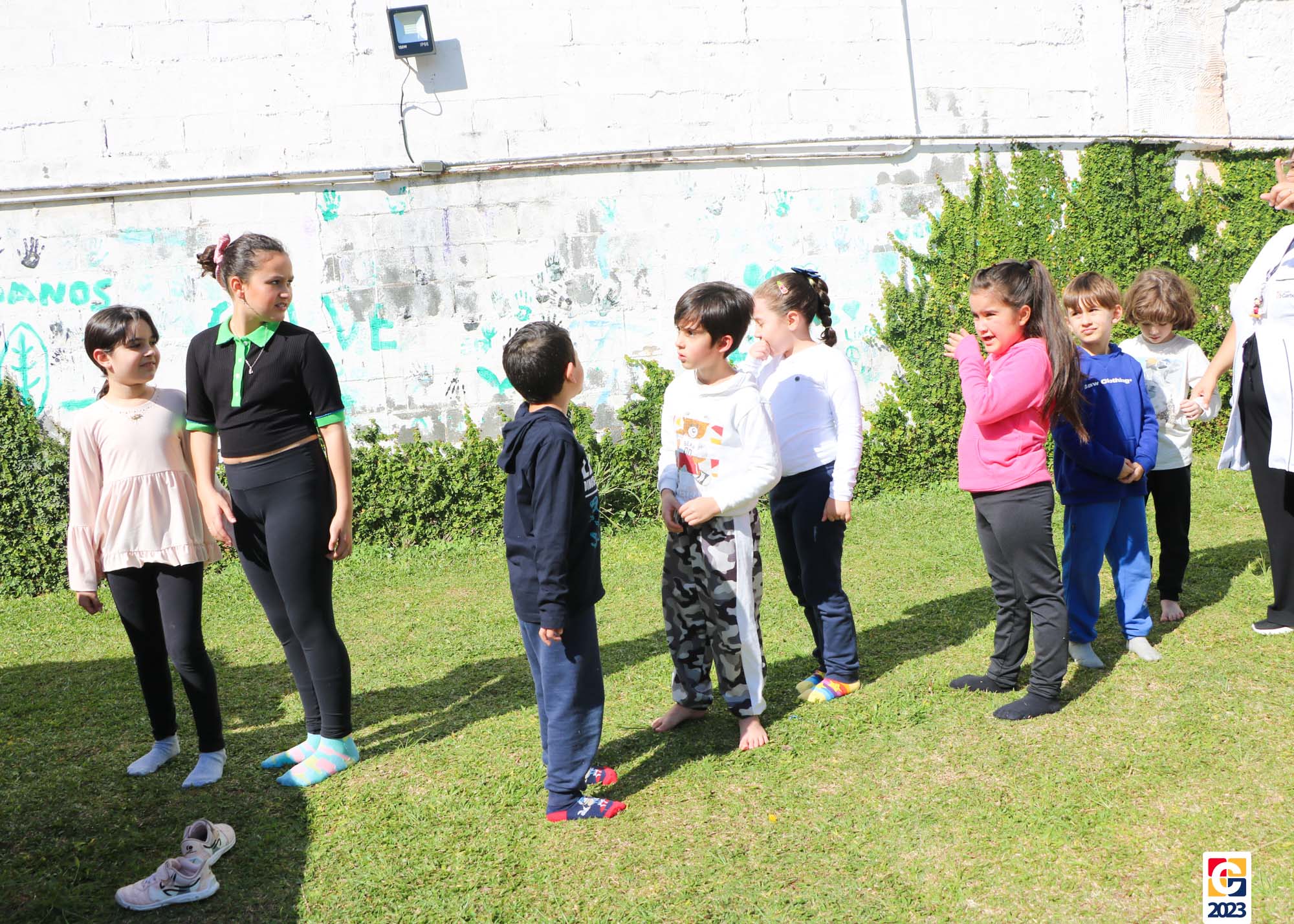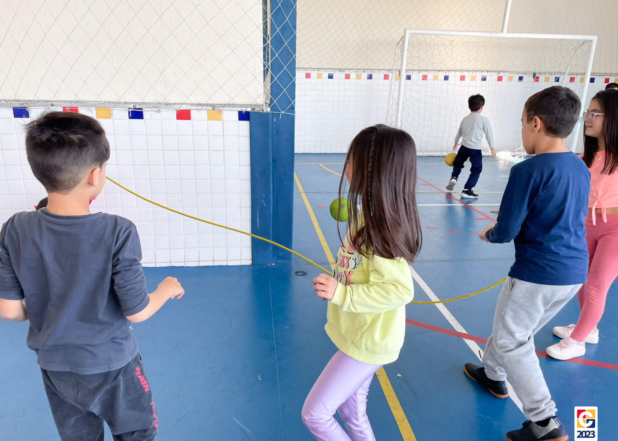 Já as turminhas dos Anos Iniciais começaram sua aventura com a peça teatral “Saltimbancos”, de Chico Buarque, que apresenta uma fábula de quatro animais que se revoltam ao serem explorados e, então, decidem fugir de seus respectivos donos, partindo à cidade grande. Como atividade, as crianças ainda realizarão uma releitura da obra e, ali, já começaram os preparativos de seus figurinos. As turmas também tiveram a oportunidade de experimentar brincadeiras de rua que eram famosas antigamente, como pular corda e bambolê. 🐔🐱🐶