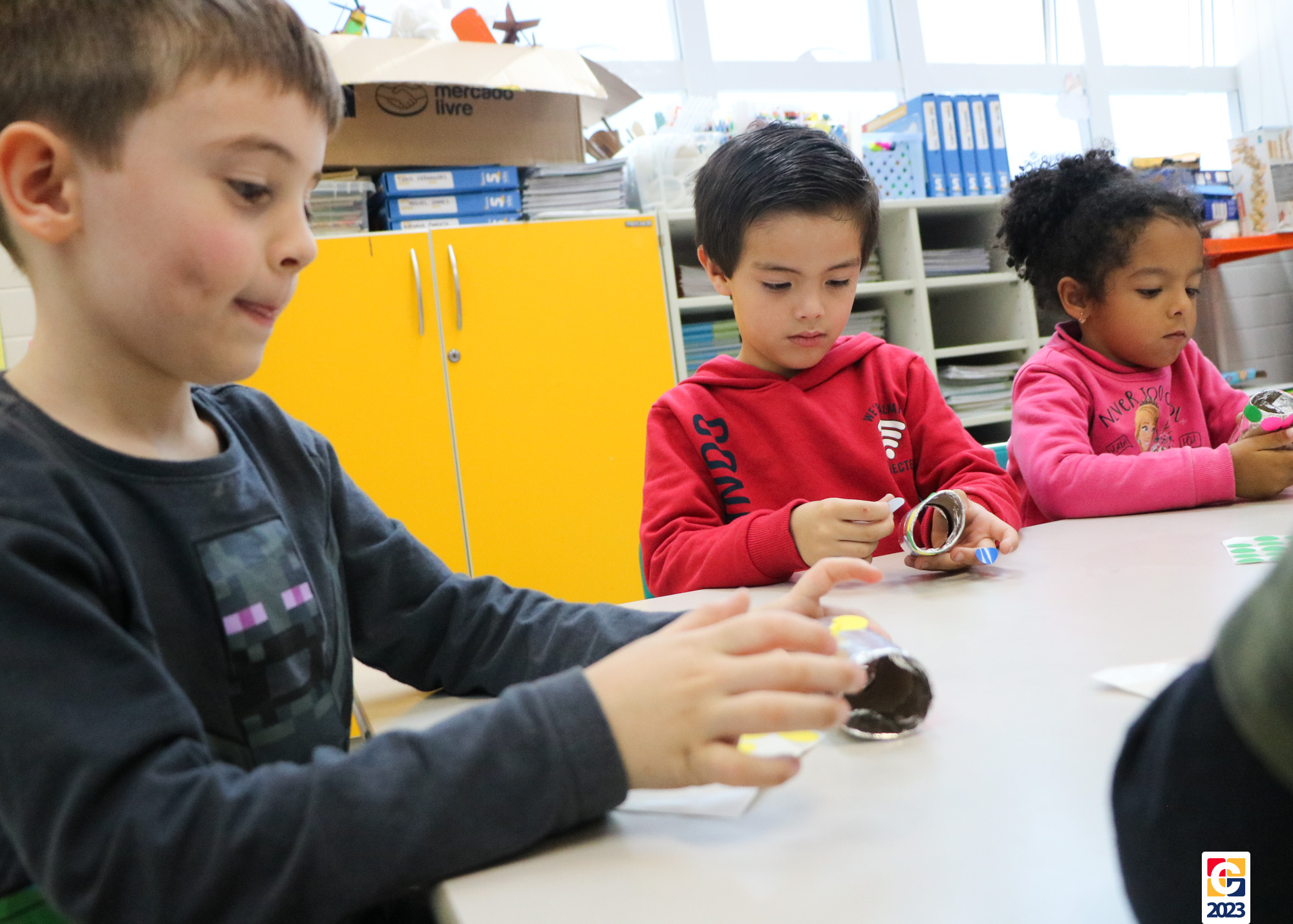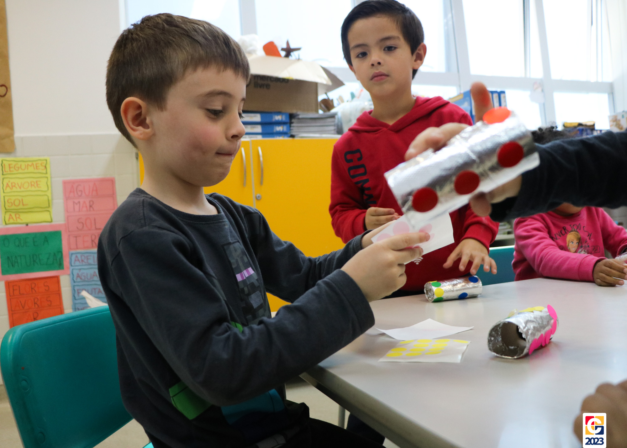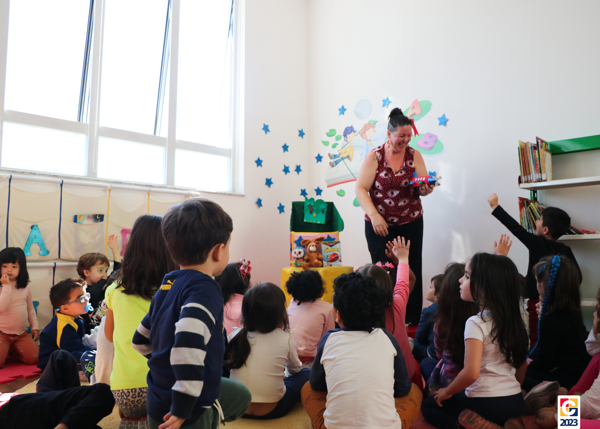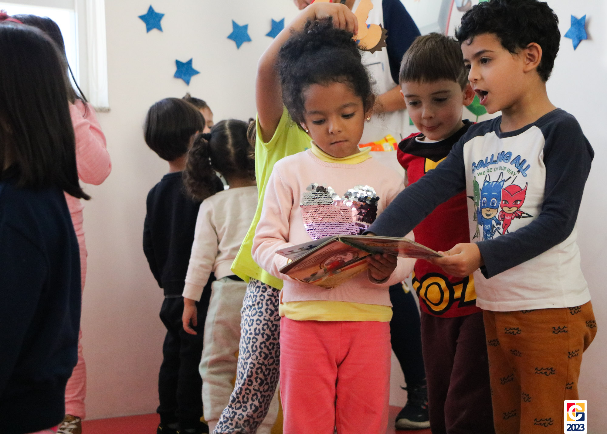 Já as turminhas dos Anos Iniciais começaram sua aventura com a peça teatral “Saltimbancos”, de Chico Buarque, que apresenta uma fábula de quatro animais que se revoltam ao serem explorados e, então, decidem fugir de seus respectivos donos, partindo à cidade grande. Como atividade, as crianças ainda realizarão uma releitura da obra e, ali, já começaram os preparativos de seus figurinos. As turmas também tiveram a oportunidade de experimentar brincadeiras de rua que eram famosas antigamente, como pular corda e bambolê. 🐔🐱🐶