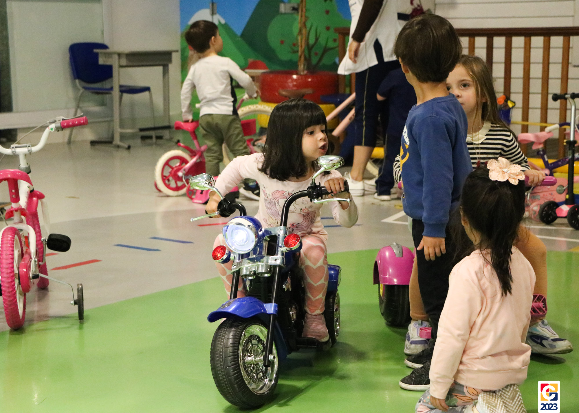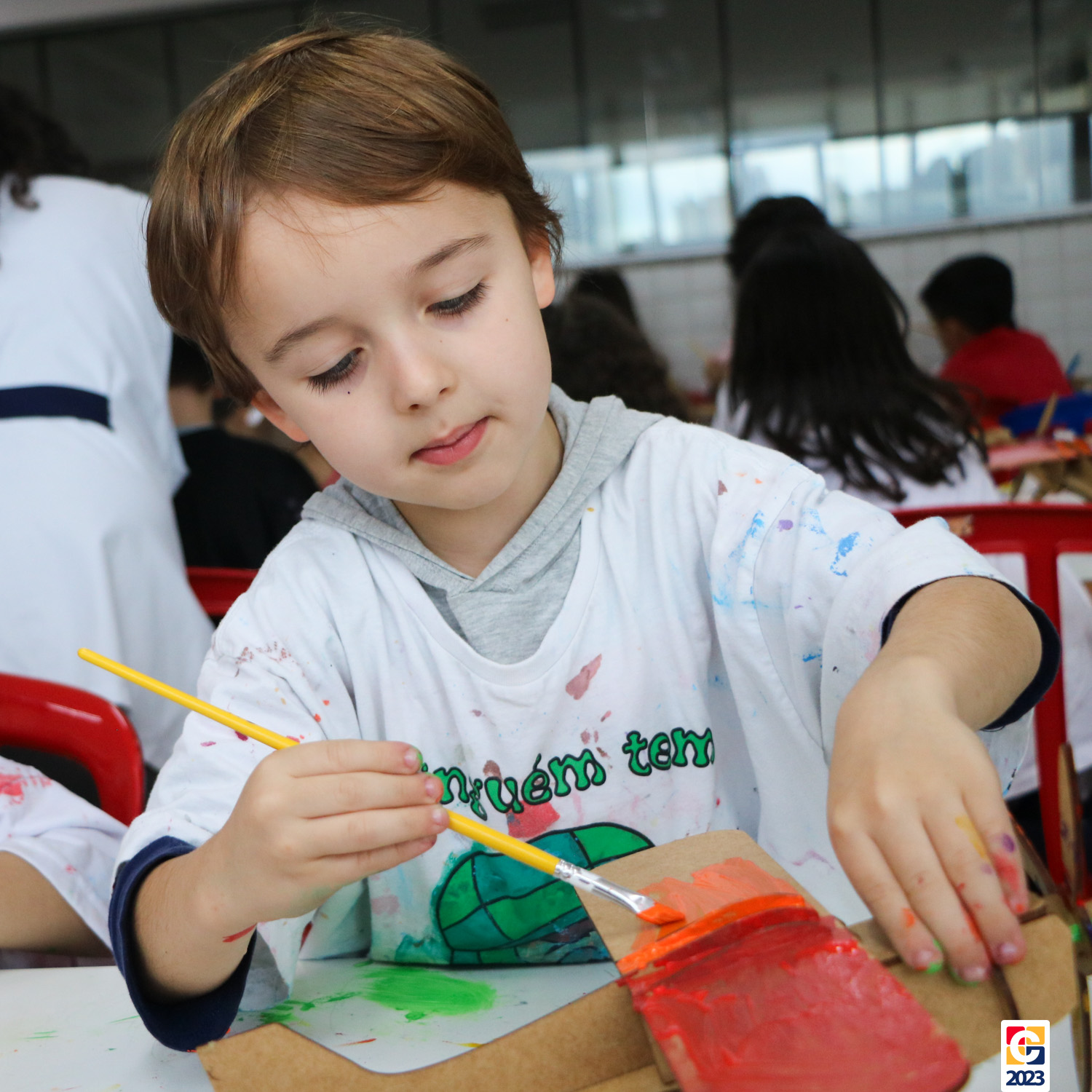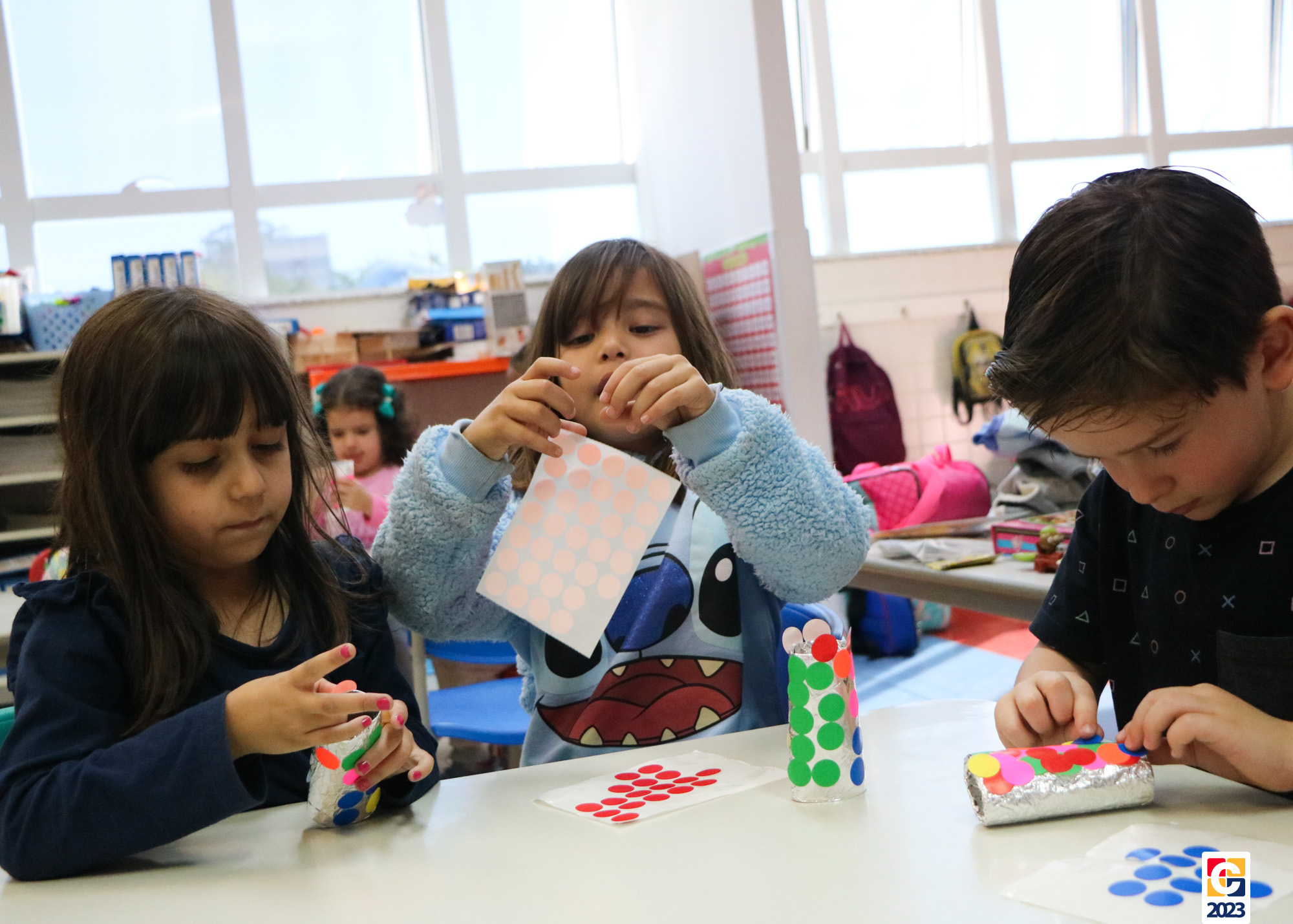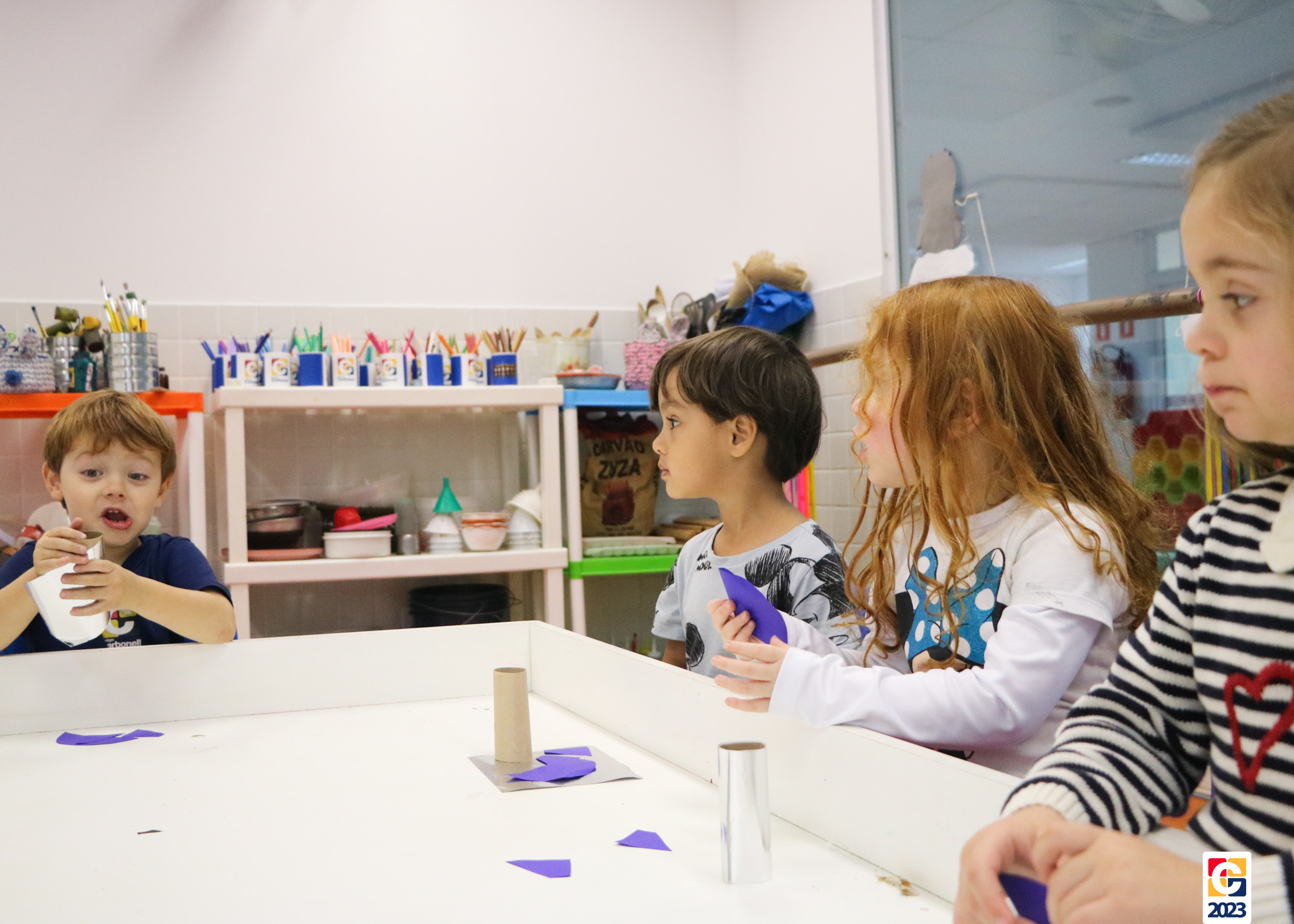 Já as turminhas dos Anos Iniciais começaram sua aventura com a peça teatral “Saltimbancos”, de Chico Buarque, que apresenta uma fábula de quatro animais que se revoltam ao serem explorados e, então, decidem fugir de seus respectivos donos, partindo à cidade grande. Como atividade, as crianças ainda realizarão uma releitura da obra e, ali, já começaram os preparativos de seus figurinos. As turmas também tiveram a oportunidade de experimentar brincadeiras de rua que eram famosas antigamente, como pular corda e bambolê. 🐔🐱🐶