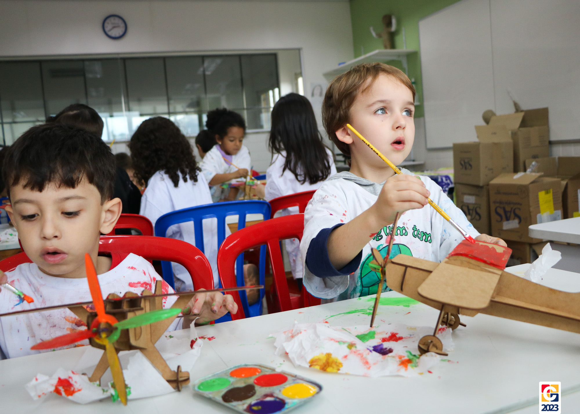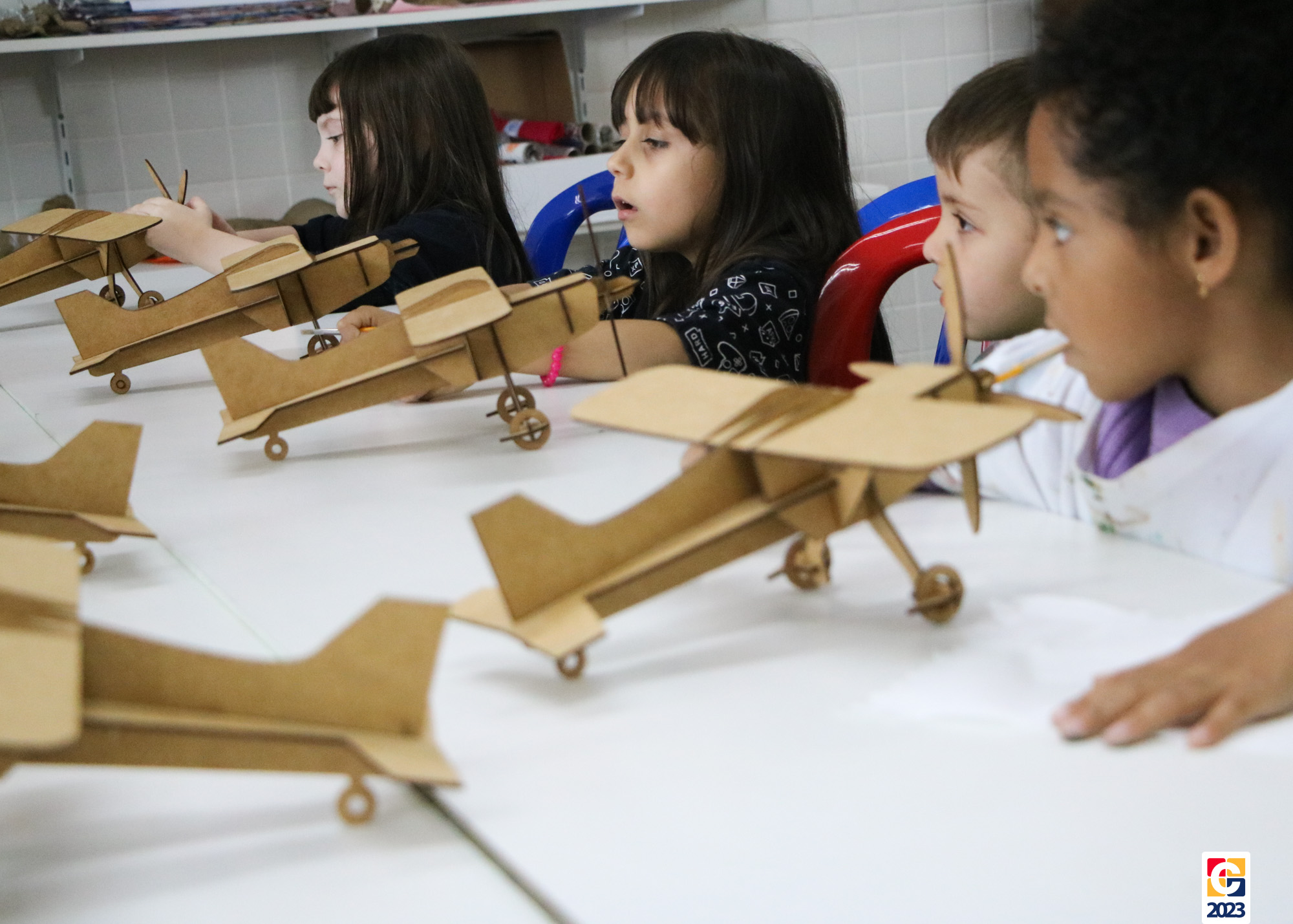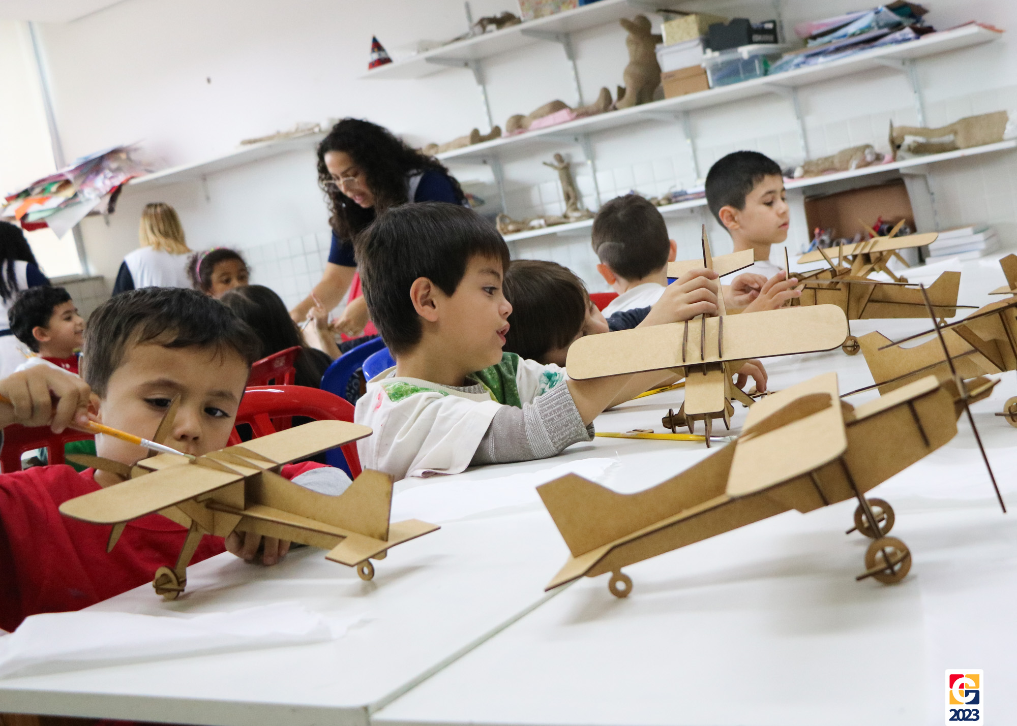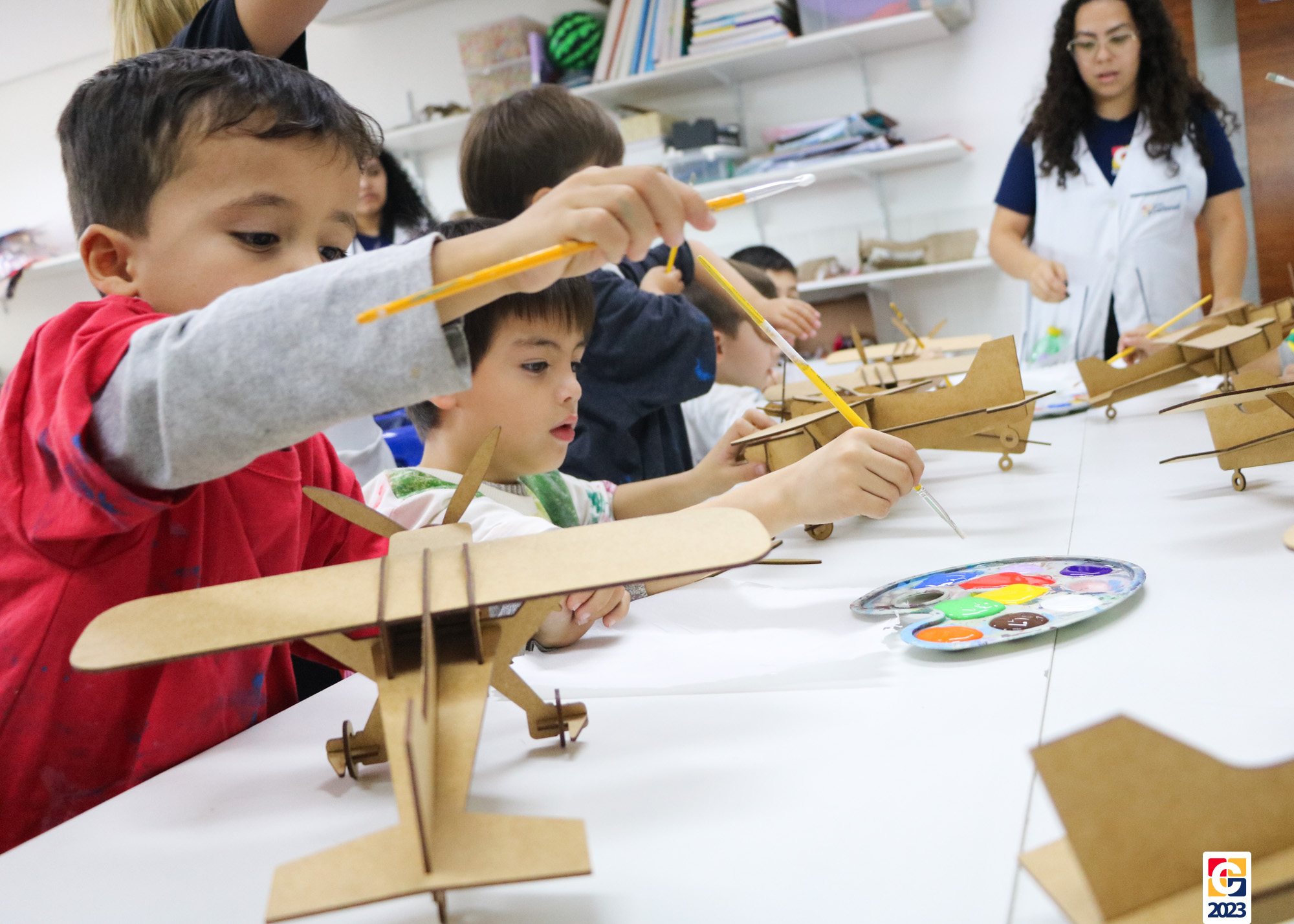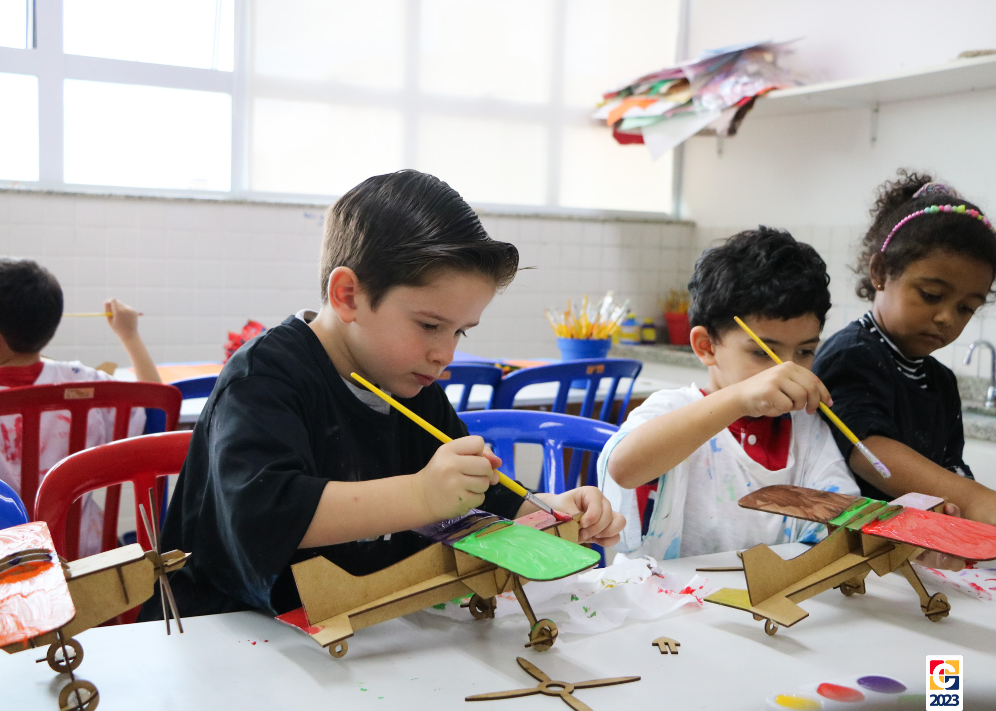 Na primeira semana, as turminhas do Infantil começaram os trabalhos com atividade criativa: cada criança ganhou um aviãozinho e precisou pintá-lo, cada qual do seu jeitinho. Logo depois, com a contação de histórias da Diana, as crianças descobriram que seus aviões foram inspirados na narrativa de Fernando, do livro “As Aventuras do Avião Vermelho”, um garoto que, ao ganhar um livro de seu pai, se encanta com a história de um aviador. Ao longo da narrativa, Fernando realiza várias viagens, inclusive de ir à Lua com seus bichinhos de pelúcia. Aqui, após ouvirem o conto, nossos pequenos também puderam fazer sua própria viagem com as professoras. E até uma receita de areia da Lua fizeram! 🌕
