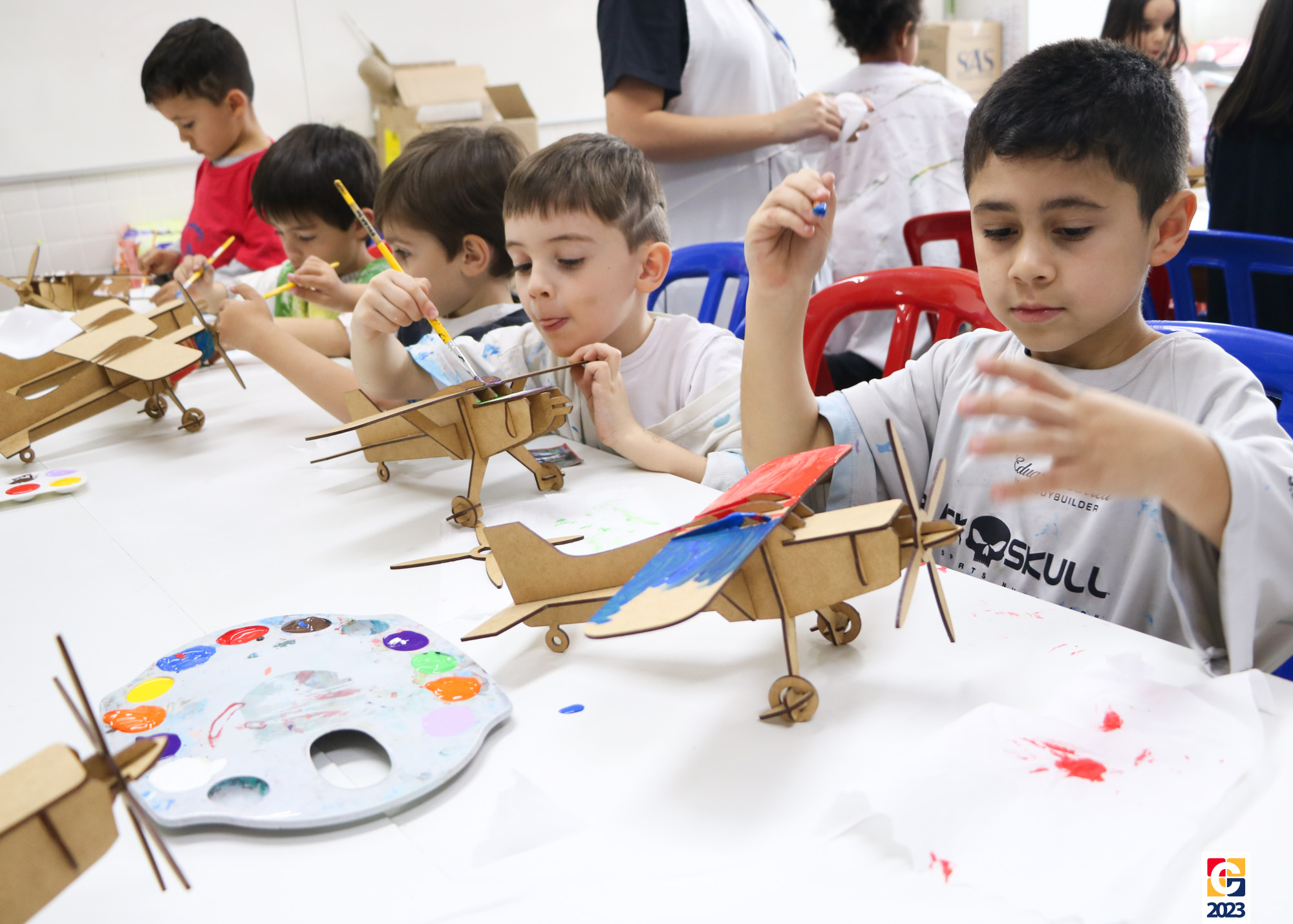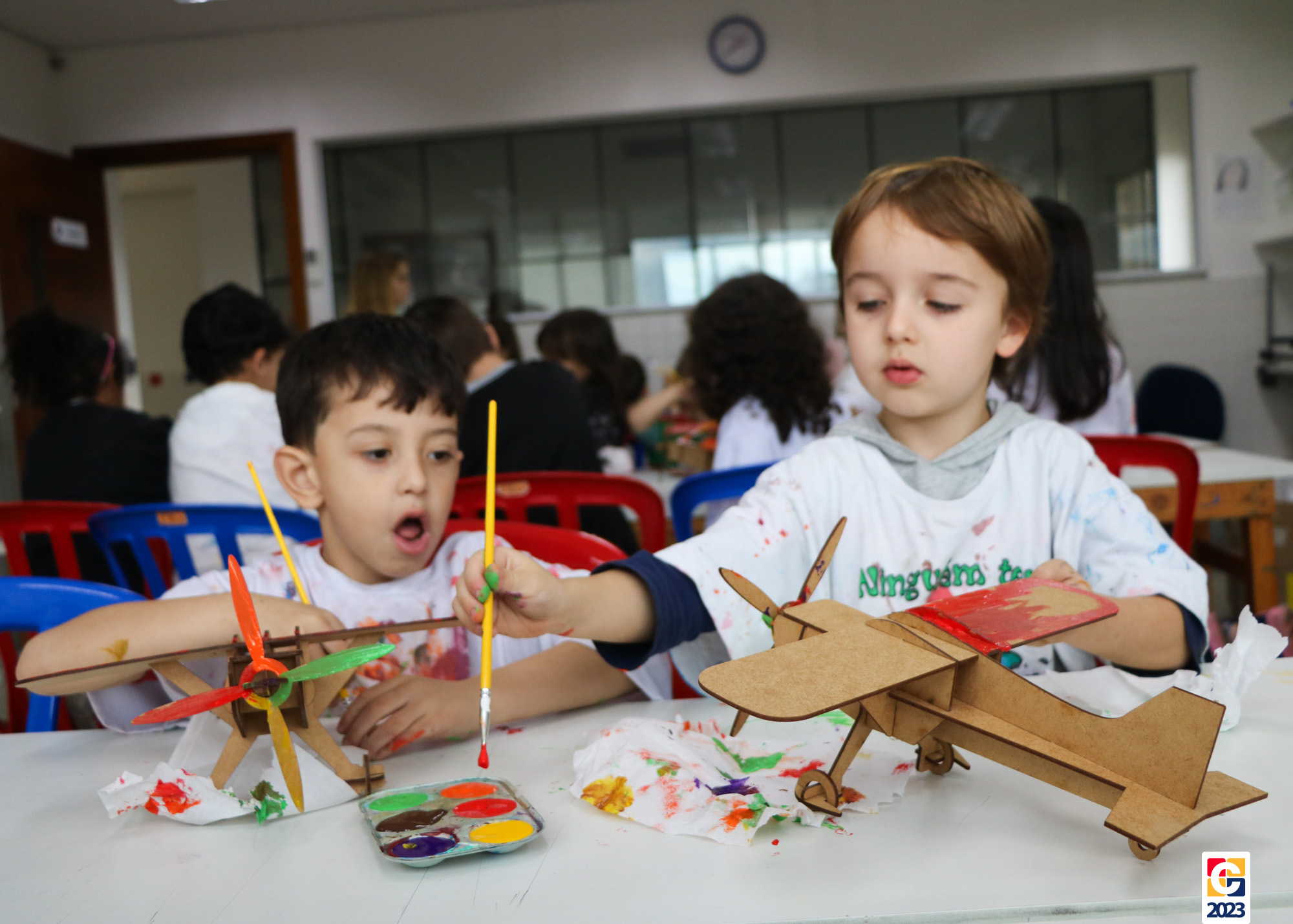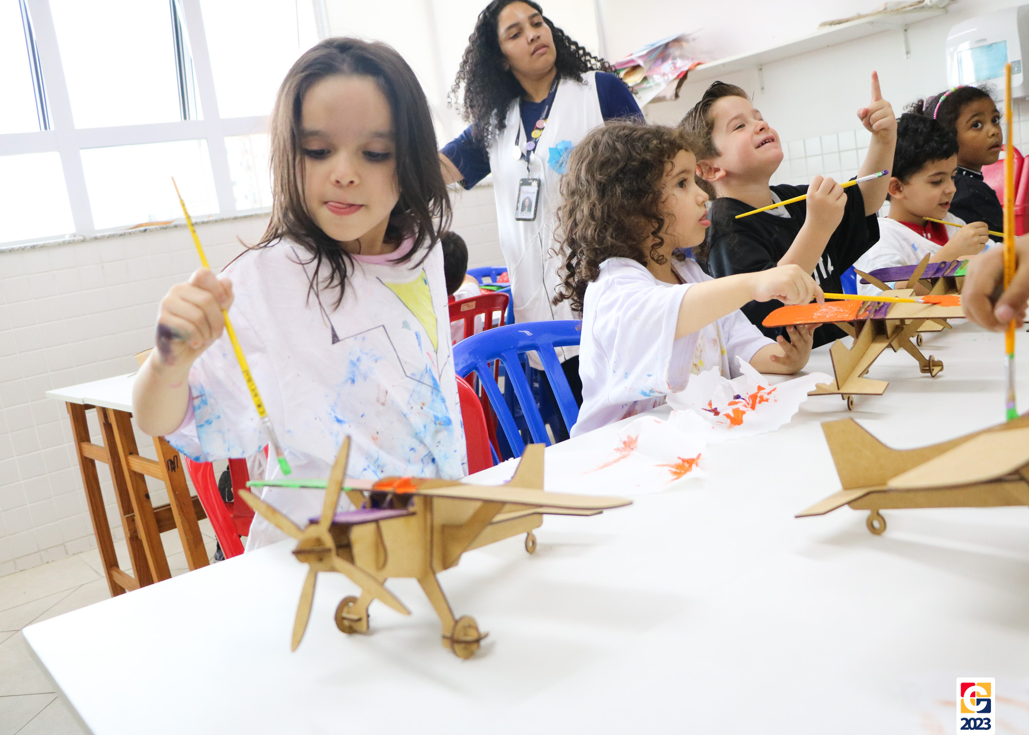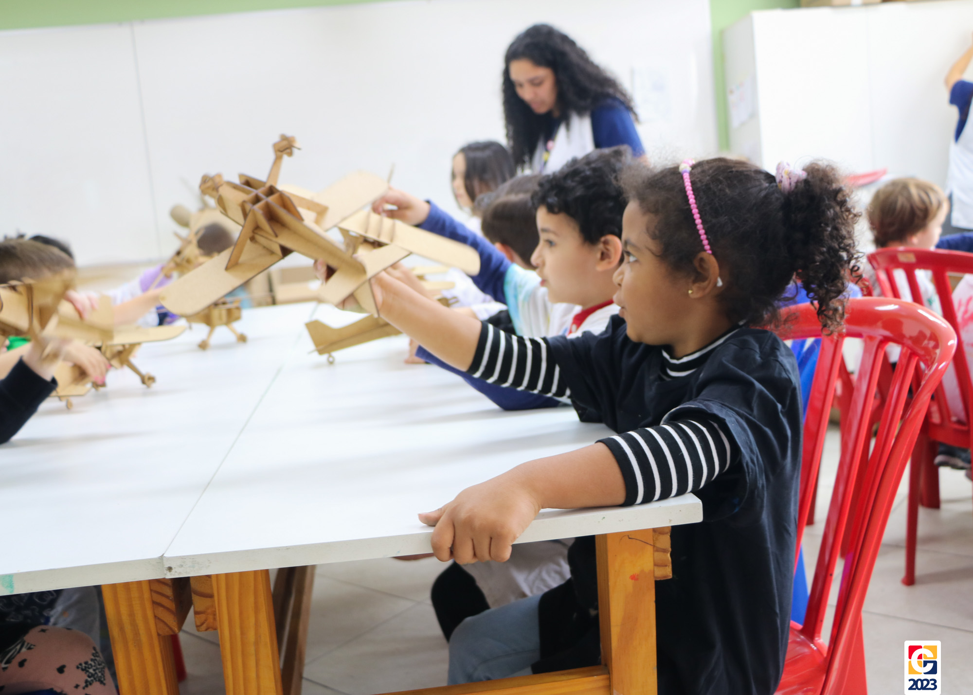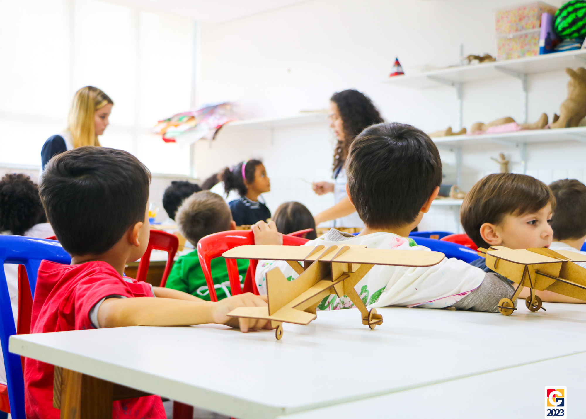 Na primeira semana, as turminhas do Infantil começaram os trabalhos com atividade criativa: cada criança ganhou um aviãozinho e precisou pintá-lo, cada qual do seu jeitinho. Logo depois, com a contação de histórias da Diana, as crianças descobriram que seus aviões foram inspirados na narrativa de Fernando, do livro “As Aventuras do Avião Vermelho”, um garoto que, ao ganhar um livro de seu pai, se encanta com a história de um aviador. Ao longo da narrativa, Fernando realiza várias viagens, inclusive de ir à Lua com seus bichinhos de pelúcia. Aqui, após ouvirem o conto, nossos pequenos também puderam fazer sua própria viagem com as professoras. E até uma receita de areia da Lua fizeram! 🌕