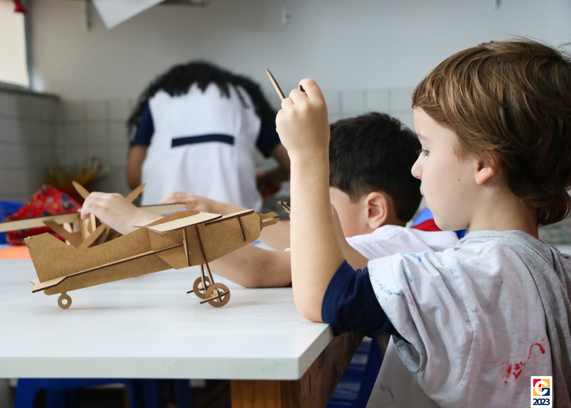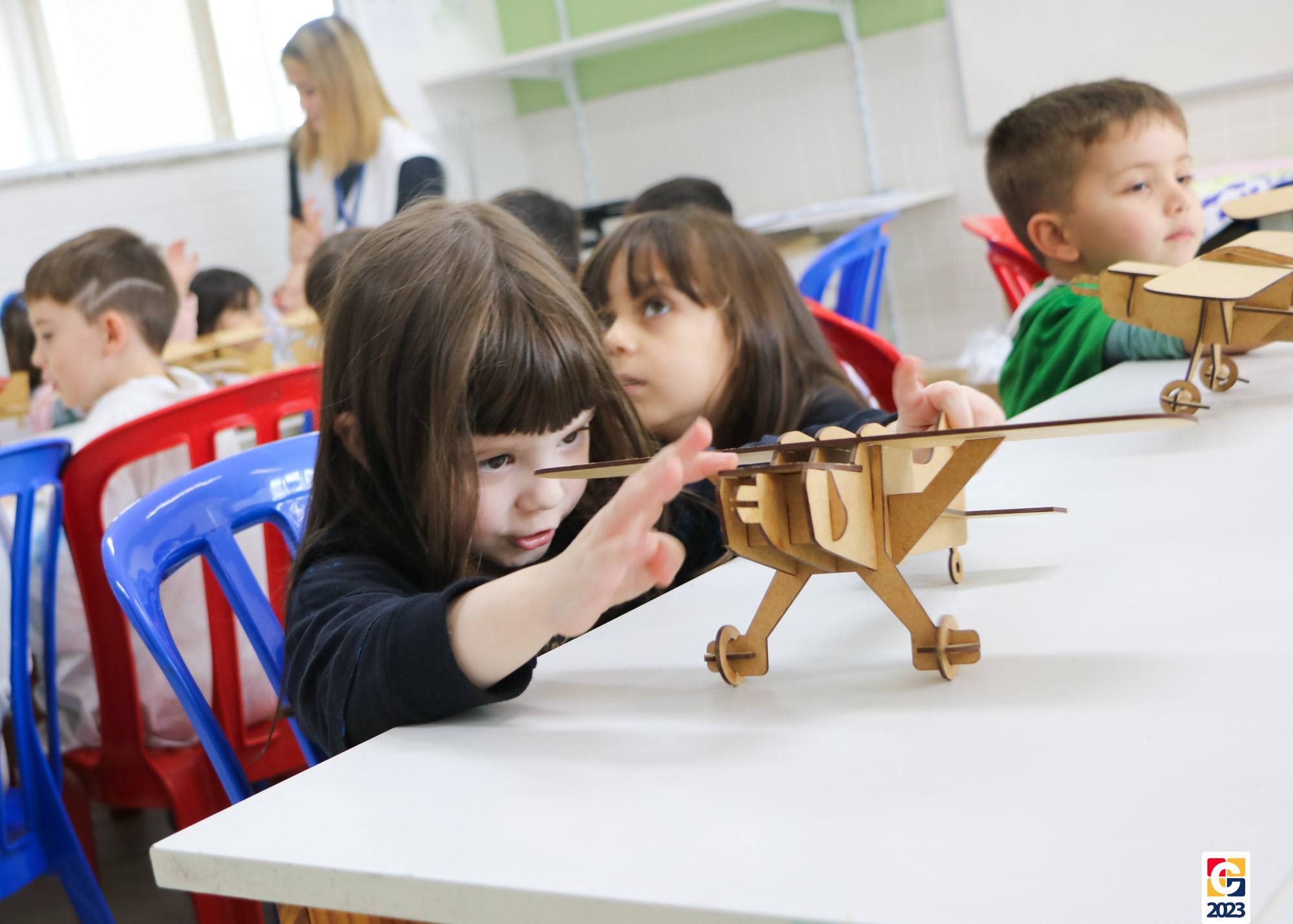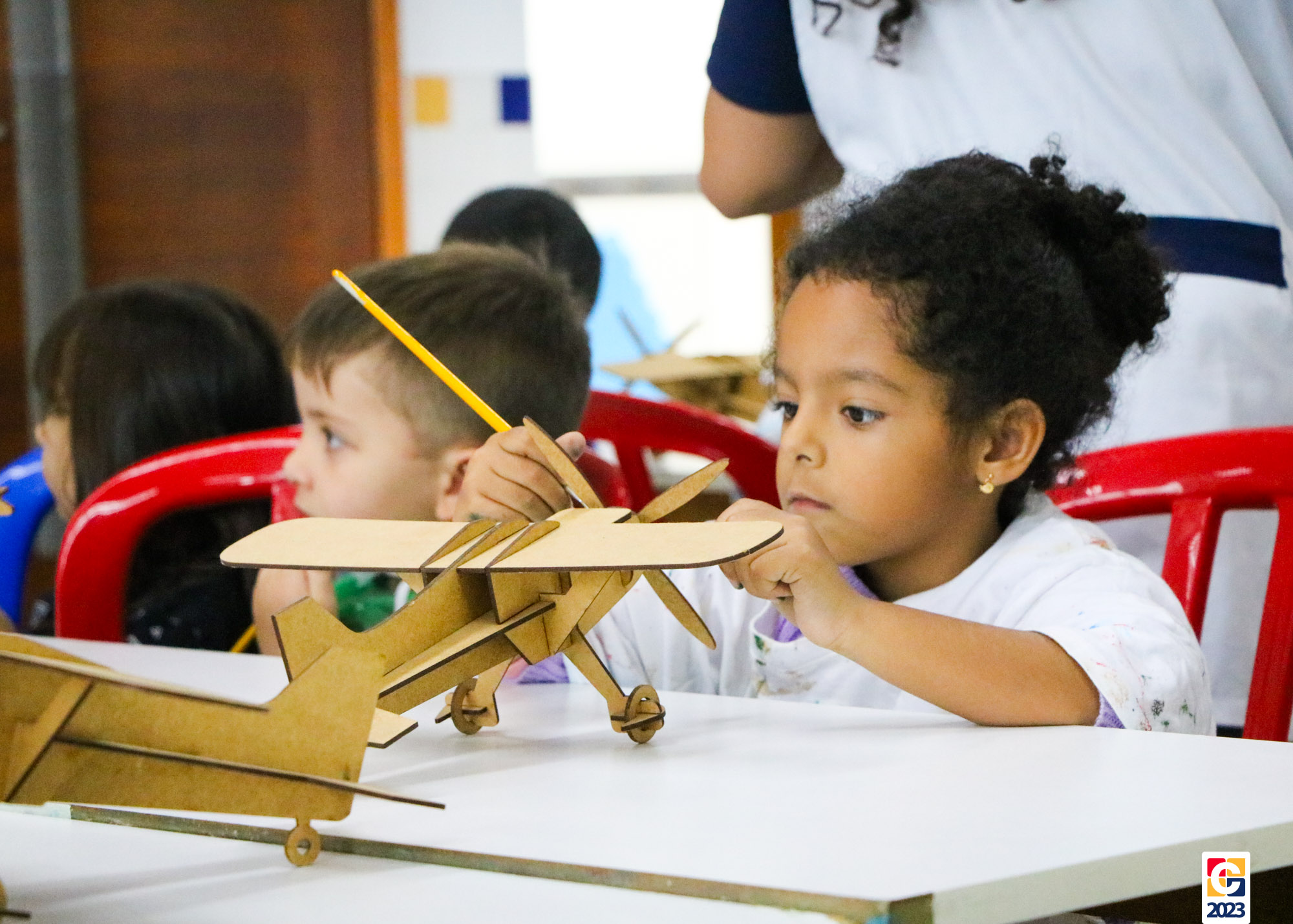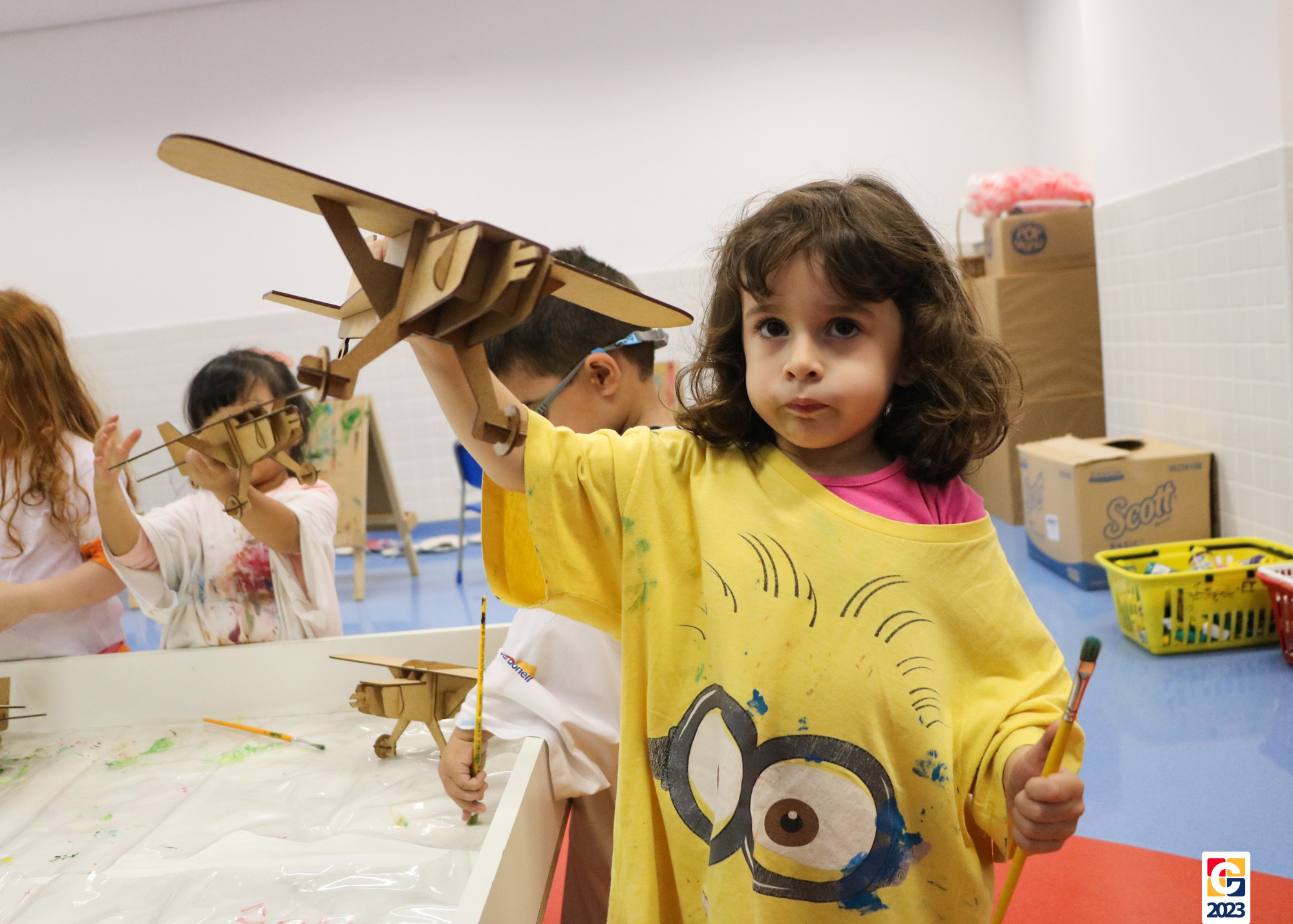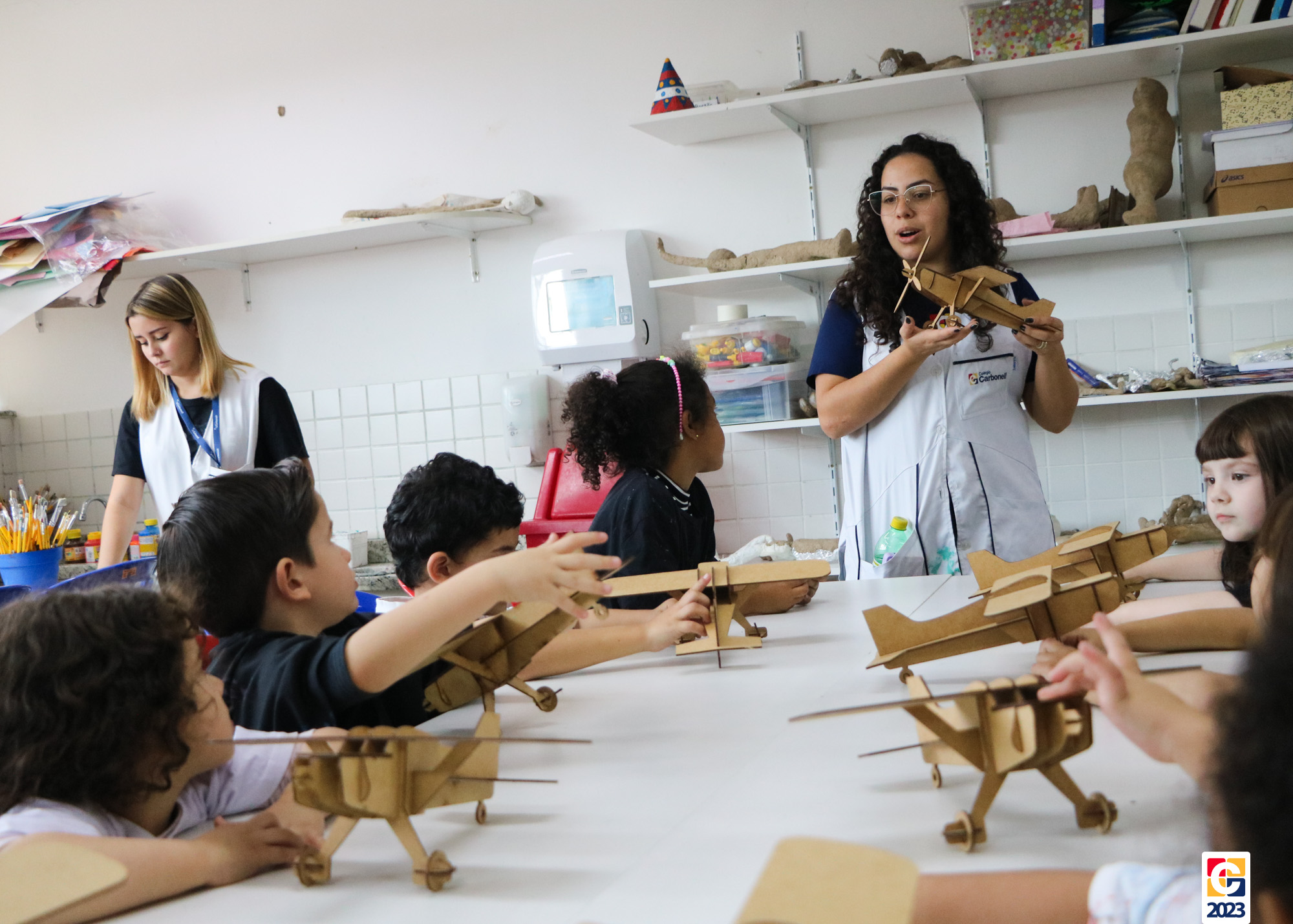 Na primeira semana, as turminhas do Infantil começaram os trabalhos com atividade criativa: cada criança ganhou um aviãozinho e precisou pintá-lo, cada qual do seu jeitinho. Logo depois, com a contação de histórias da Diana, as crianças descobriram que seus aviões foram inspirados na narrativa de Fernando, do livro “As Aventuras do Avião Vermelho”, um garoto que, ao ganhar um livro de seu pai, se encanta com a história de um aviador. Ao longo da narrativa, Fernando realiza várias viagens, inclusive de ir à Lua com seus bichinhos de pelúcia. Aqui, após ouvirem o conto, nossos pequenos também puderam fazer sua própria viagem com as professoras. E até uma receita de areia da Lua fizeram! 🌕