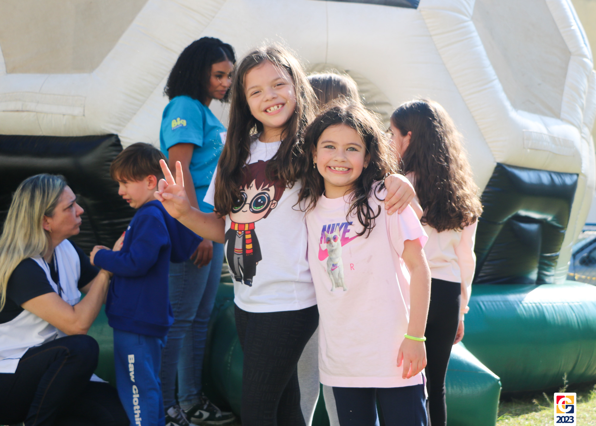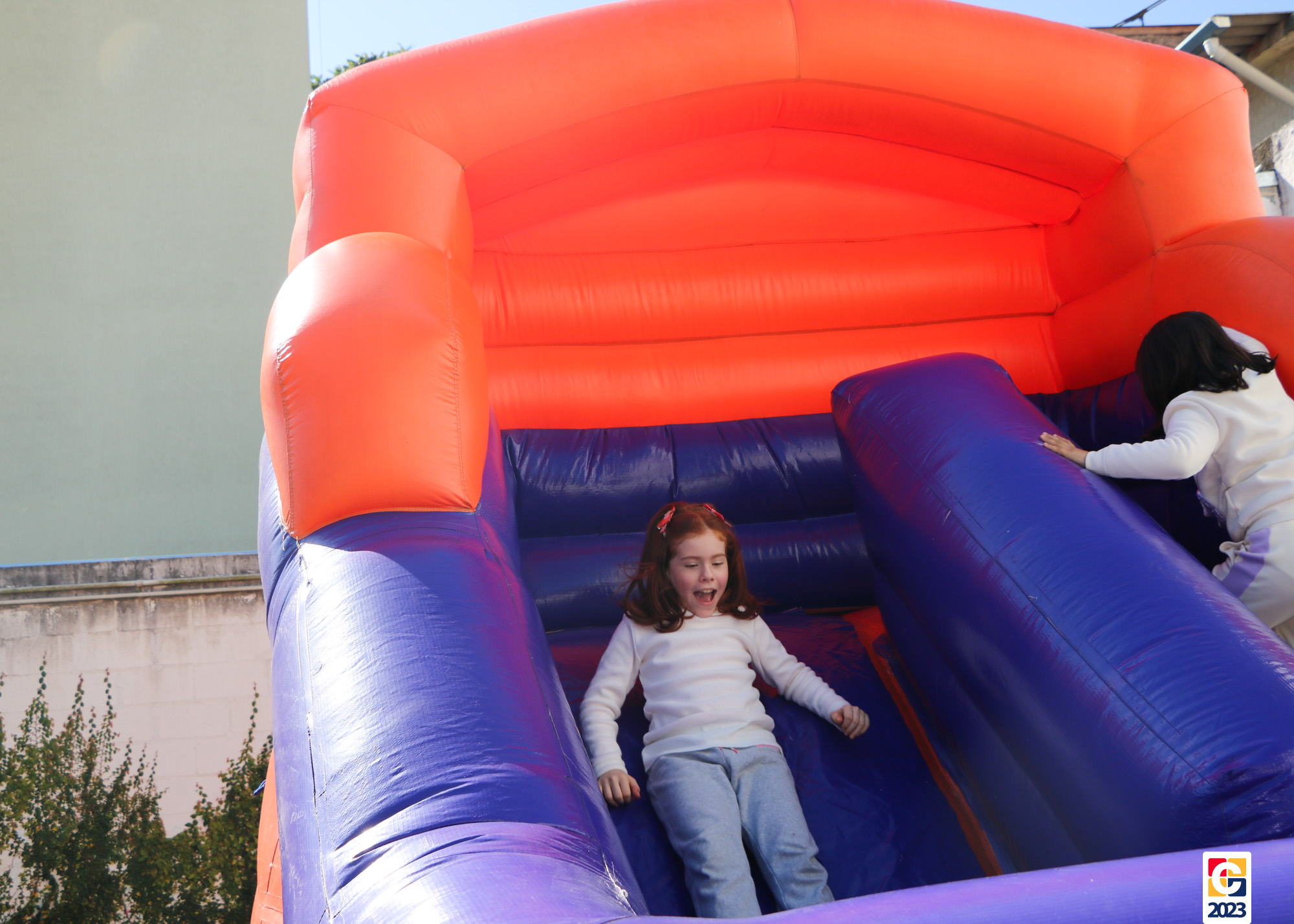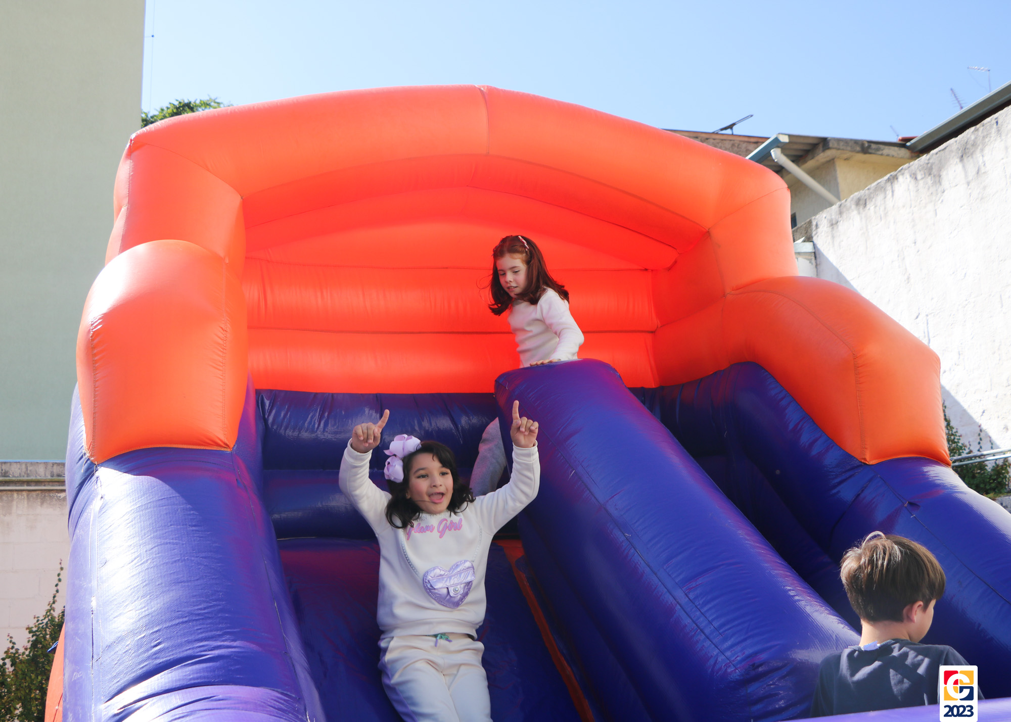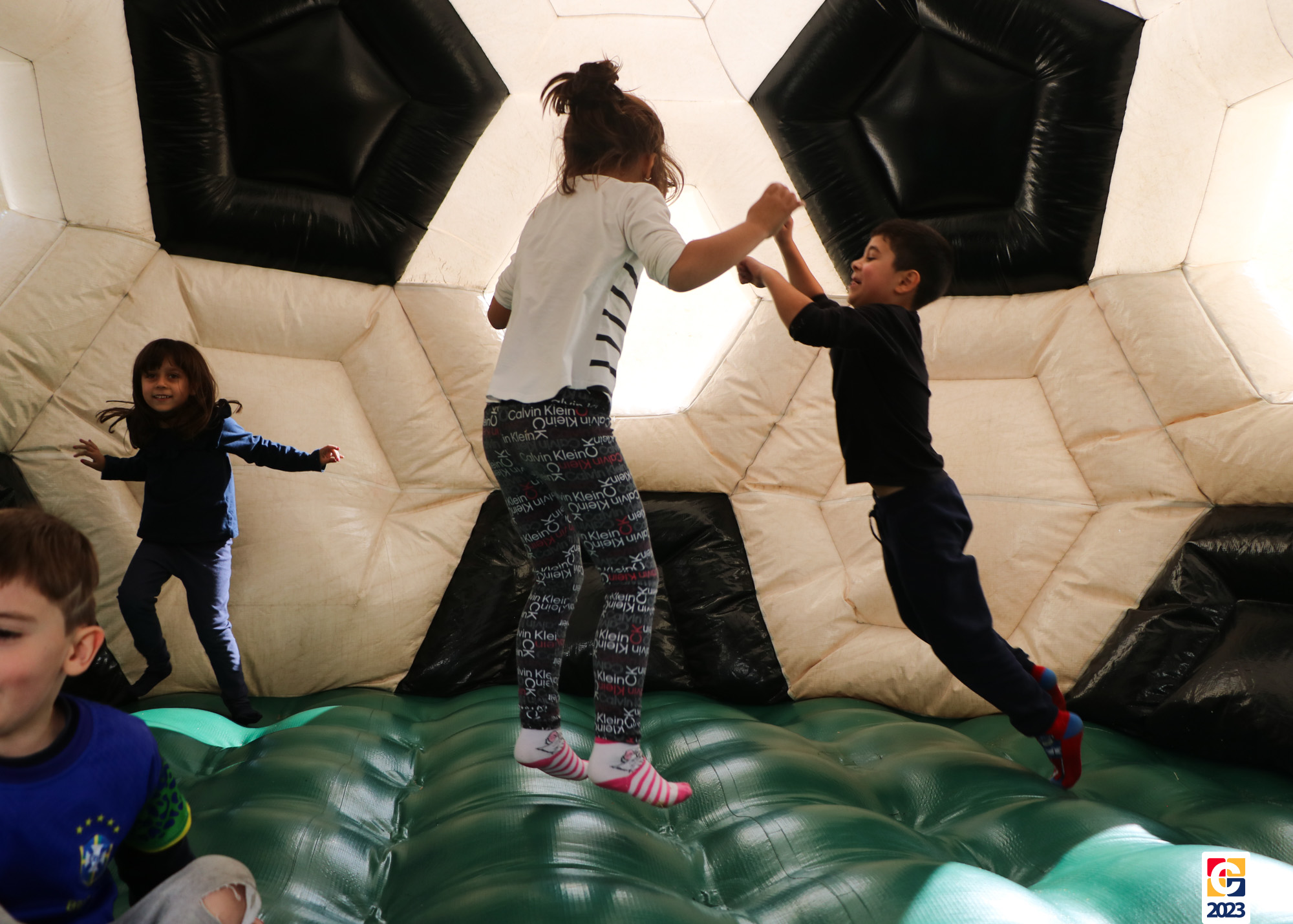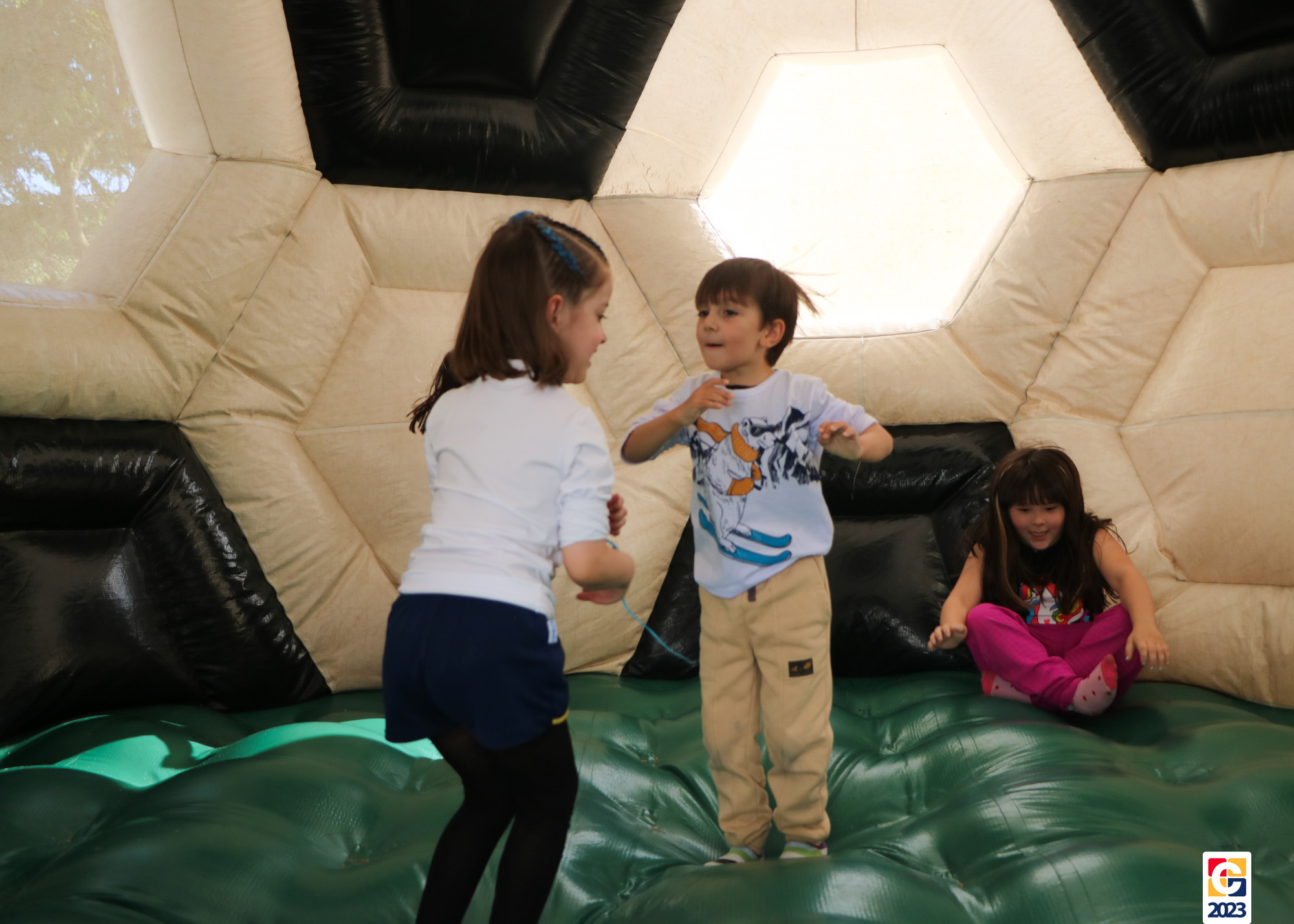 No Curso de Férias, ambas as turmas ainda compartilharam uma tarde cheia de diversão, ocasião em que saíram para o gramado e surpreenderam-se com brinquedos infláveis; teve lanchinho especial, com salgados e bolo de chocolate! 🥳