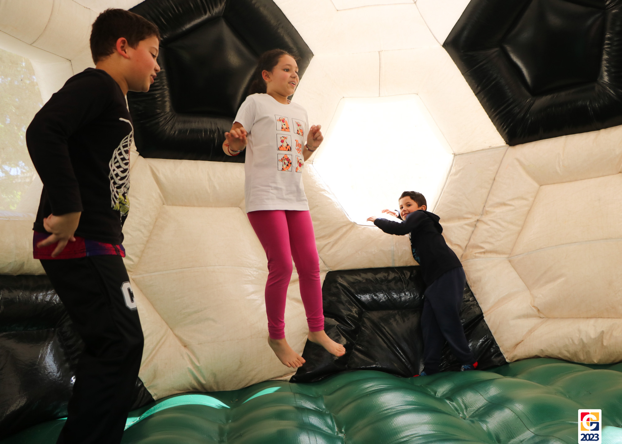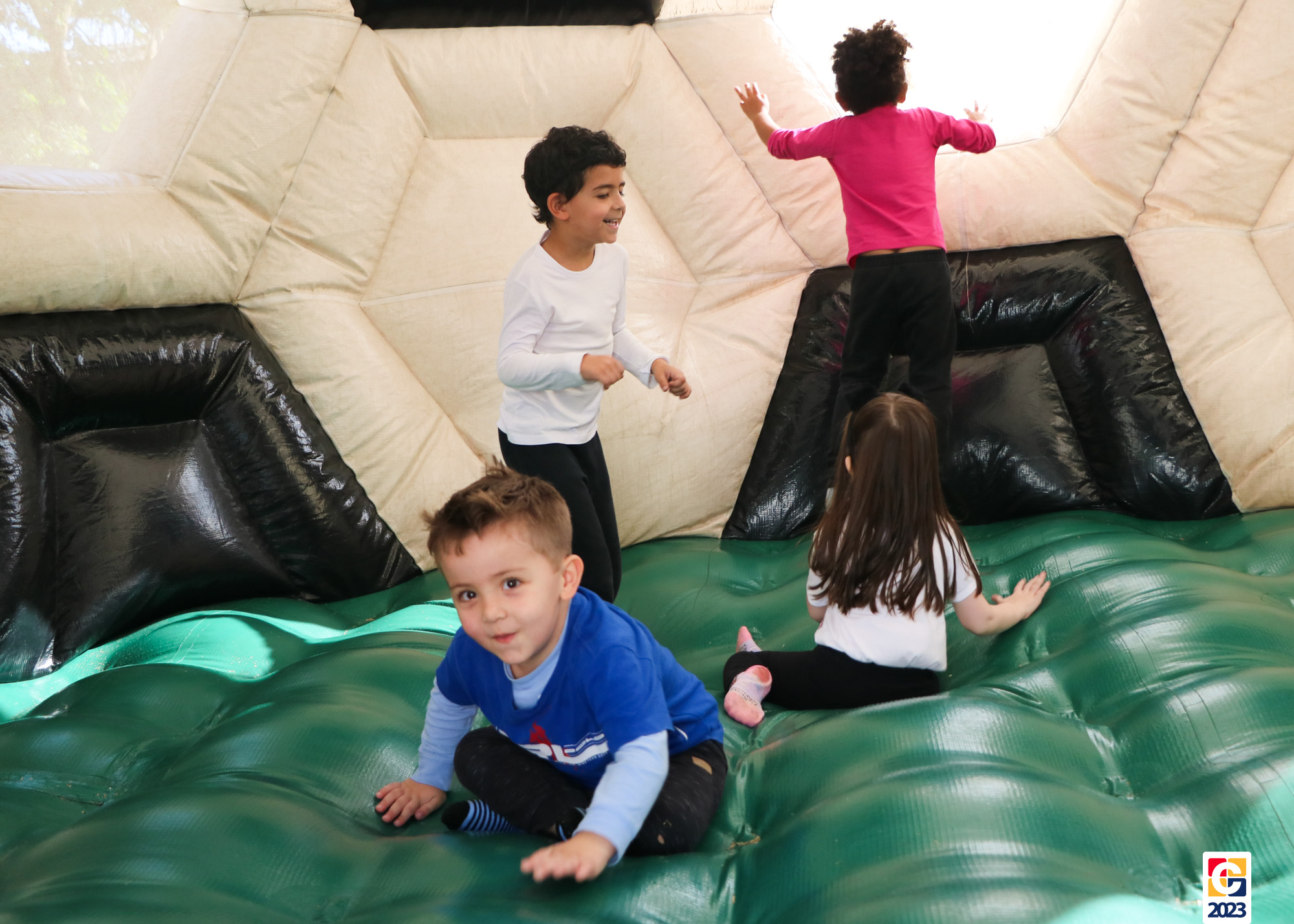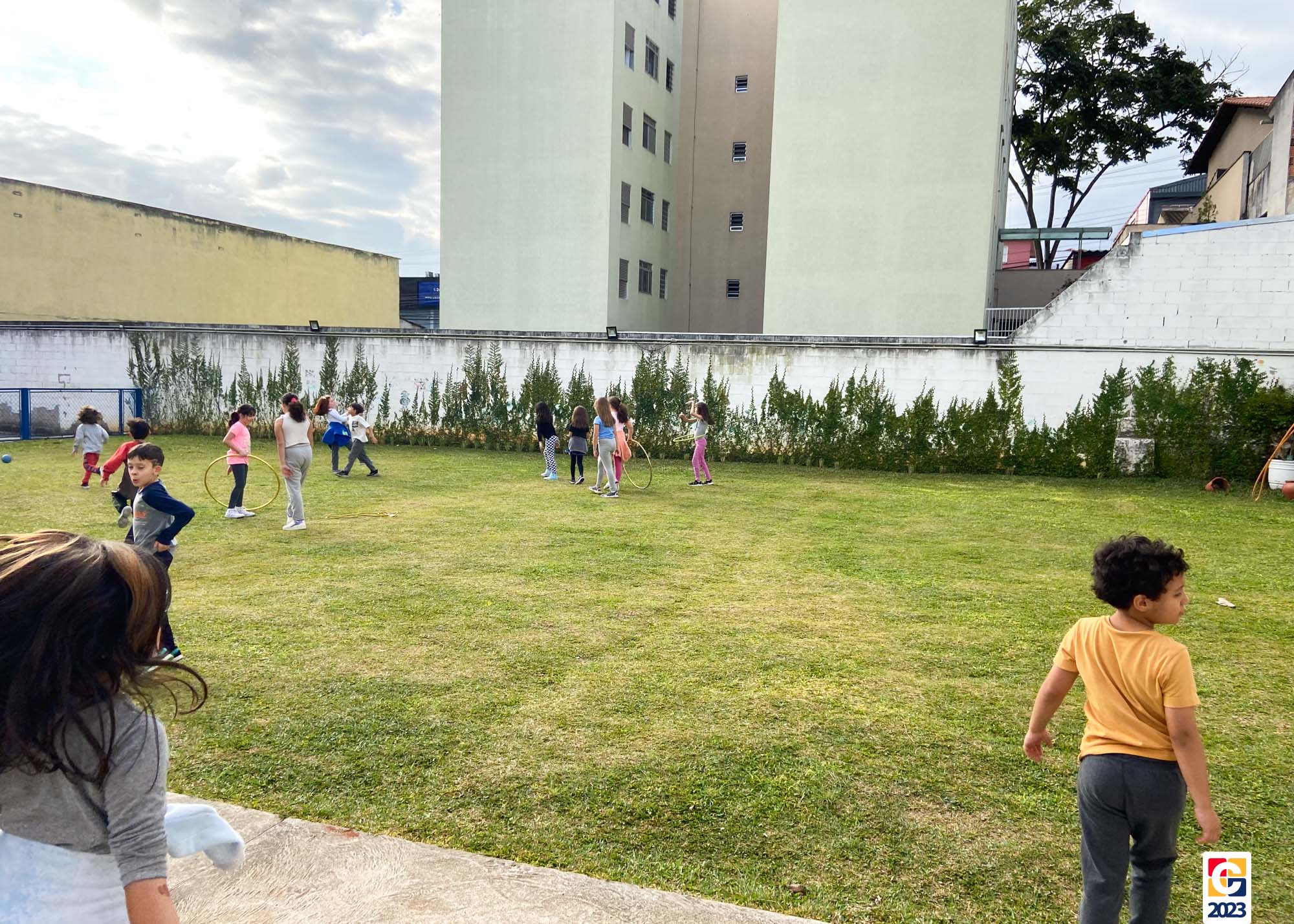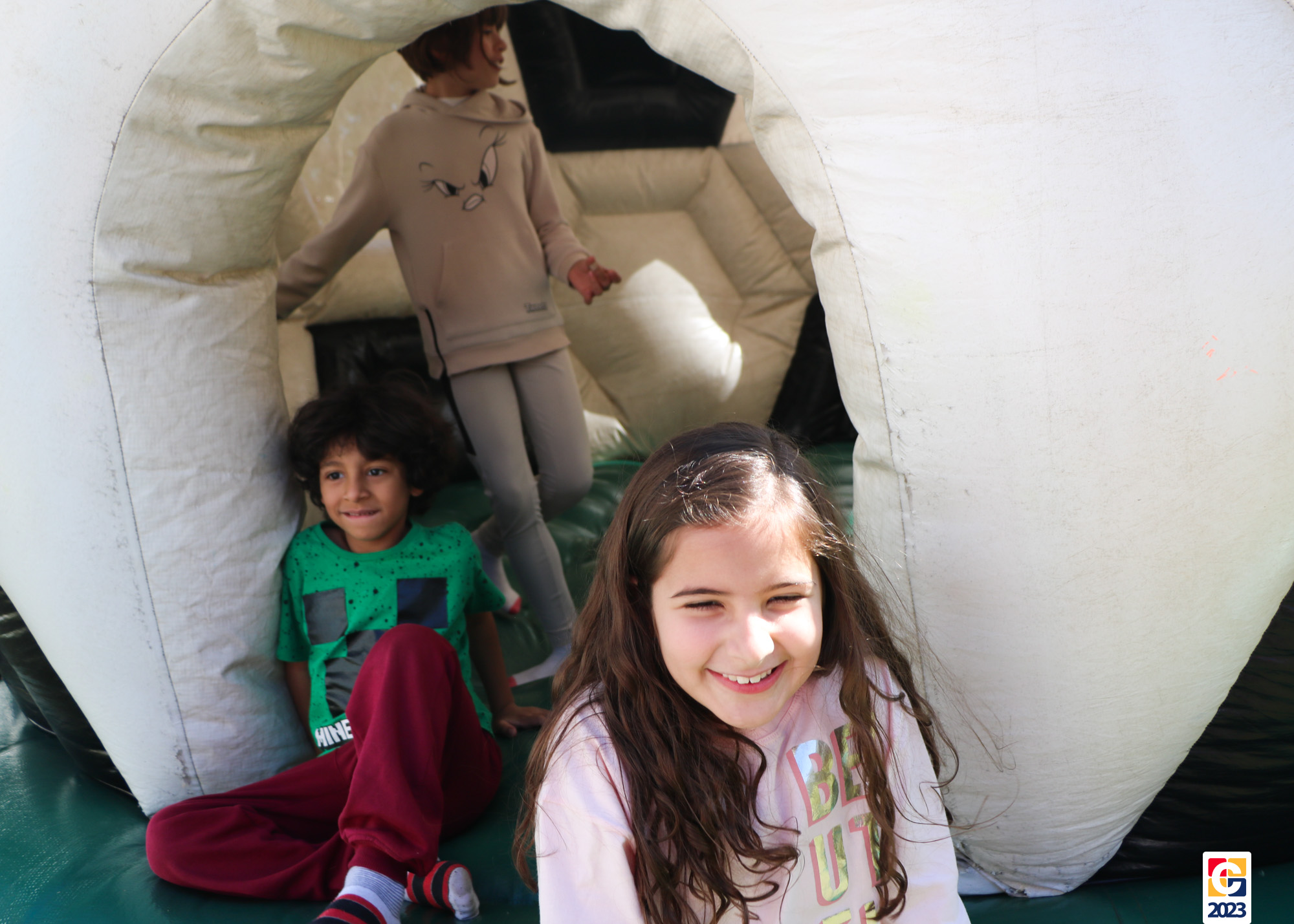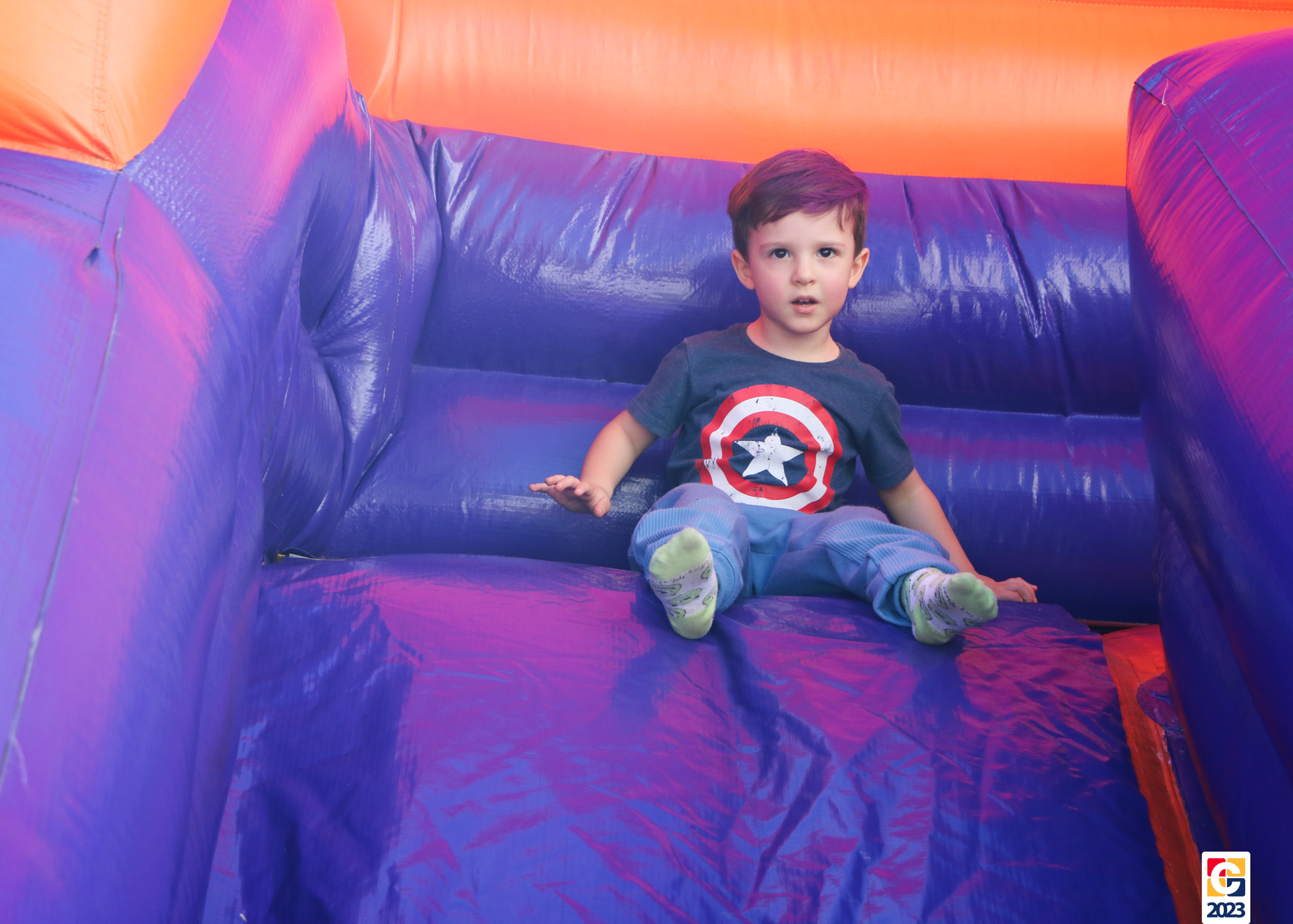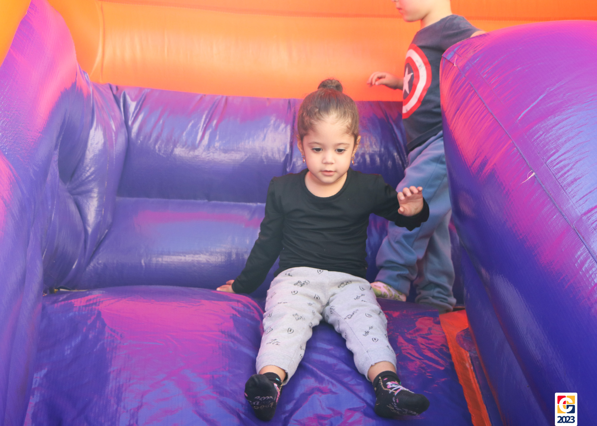 No Curso de Férias, ambas as turmas ainda compartilharam uma tarde cheia de diversão, ocasião em que saíram para o gramado e surpreenderam-se com brinquedos infláveis; teve lanchinho especial, com salgados e bolo de chocolate! 🥳