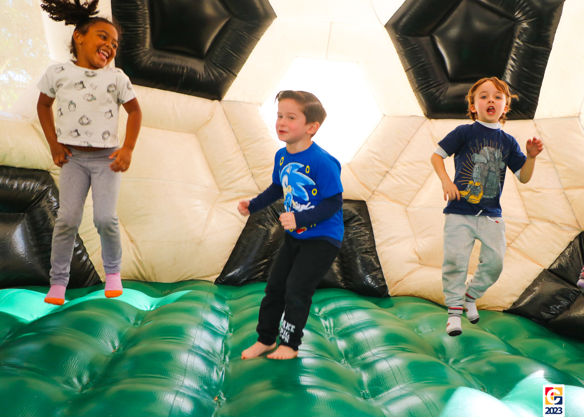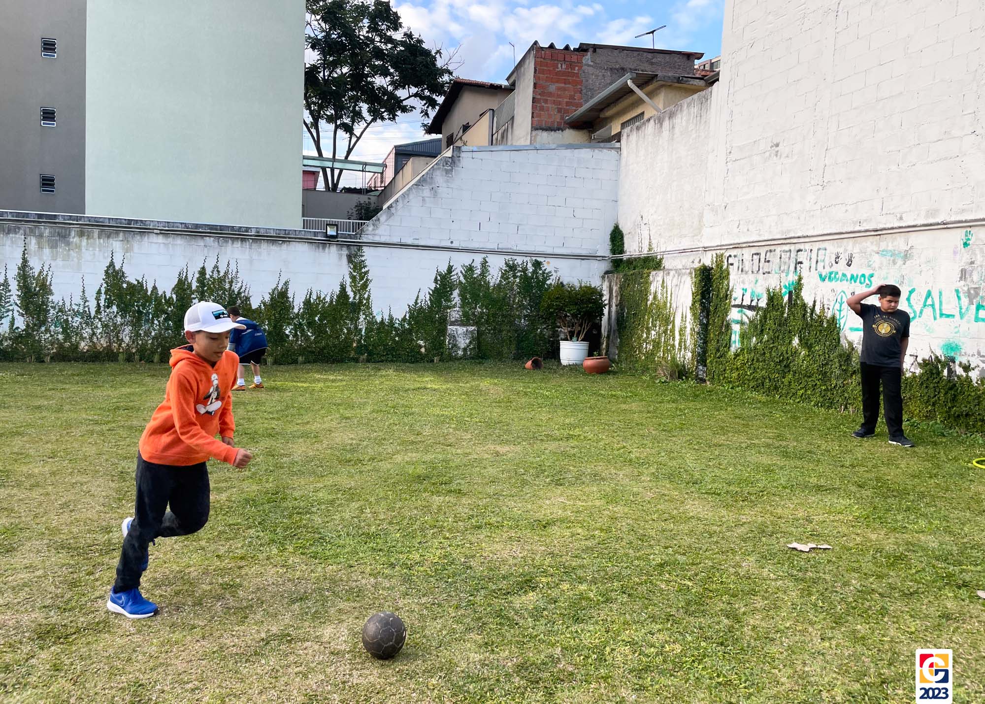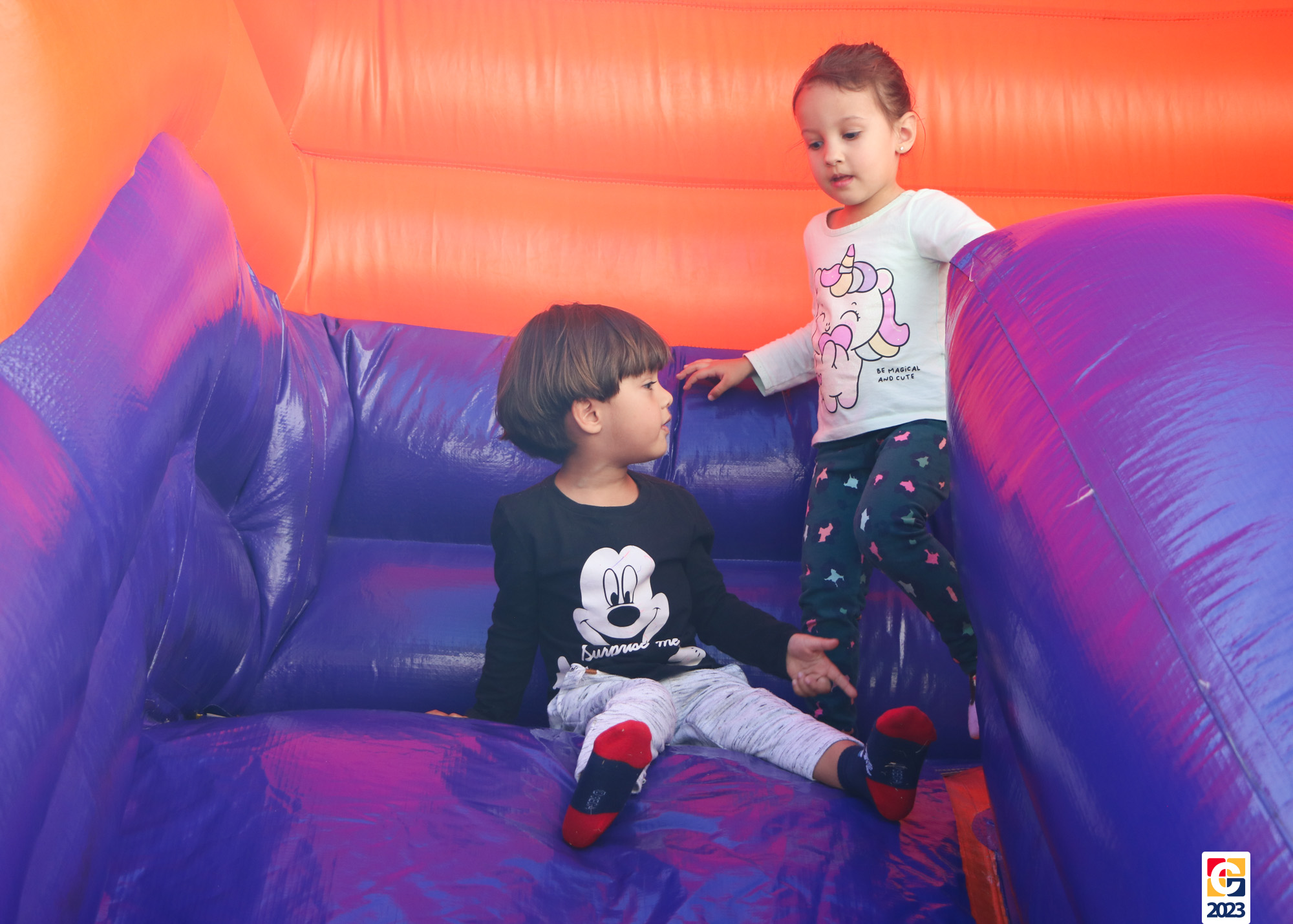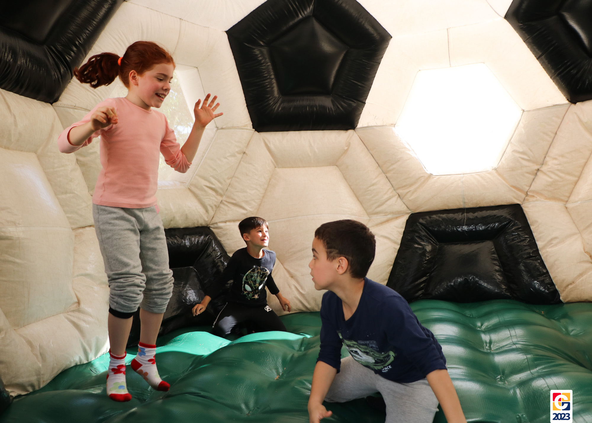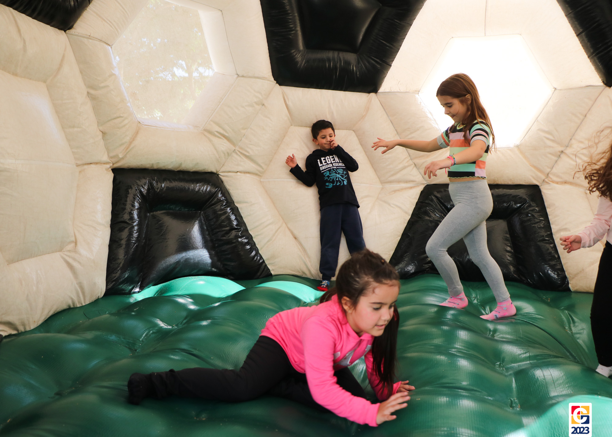 No Curso de Férias, ambas as turmas ainda compartilharam uma tarde cheia de diversão, ocasião em que saíram para o gramado e surpreenderam-se com brinquedos infláveis; teve lanchinho especial, com salgados e bolo de chocolate! 🥳