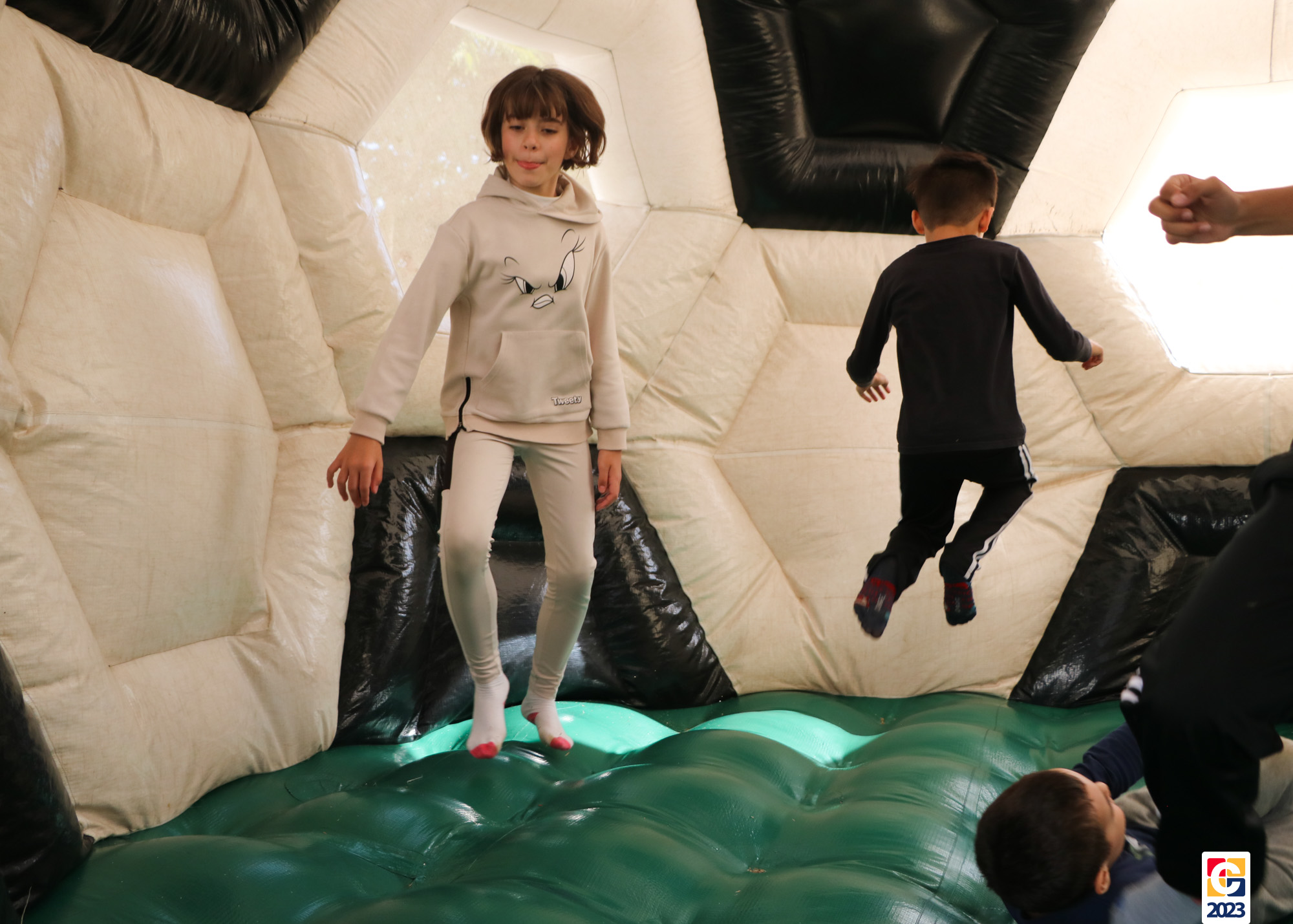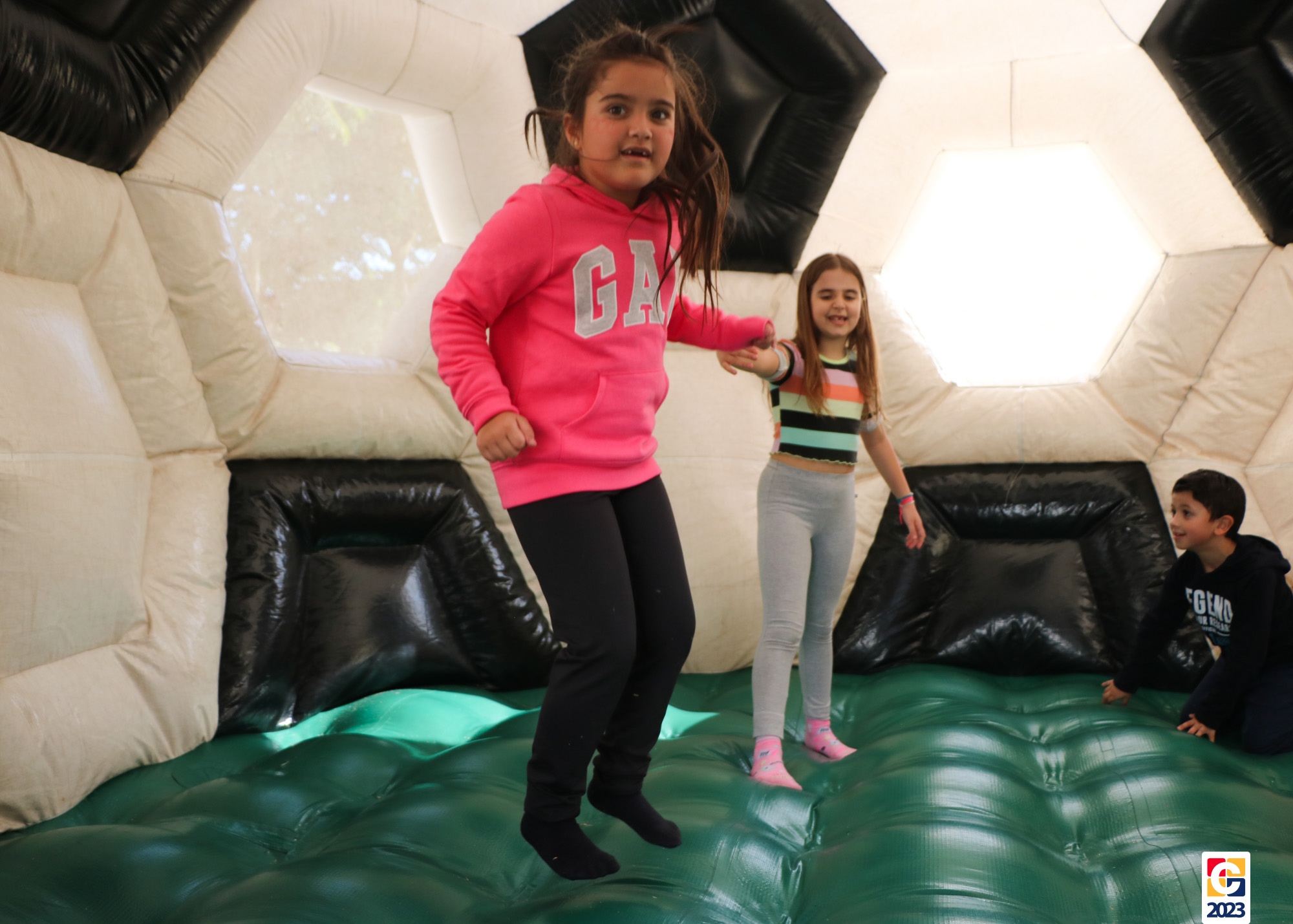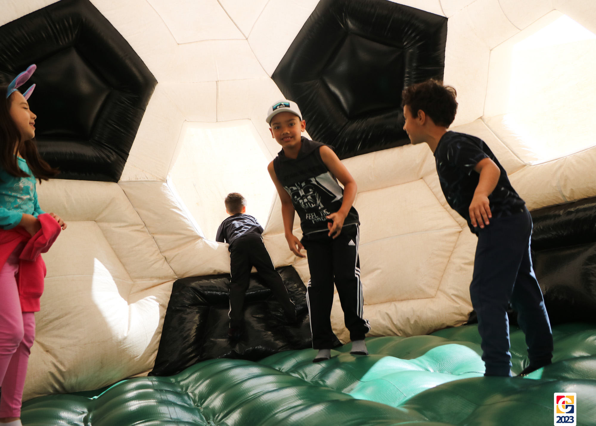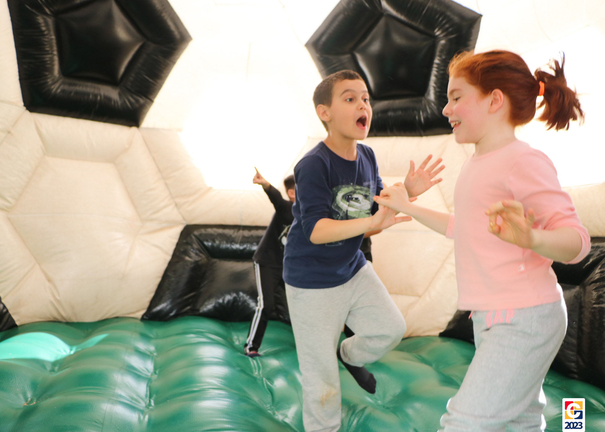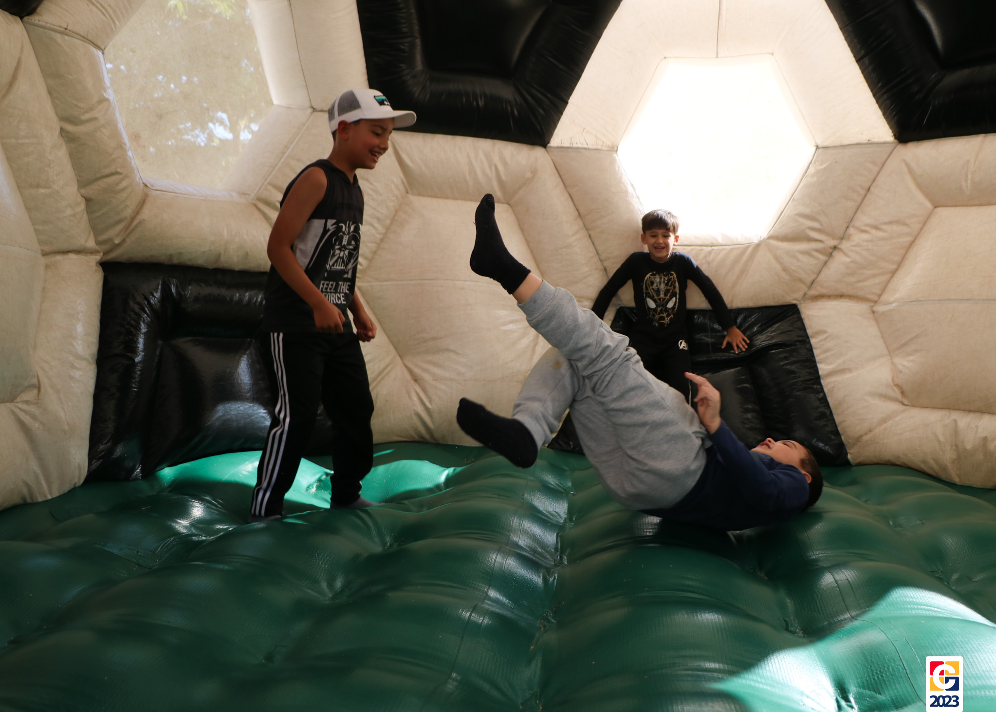No Curso de Férias, ambas as turmas ainda compartilharam uma tarde cheia de diversão, ocasião em que saíram para o gramado e surpreenderam-se com brinquedos infláveis; teve lanchinho especial, com salgados e bolo de chocolate! 🥳