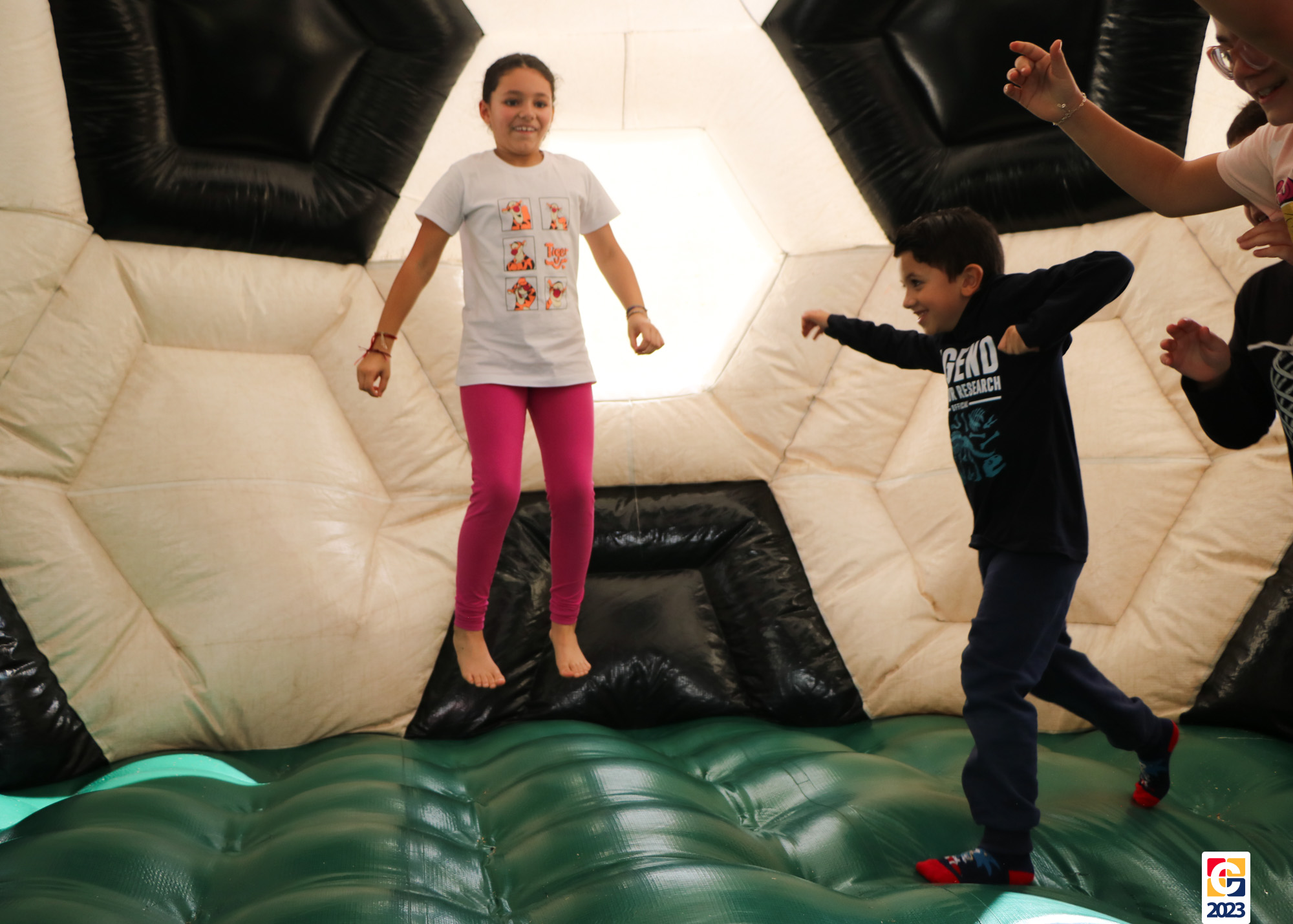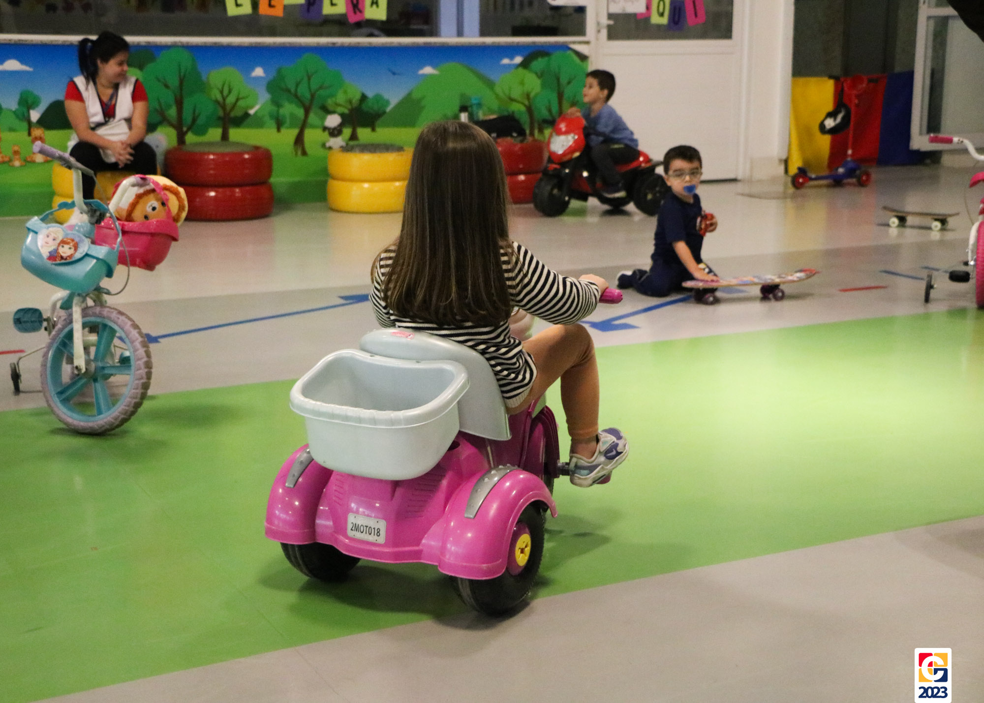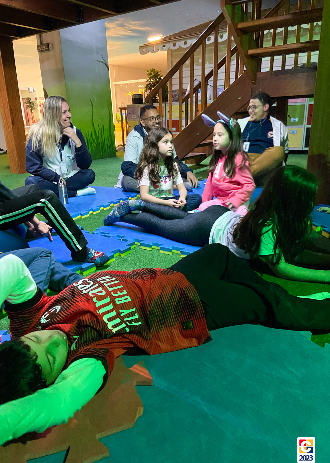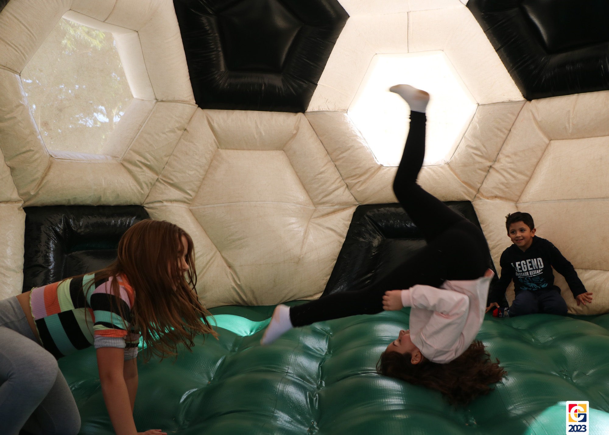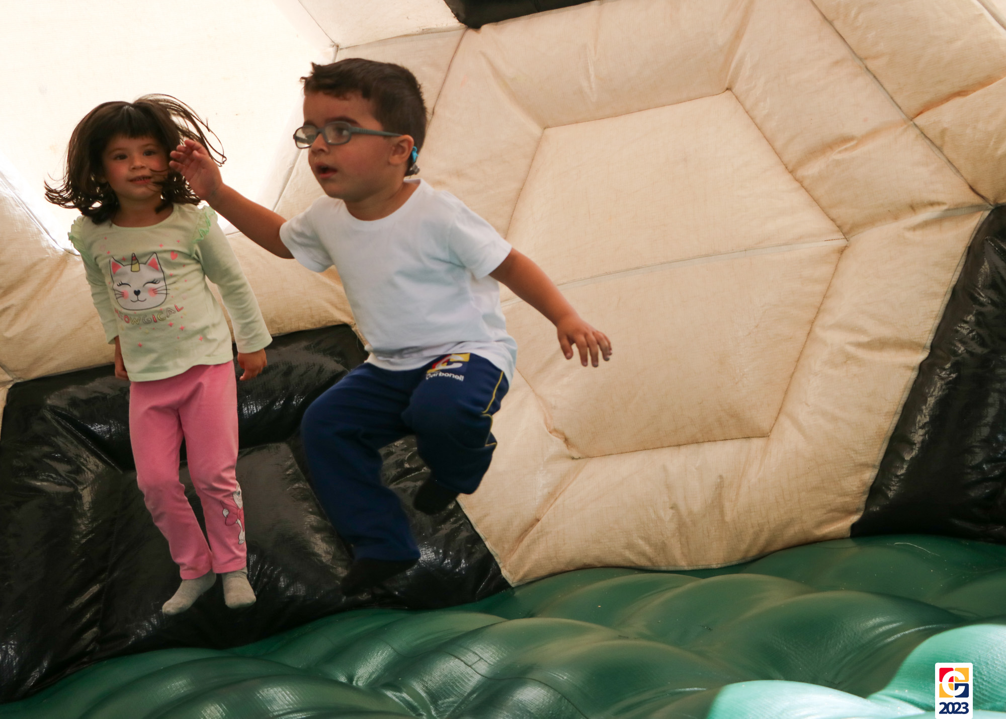 No Curso de Férias, ambas as turmas ainda compartilharam uma tarde cheia de diversão, ocasião em que saíram para o gramado e surpreenderam-se com brinquedos infláveis; teve lanchinho especial, com salgados e bolo de chocolate! 🥳