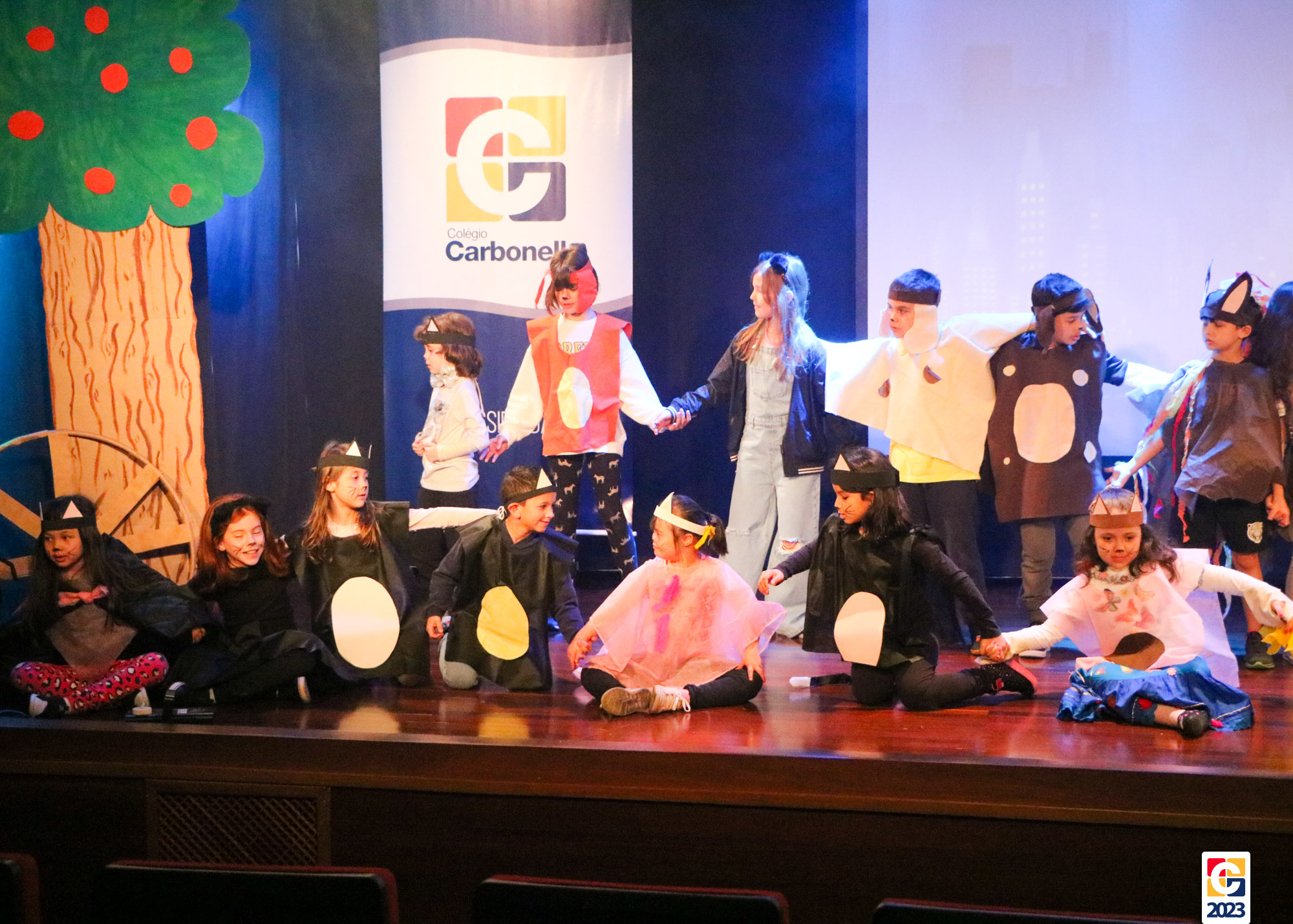 A inesquecível edição 2024 do Curso de Férias terminou com a belíssima releitura da peça teatral, apresentada aqui pelos atores dos Anos Iniciais às crianças da Educação Infantil. Nos bastidores, eles ajudaram uns aos outros com roupas e maquiagens, e, no palco, deram um show de atuação, cantando e dançando. 💃🏼🎭
