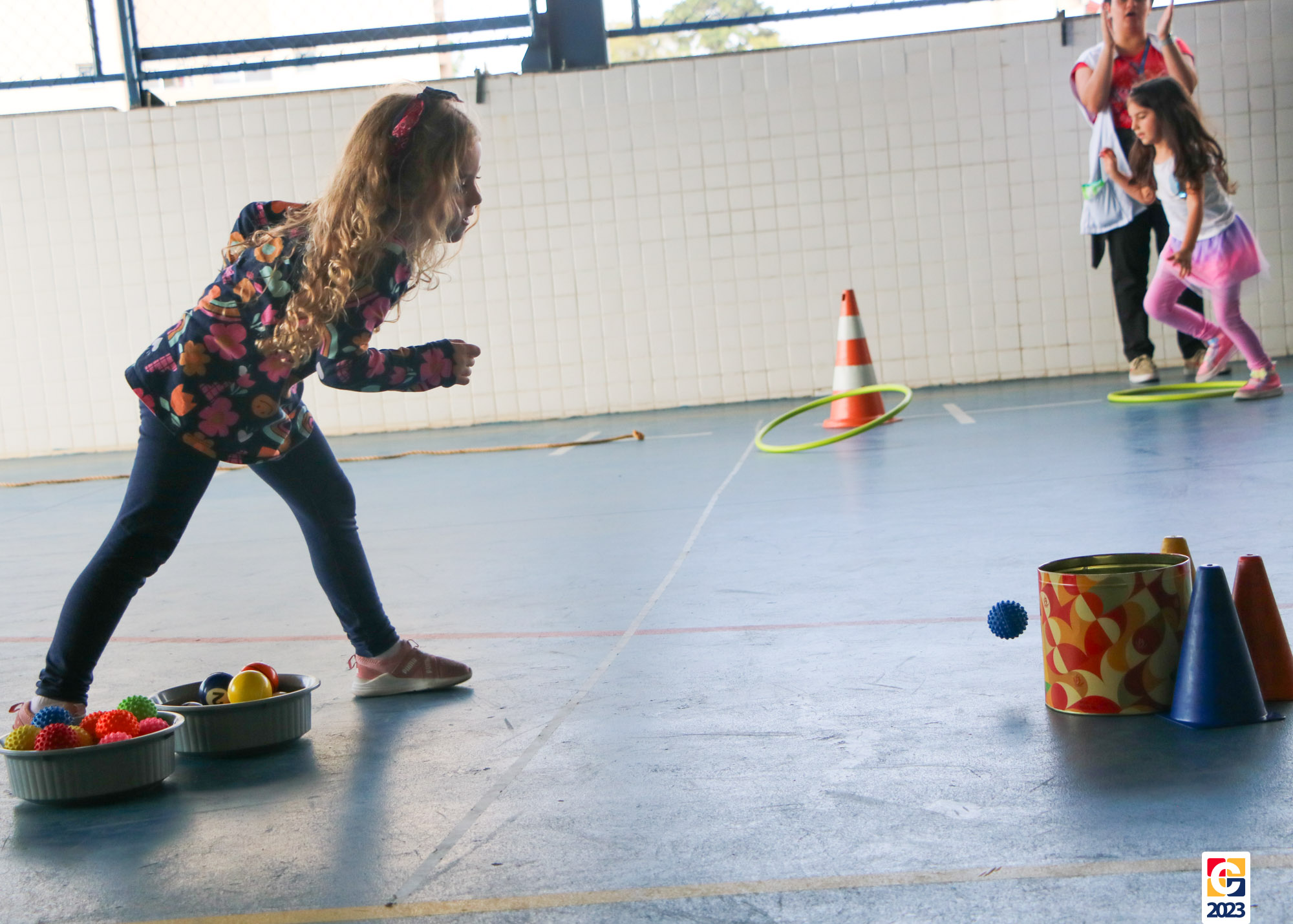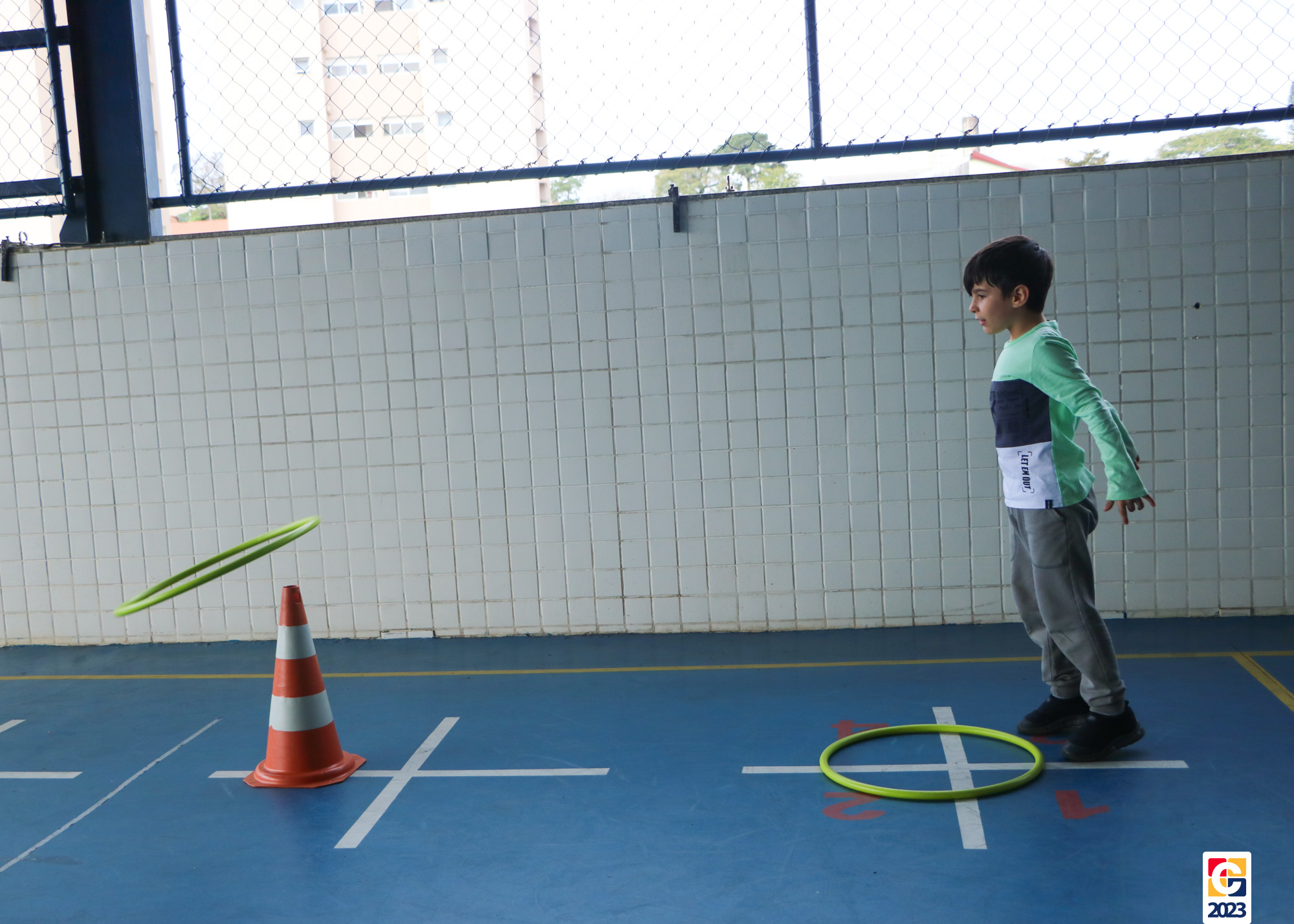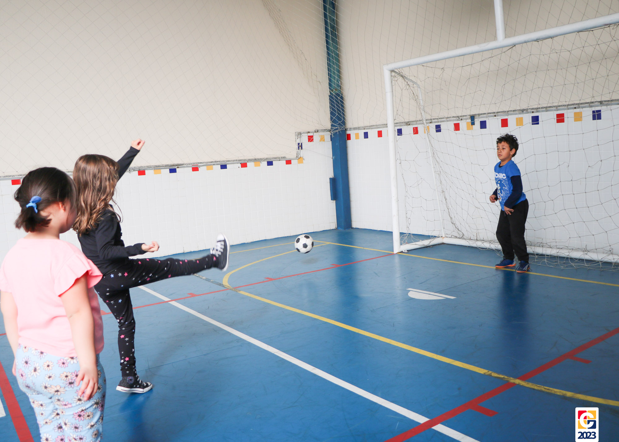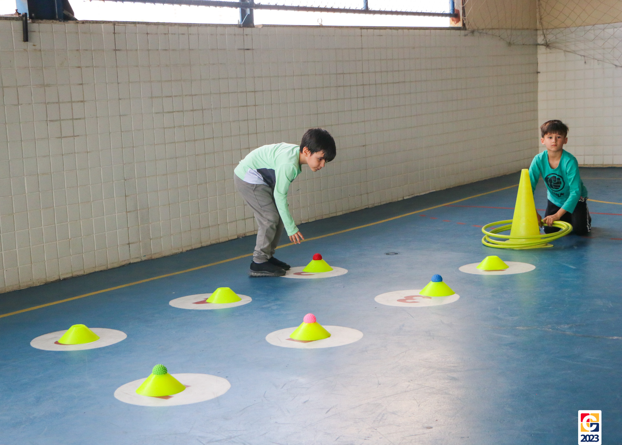 Pertinho dali, crianças dos Anos Iniciais continuaram a produzir os figurinos para a releitura de Saltimbancos, obra de Chico Buarque, e também puderam aproveitar momentos de diversão com o circuito preparado pelas próprias professoras; brincaram de futebol, pular corda e bambolê. ⚽