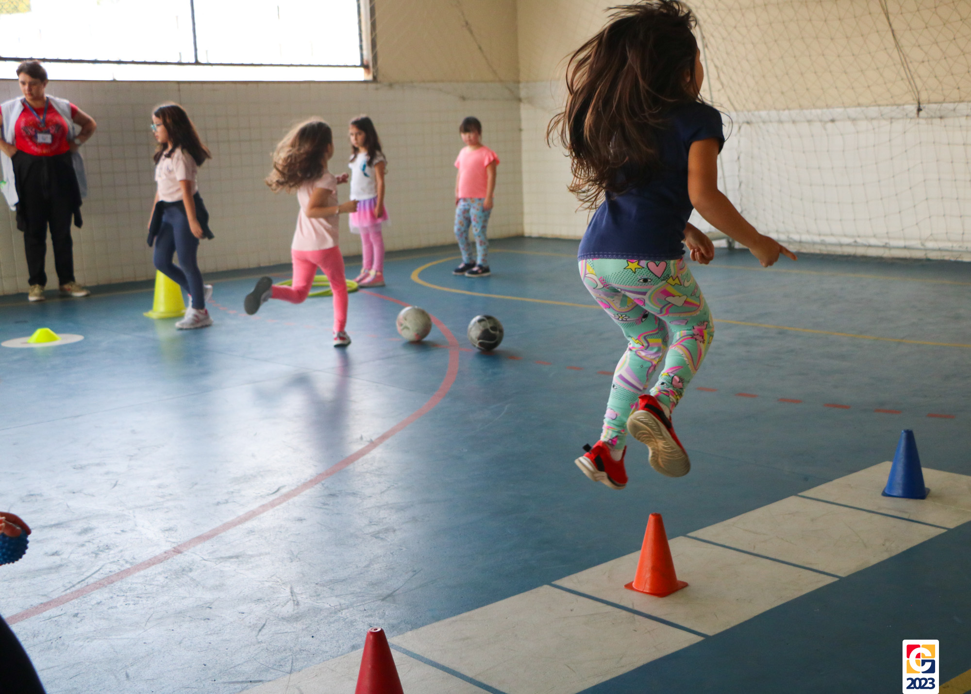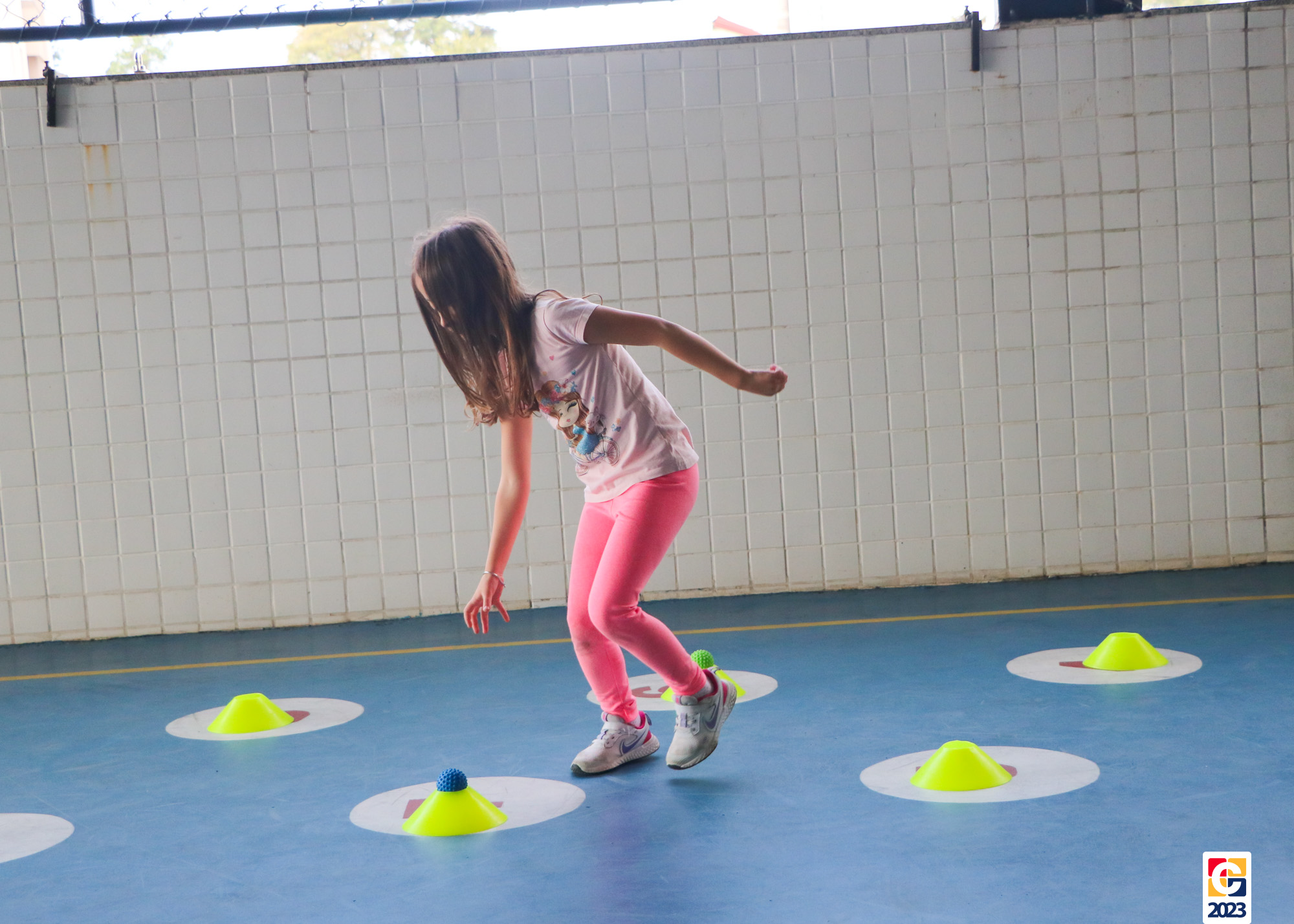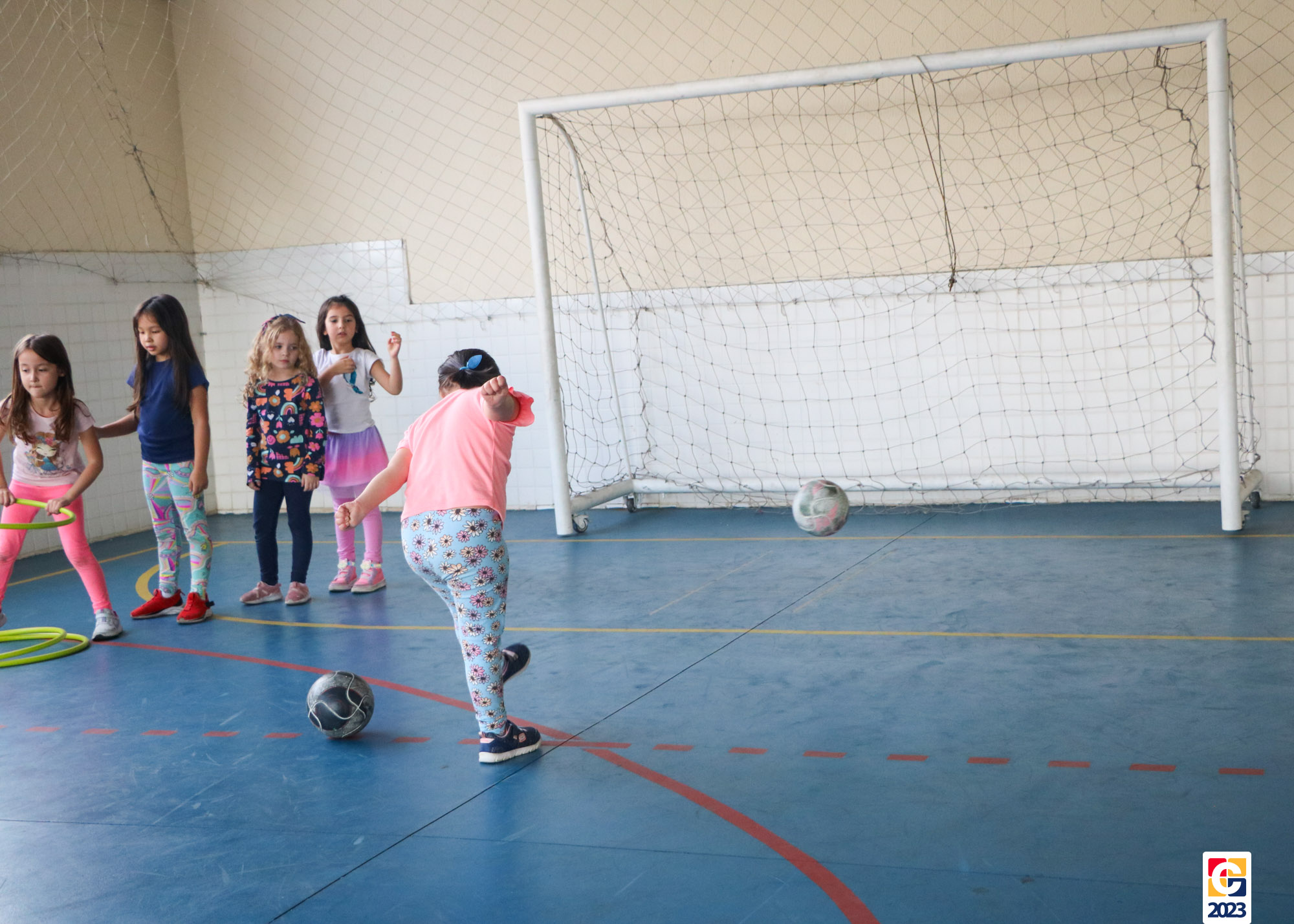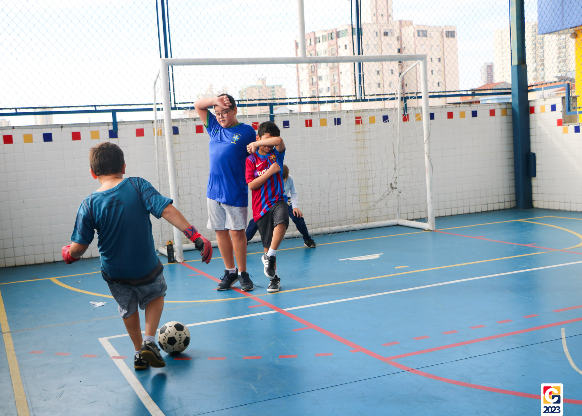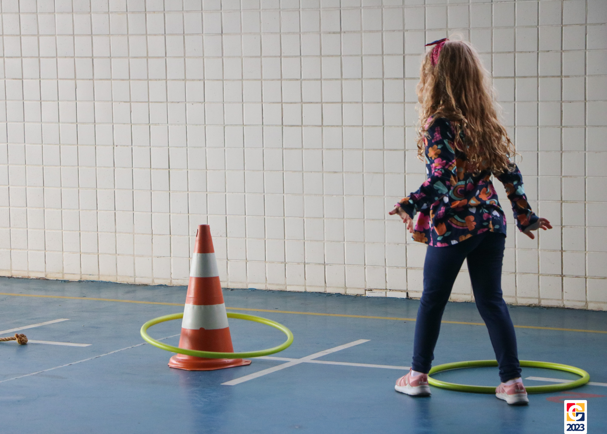 Pertinho dali, crianças dos Anos Iniciais continuaram a produzir os figurinos para a releitura de Saltimbancos, obra de Chico Buarque, e também puderam aproveitar momentos de diversão com o circuito preparado pelas próprias professoras; brincaram de futebol, pular corda e bambolê. ⚽
