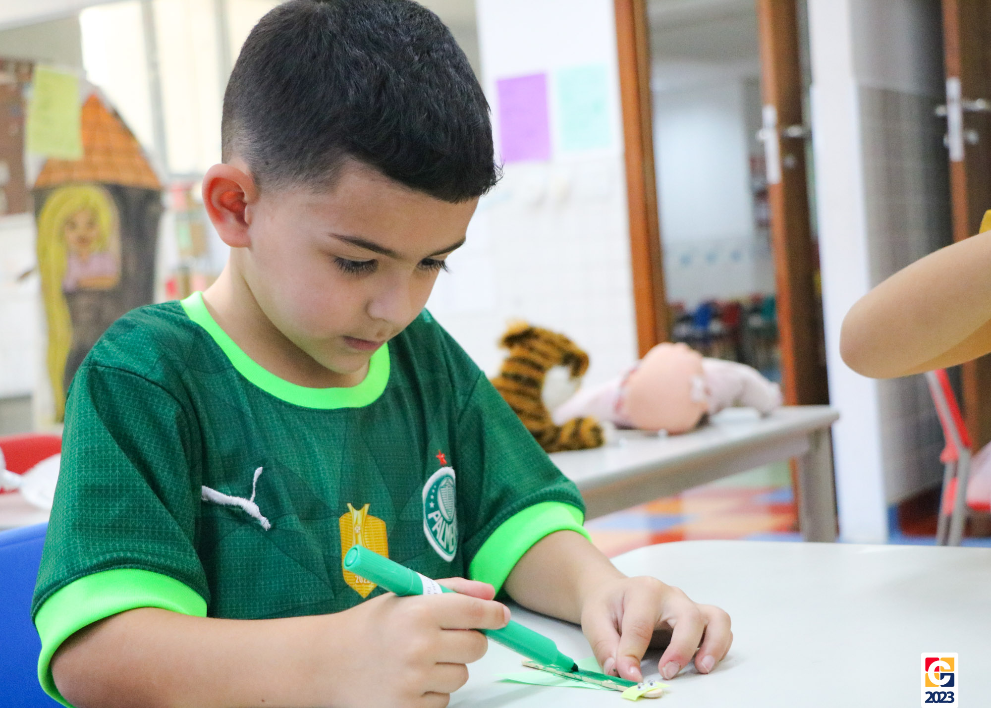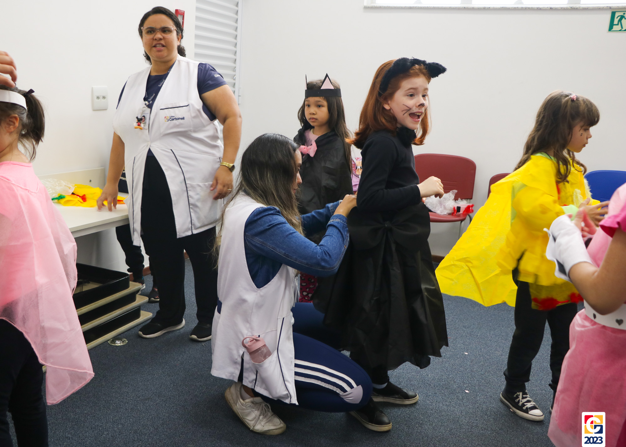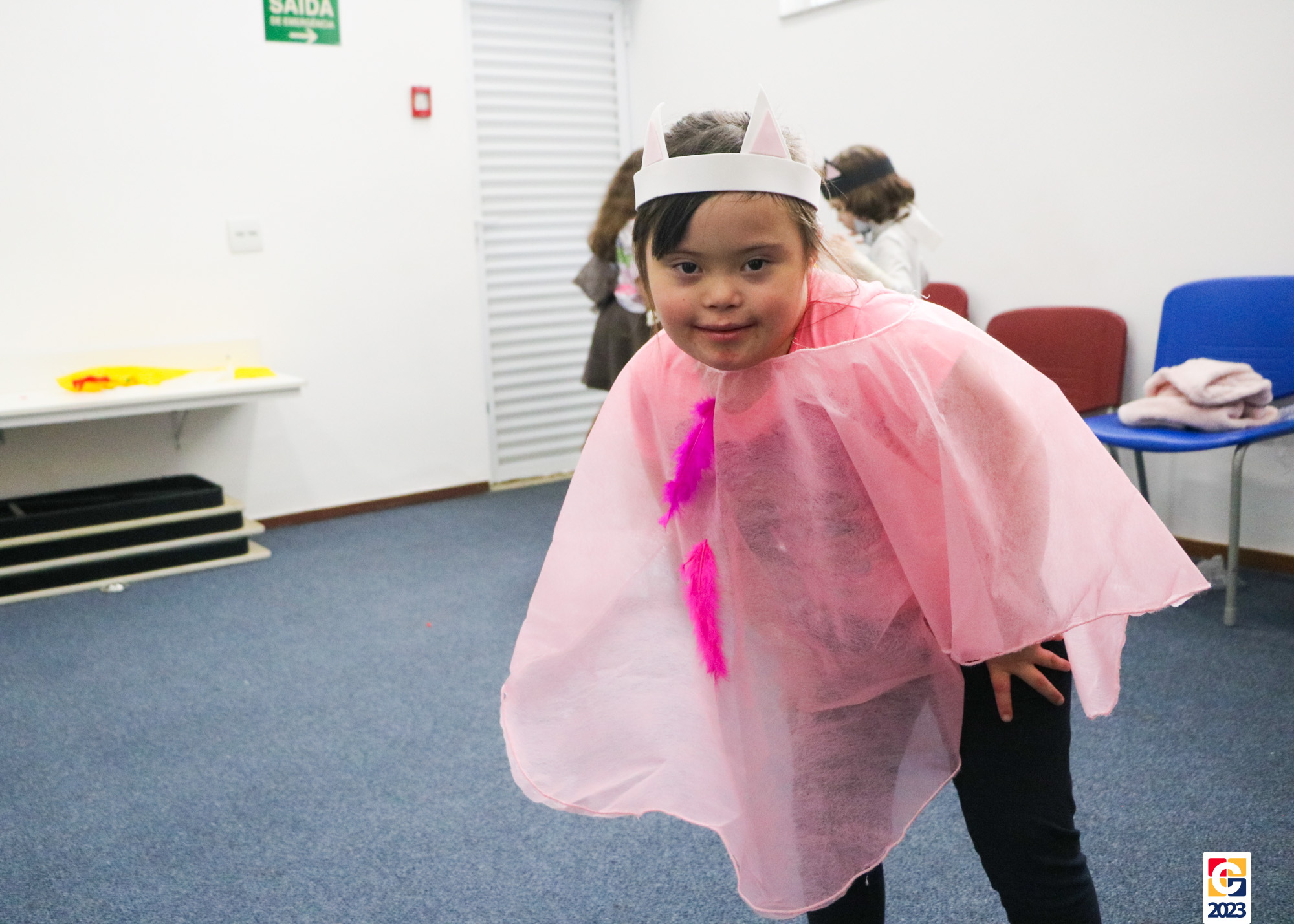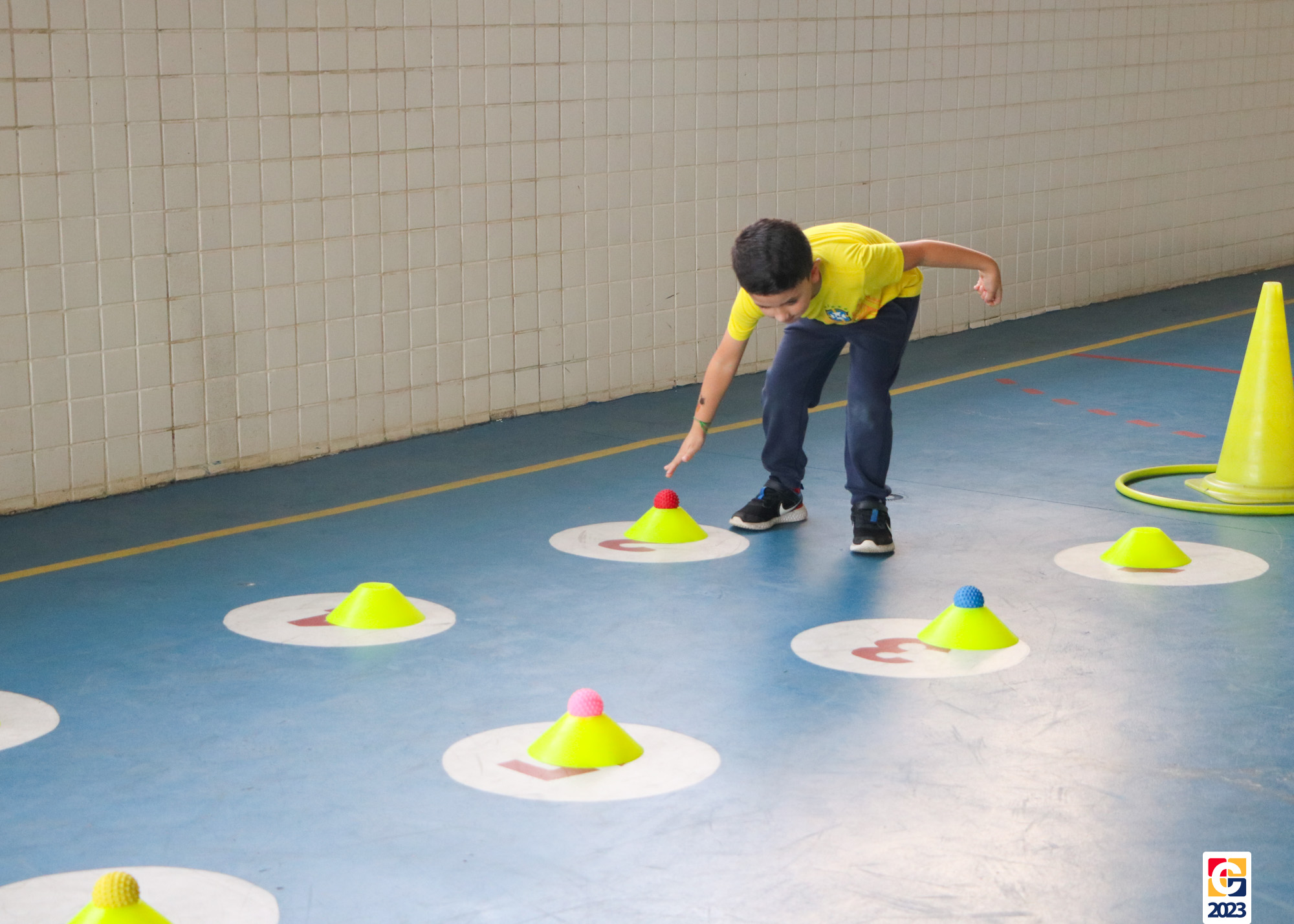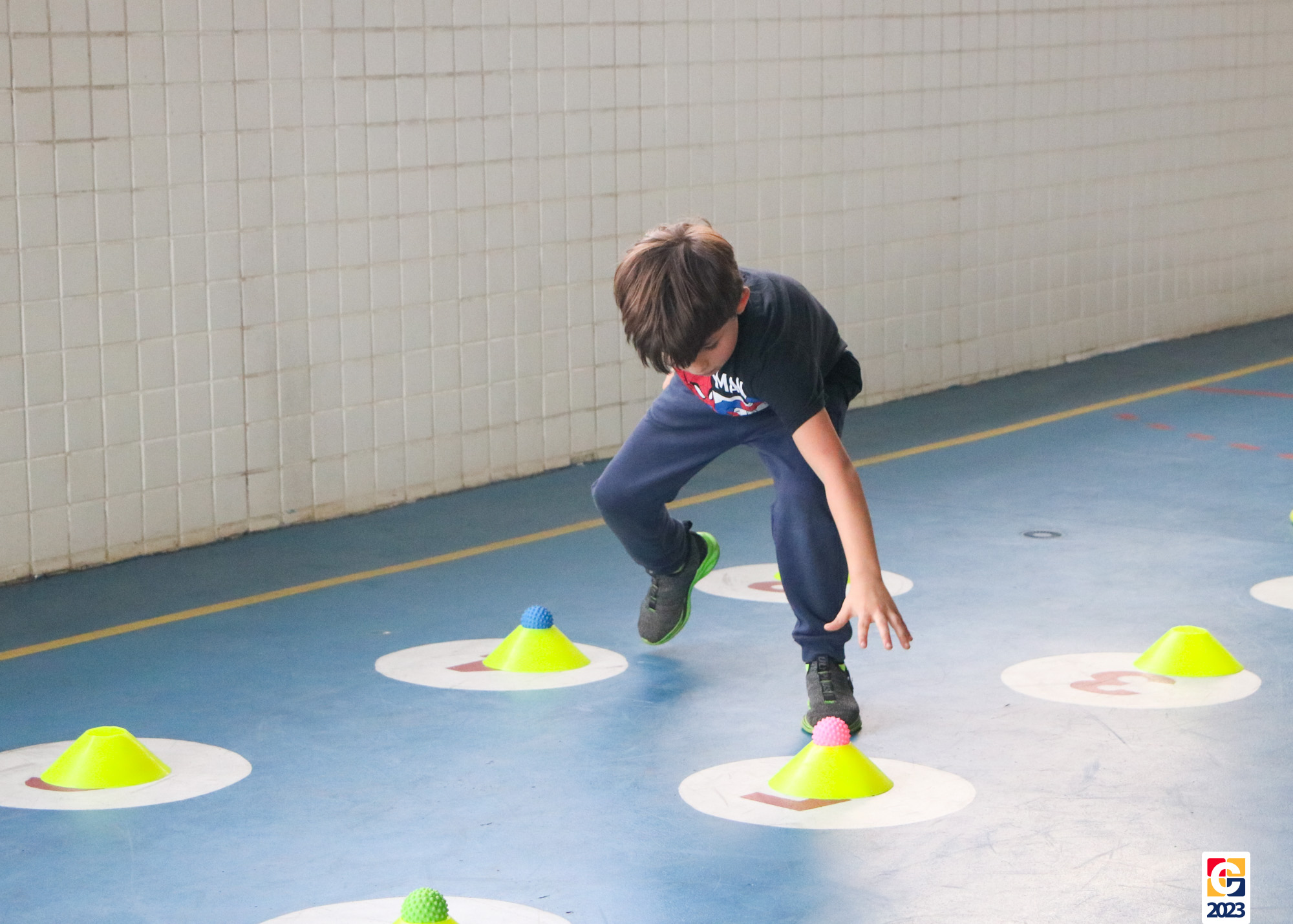 Pertinho dali, crianças dos Anos Iniciais continuaram a produzir os figurinos para a releitura de Saltimbancos, obra de Chico Buarque, e também puderam aproveitar momentos de diversão com o circuito preparado pelas próprias professoras; brincaram de futebol, pular corda e bambolê. ⚽