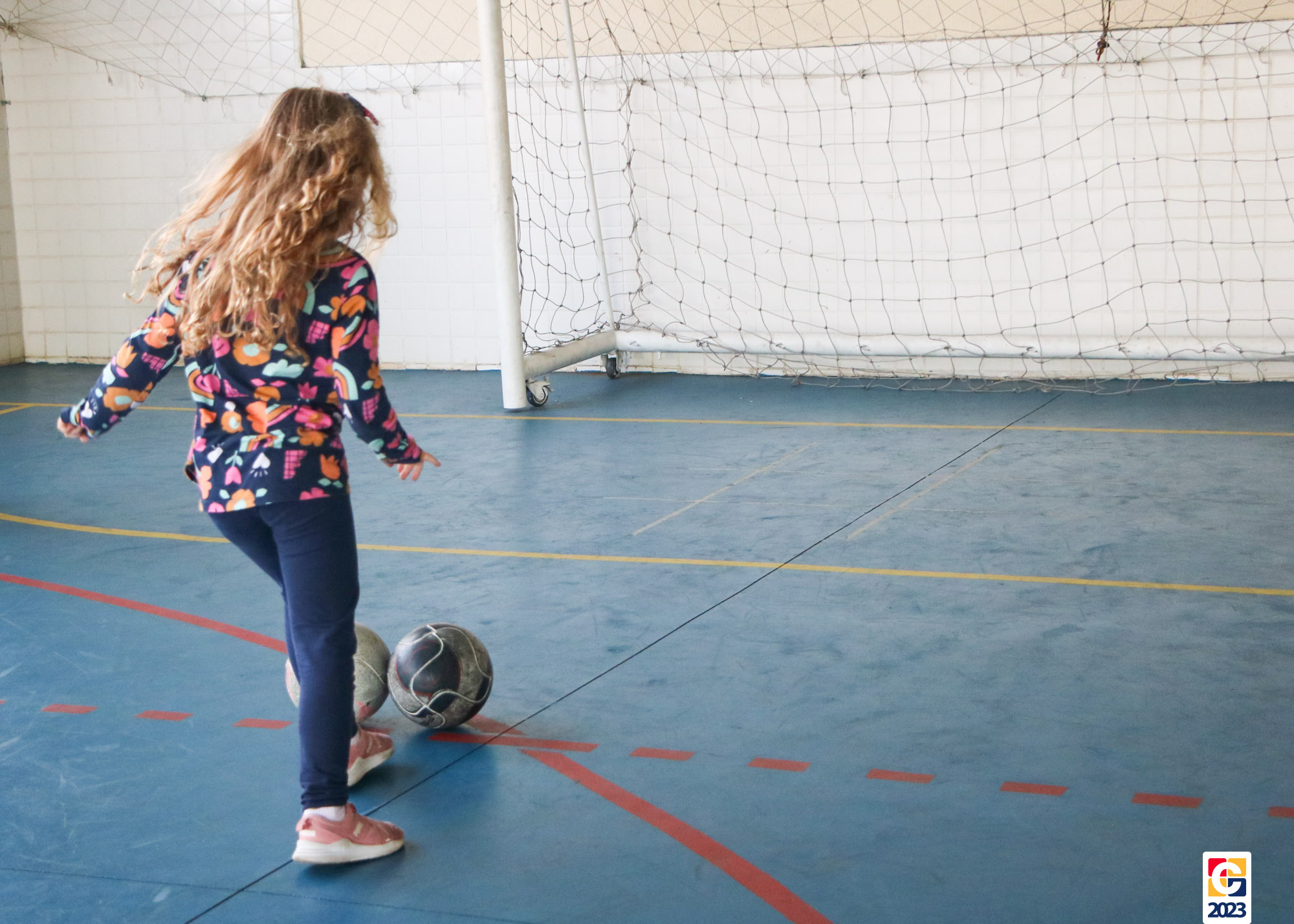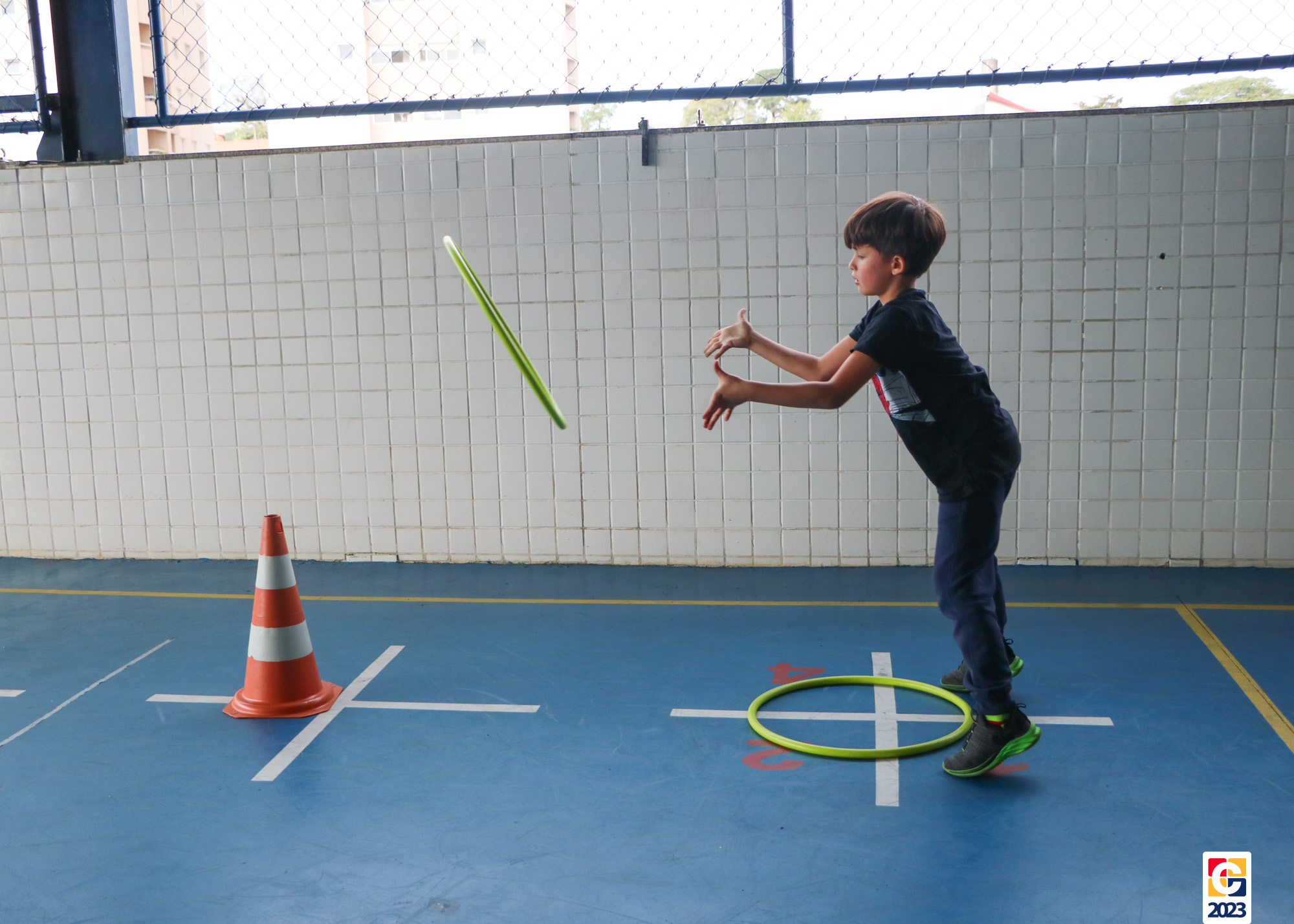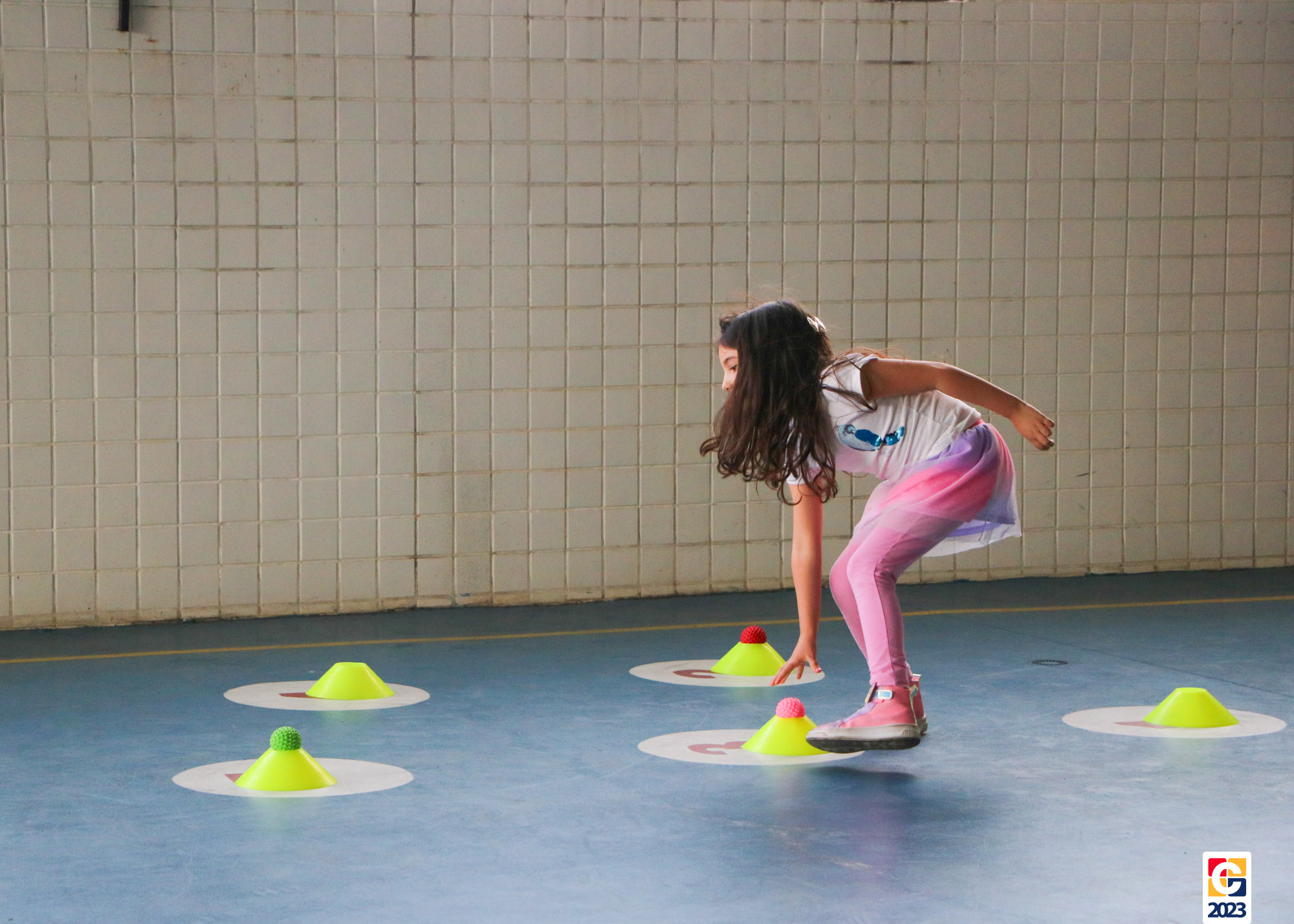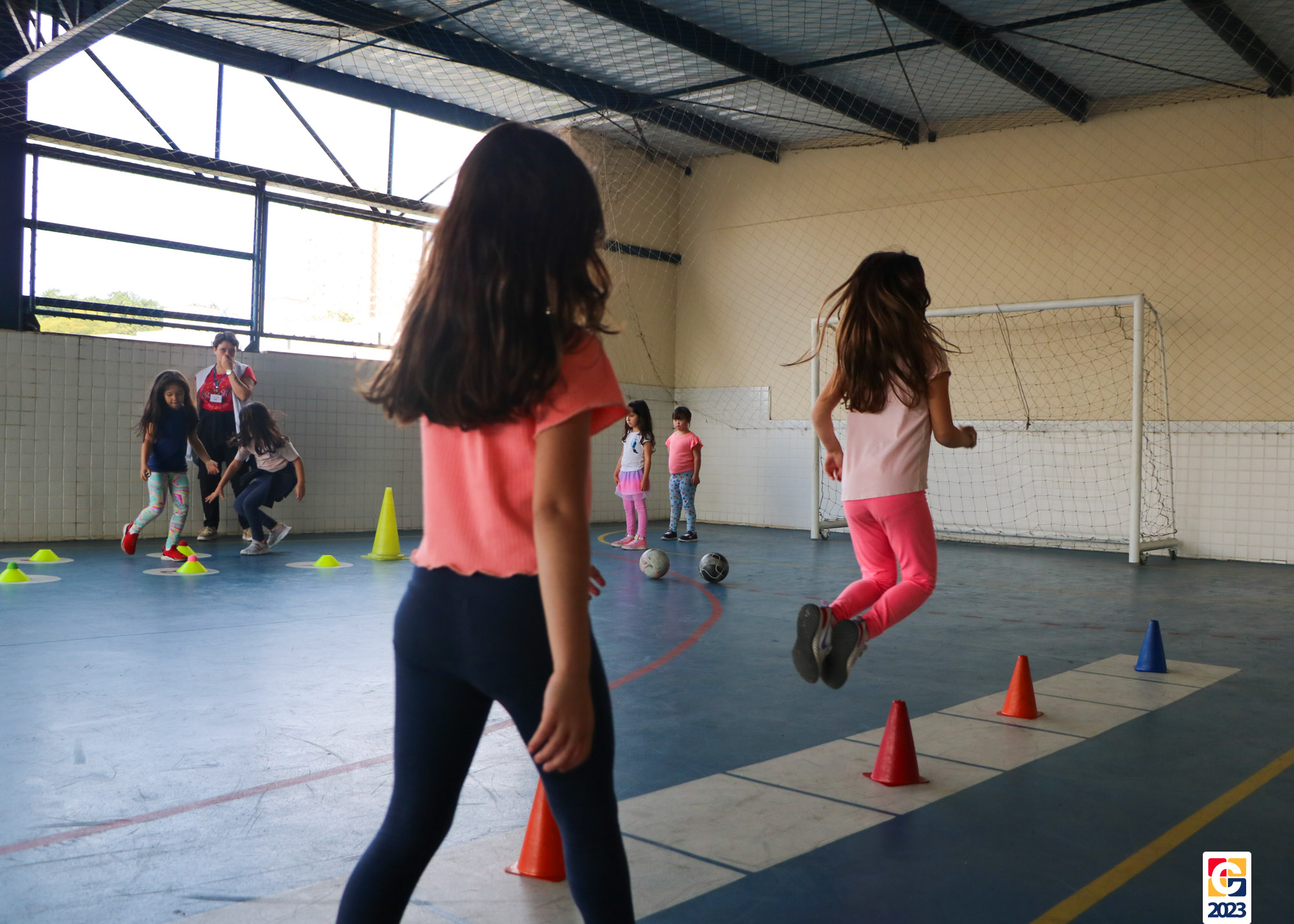 Pertinho dali, crianças dos Anos Iniciais continuaram a produzir os figurinos para a releitura de Saltimbancos, obra de Chico Buarque, e também puderam aproveitar momentos de diversão com o circuito preparado pelas próprias professoras; brincaram de futebol, pular corda e bambolê. ⚽