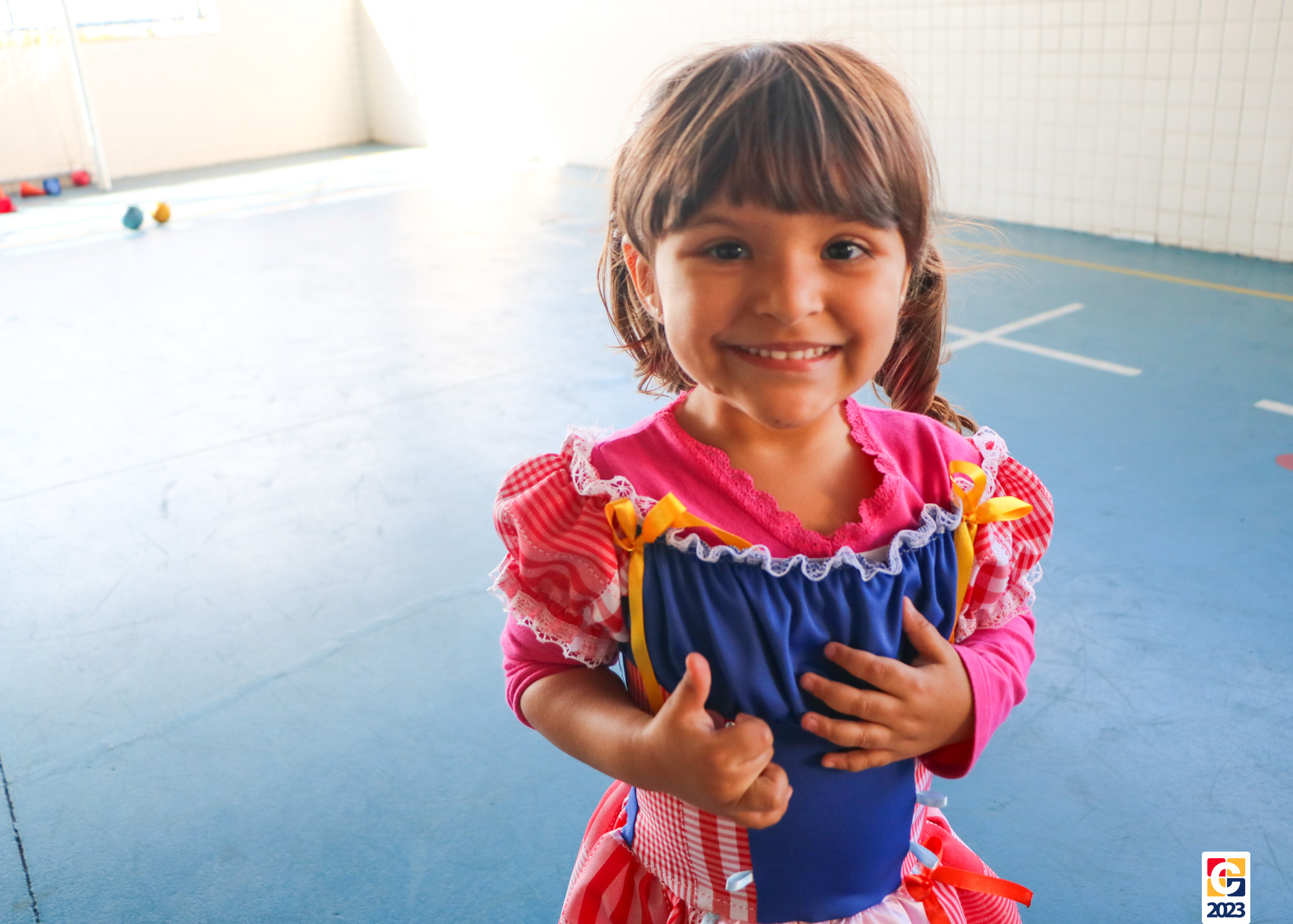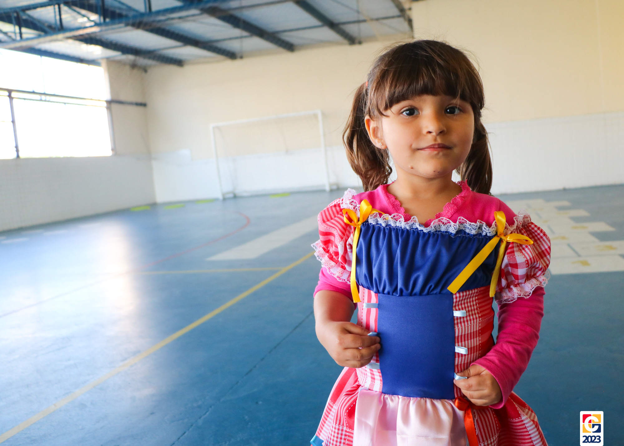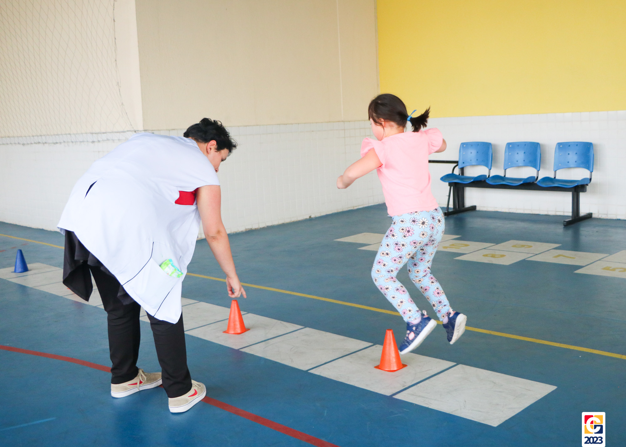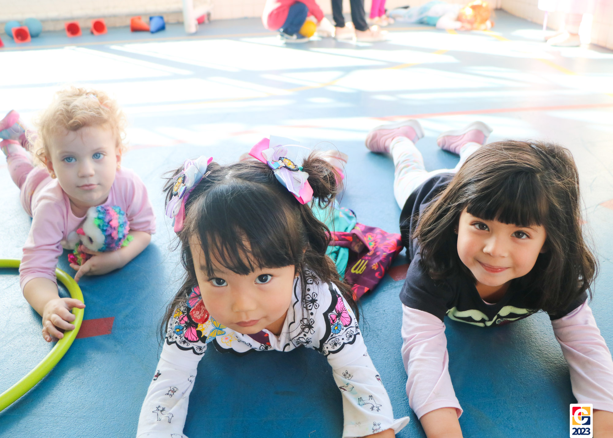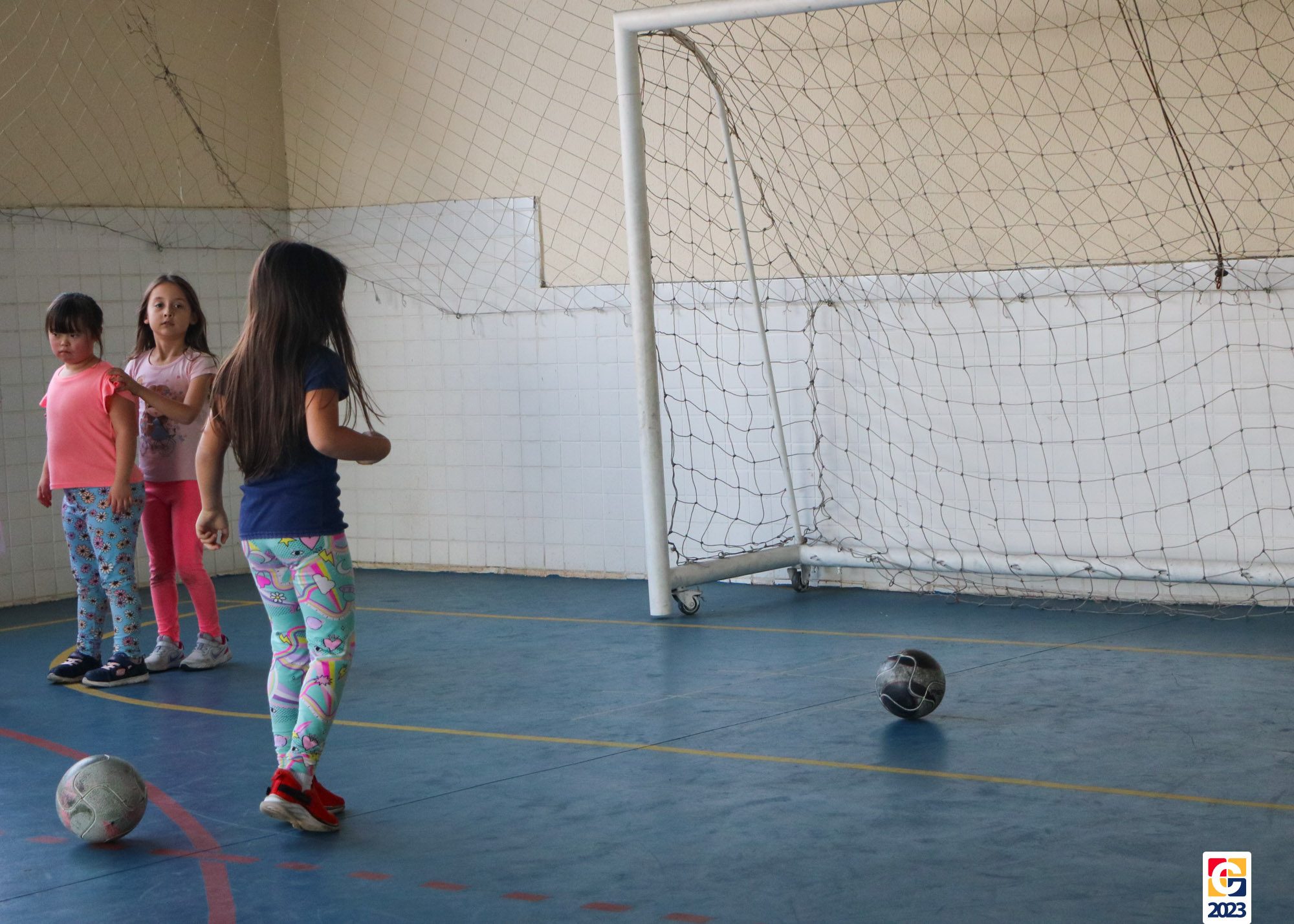 Pertinho dali, crianças dos Anos Iniciais continuaram a produzir os figurinos para a releitura de Saltimbancos, obra de Chico Buarque, e também puderam aproveitar momentos de diversão com o circuito preparado pelas próprias professoras; brincaram de futebol, pular corda e bambolê. ⚽