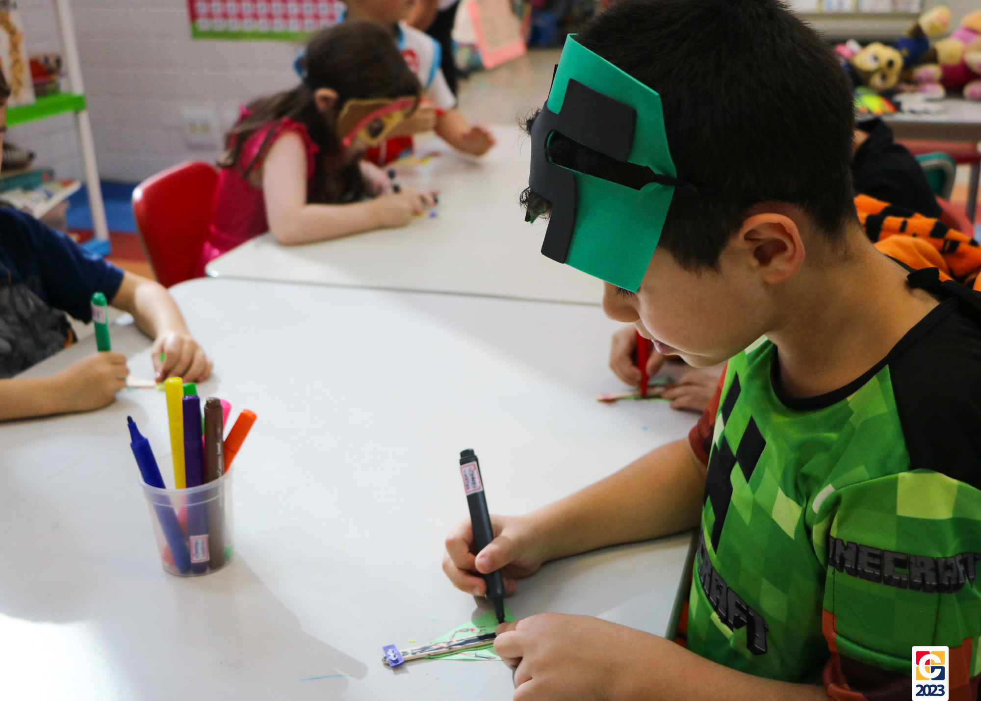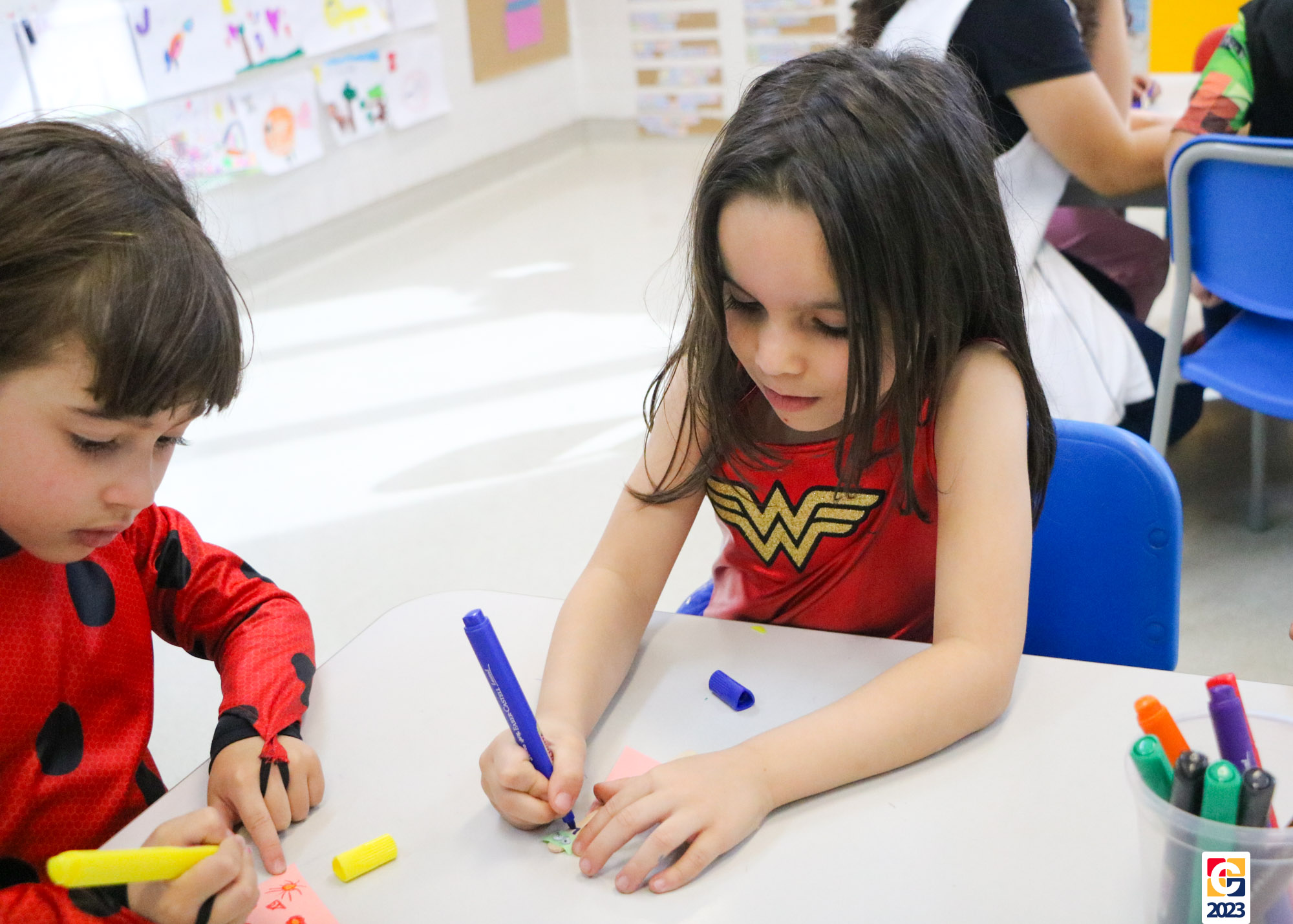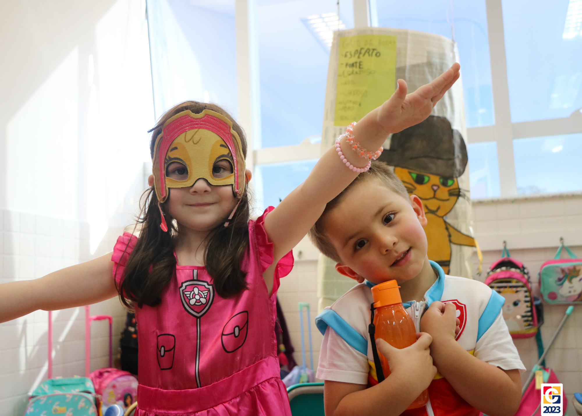 A segunda semana do Curso de Férias começou da maneira mais aconchegante possível, com os pequenos em roupinhas de dormir. Na Educação Infantil, tanto as crianças quanto as professoras estavam com seus melhores pijamas para uma proveitosa tarde com filmes e pipocas. Noutro dia, o tema foi fantasia: dentre outros, circularam a encantadora Mirabel e Skye, a patrulheira canina. As crianças ainda confeccionaram os próprios heróis com palitos de sorvete e cartolina, pintando os materiais com as cores favoritas e decorando tudo, cada um do seu jeitinho. 🎨