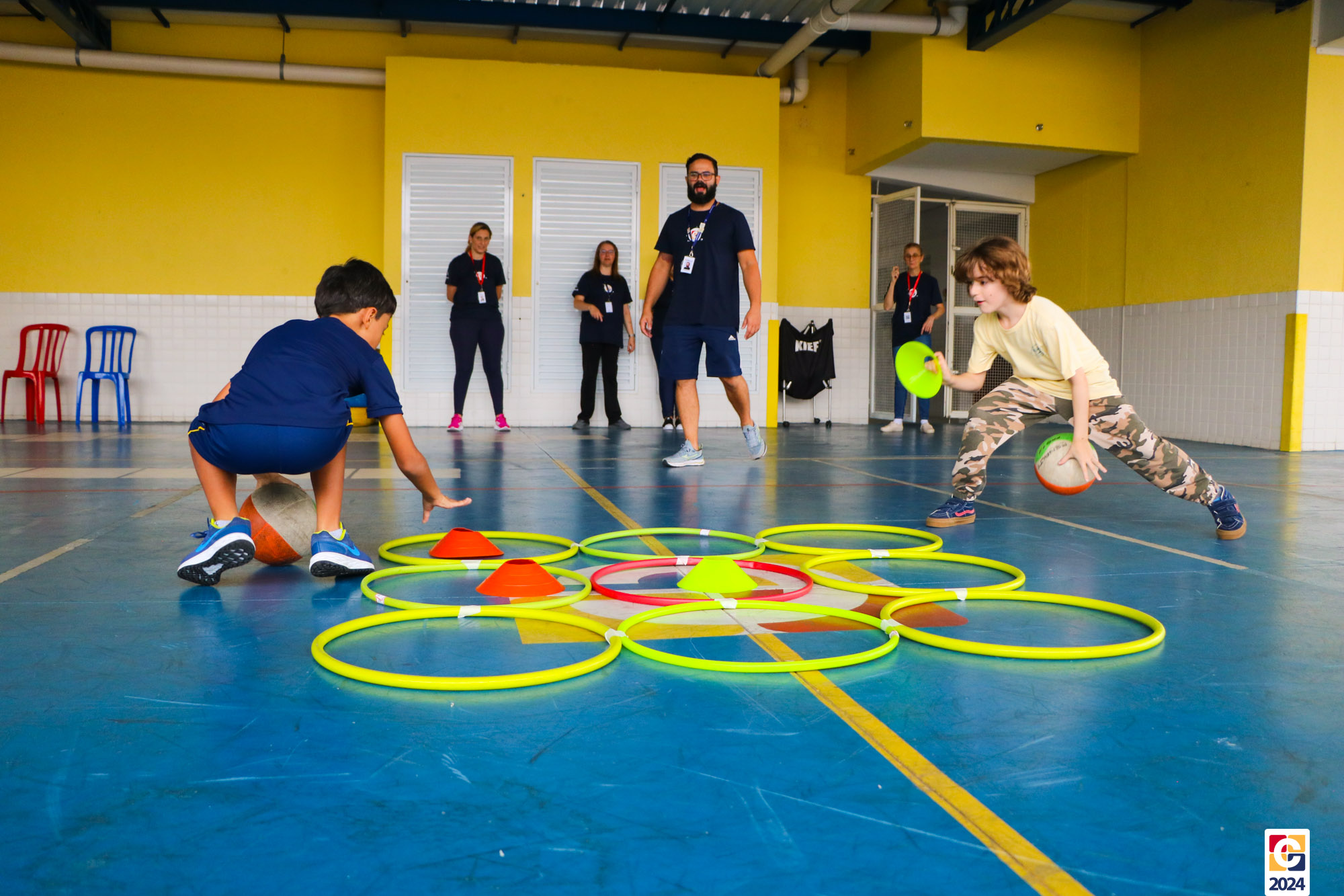 No último sábado (3), as quadras do Colégio Carbonell se transformaram em um cenário de alegria e integração para crianças dos Anos Iniciais do Ensino Fundamental. Em uma tarde especial, professores e o Time de Esportes uniram forças para organizar atividades dinâmicas e cheias de criatividade. Utilizando diversos materiais esportivos, todos curtiram um ambiente onde a diversão e o aprendizado caminharam lado a lado, com destaque para a importância do movimento e do trabalho em equipe entre nossos jovens estudantes. 🏃🏻