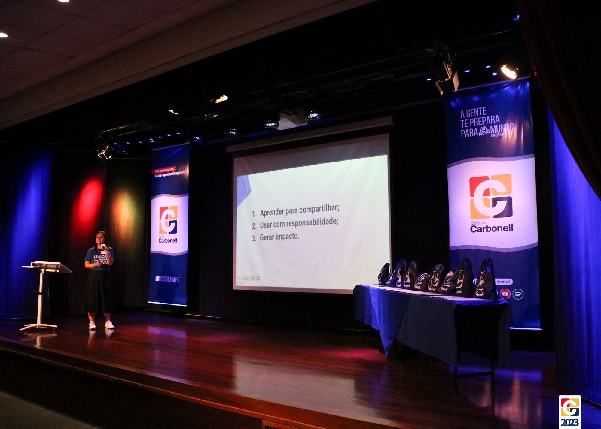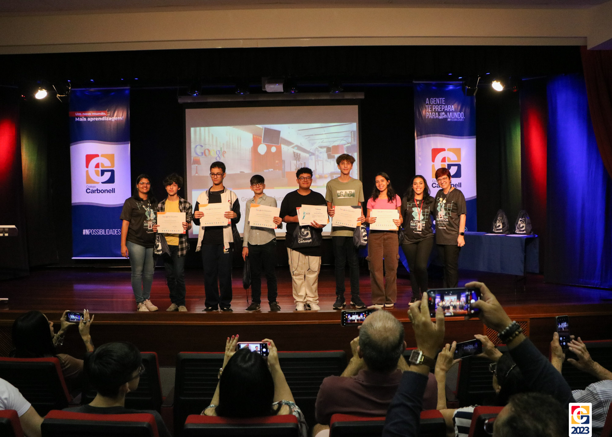 Resgatamos conteúdo inédito com fotos da finalização do programa em que nossos jovens passaram por um processo de formação com duração de sete semanas no Carbonell. Neste período, escolheram “Objetivos de Desenvolvimento Sustentável“, da Organização das Nações Unidas (ONU), como tema norteador e resolveram problemas utilizando as ferramentas do Google. Ao fim da experiência, seus familiares puderam visitá-los num evento que celebrou o fim da experiência, com entrega dos certificados no palco do Teatro Oswaldo Mazoni. 👪