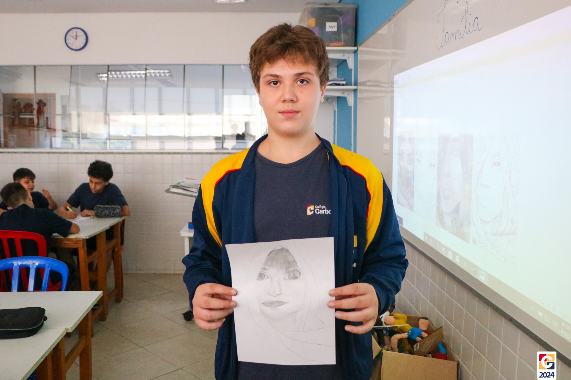 Na última quarta-feira (10), sob orientação da talentosa professora Gilda Lima, estudantes de 7º ano foram imersos no mundo dos autorretratos e dos desenhos realistas com texturas. Muita inspiração e criatividade tomaram conta de uma aula de Artes inesquecível. 🎨