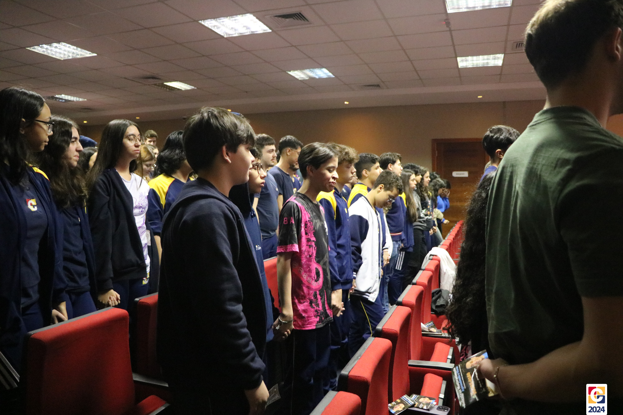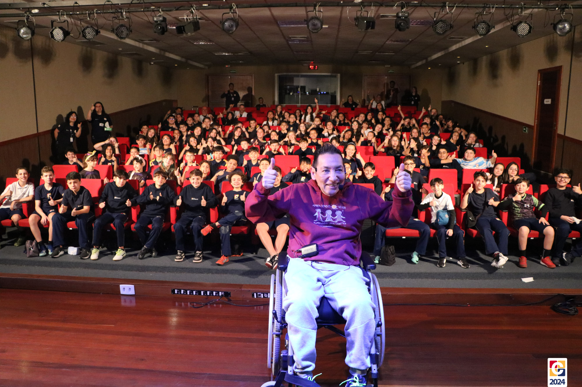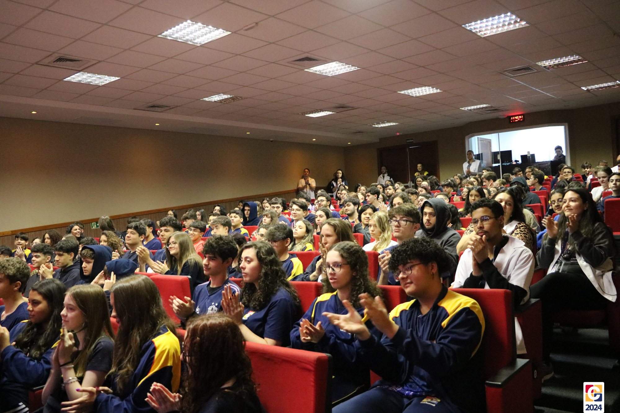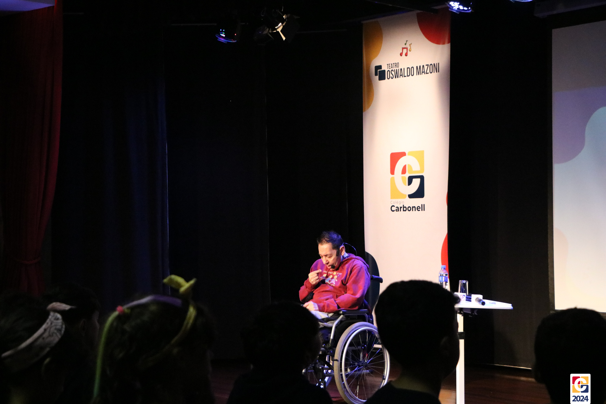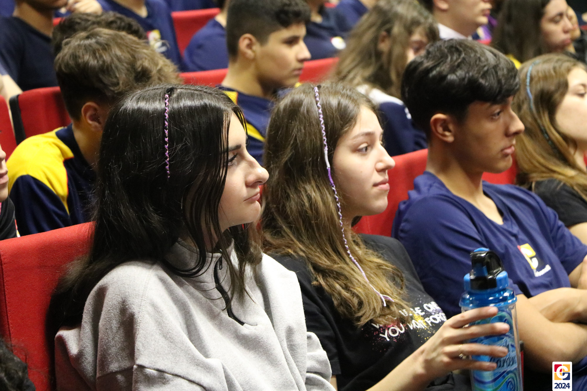 Hoje (09), o Teatro Oswaldo Mazoni do Colégio Carbonell recebeu uma palestra inspiradora para os estudantes dos Anos Finais e Ensino Médio. Luiz Eduardo Boudakian, o palestrante convidado, compartilhou sua trajetória de vida e deixou uma marca profunda em todos os presentes. 📣