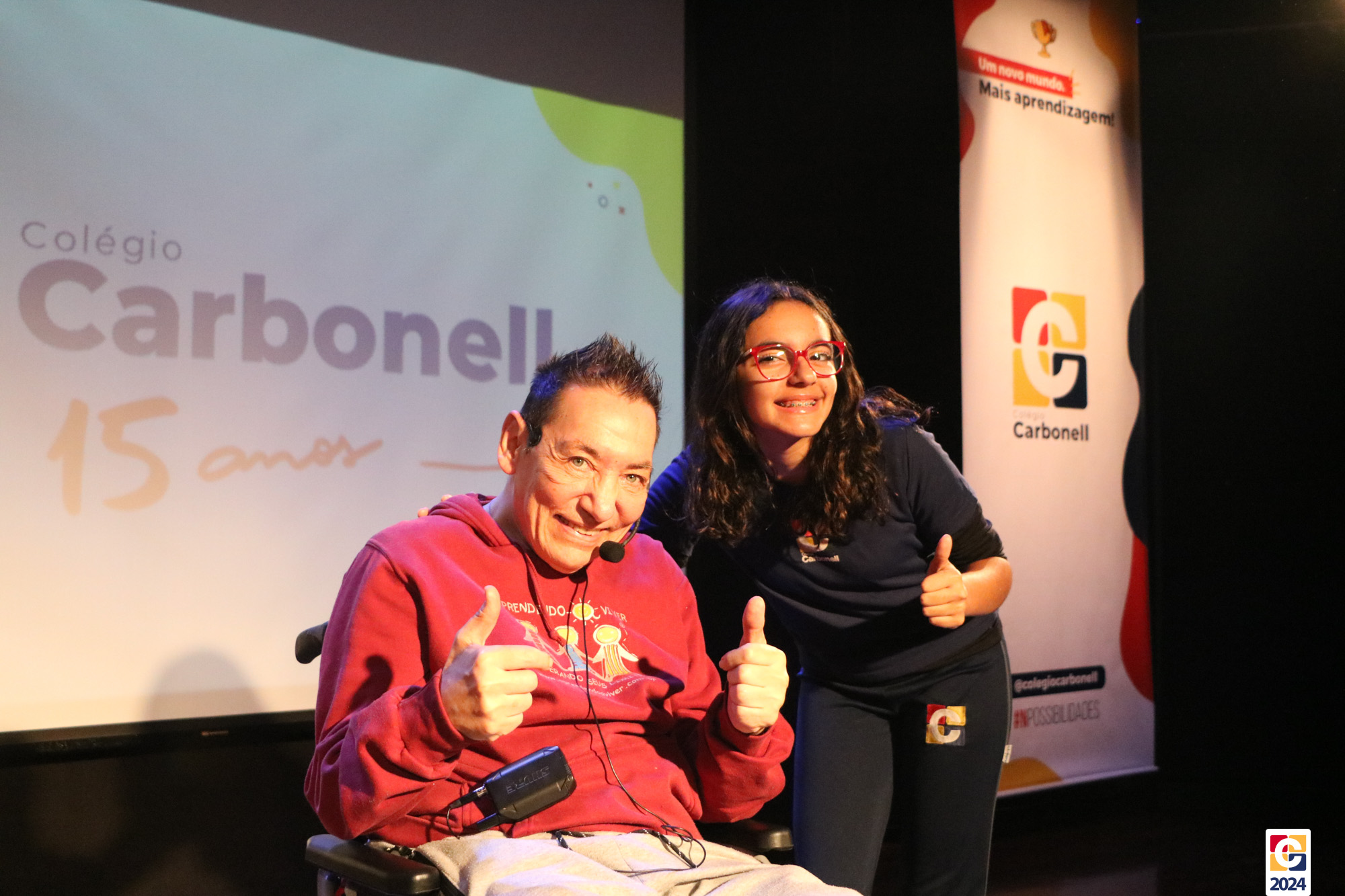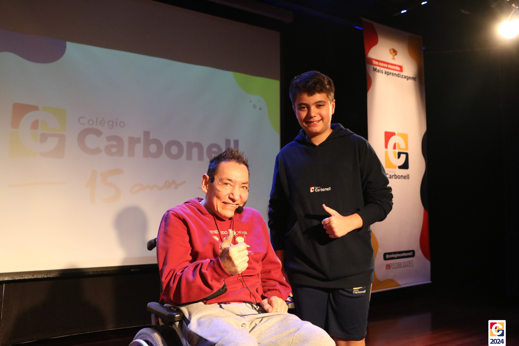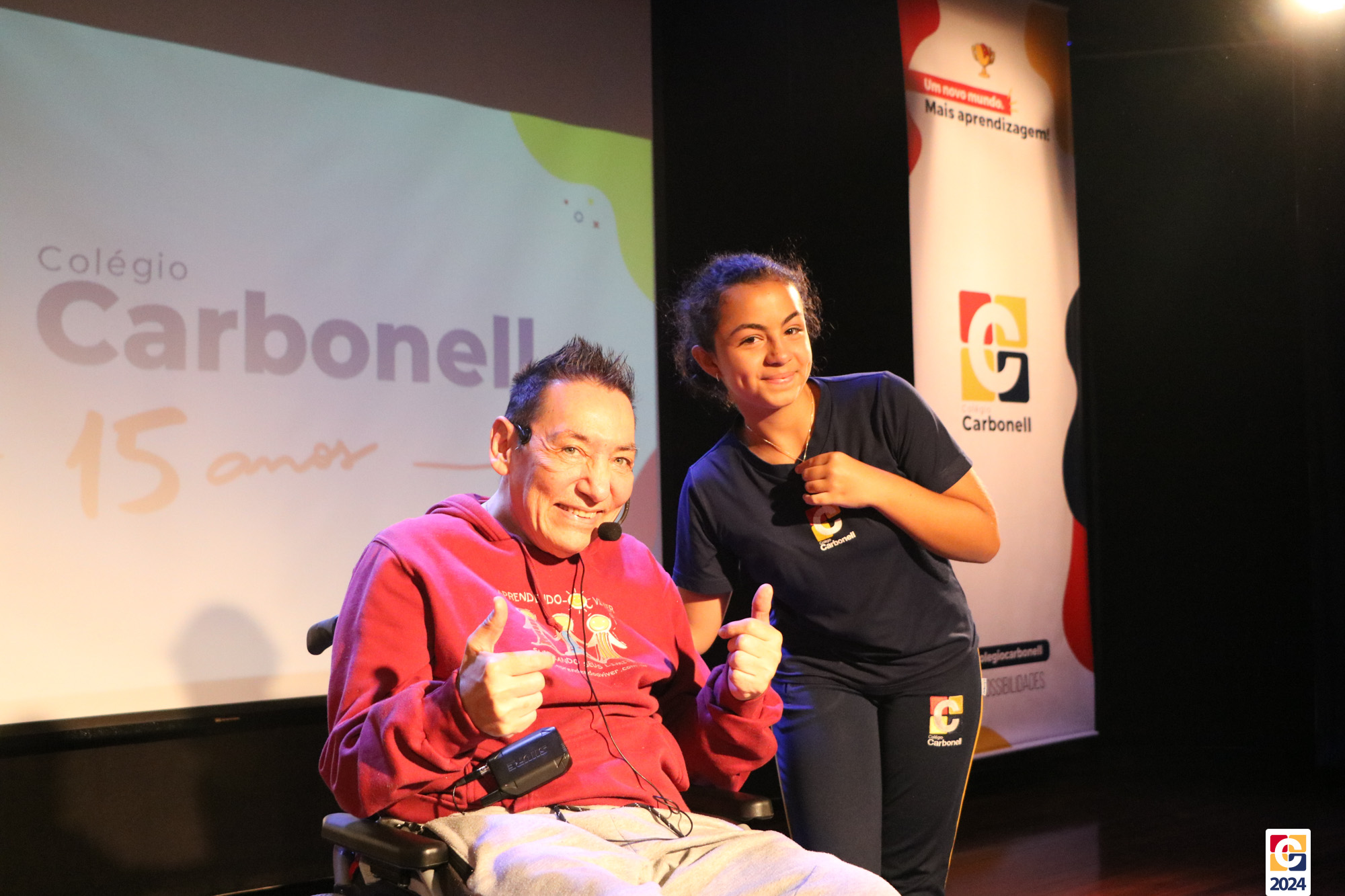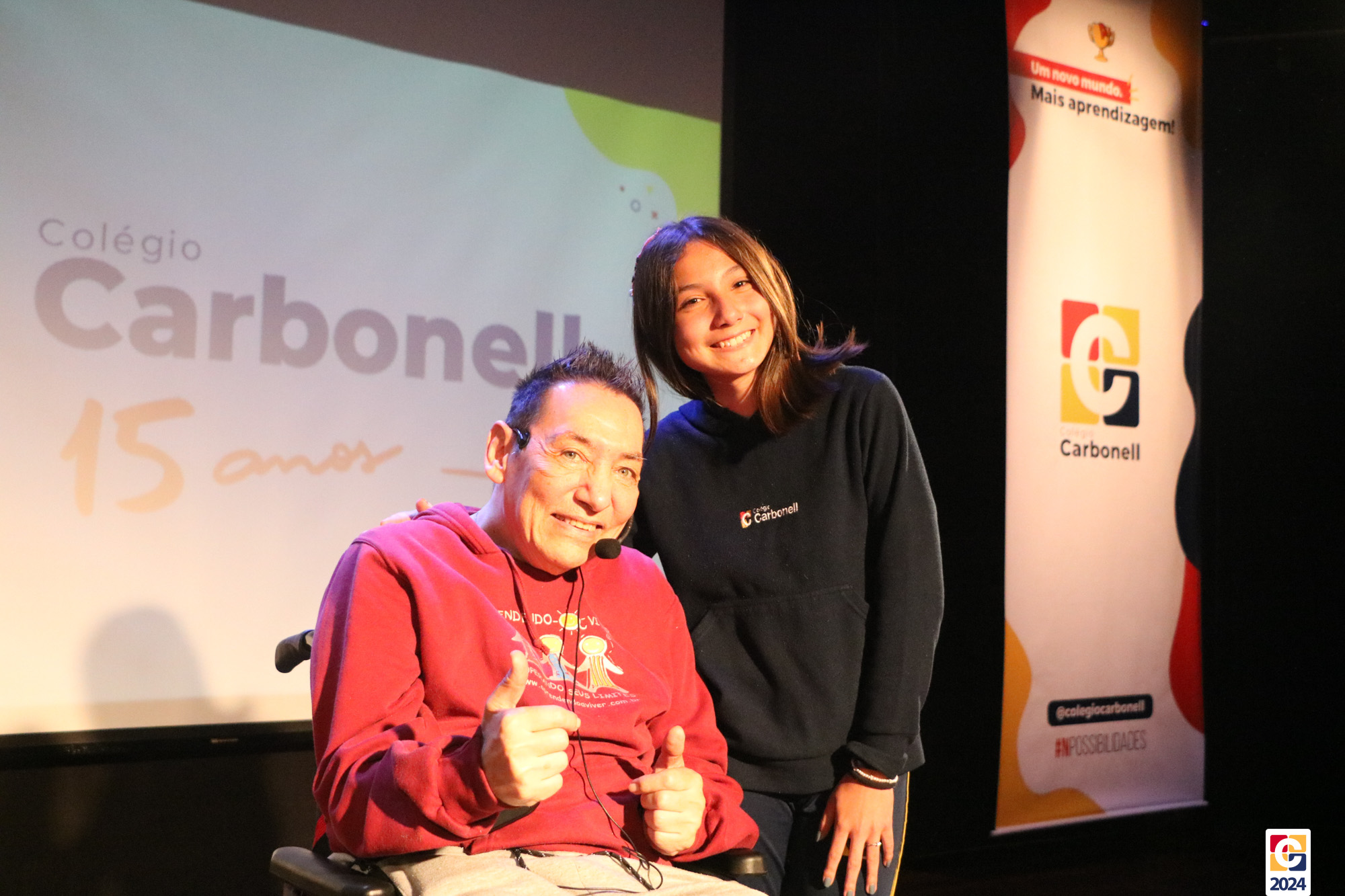 A palestra fez parte de um novo projeto do Colégio Carbonell, o ‘’Inclusão em ação: Diversidade que transforma’’, que visa promover a diversidade, inclusão, superação, objetivos de vida, sonhos e prevenção contra o bullying. A atividade foi um marco para fortalecer esses valores e inspirar nossos estudantes a se colocarem no lugar do outro, cultivando a empatia e o respeito mútuo. 🤗