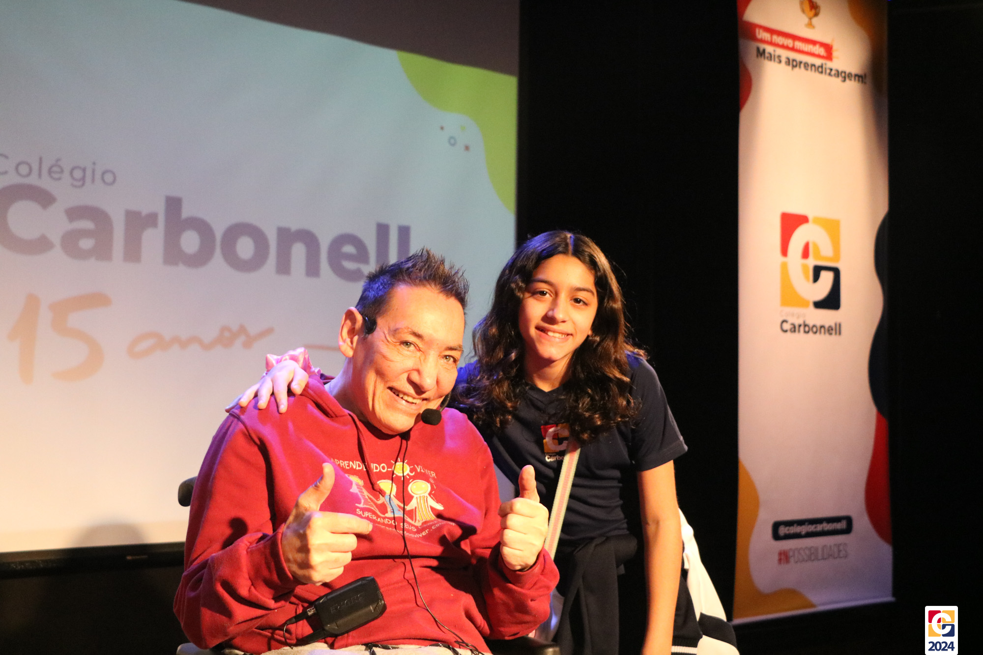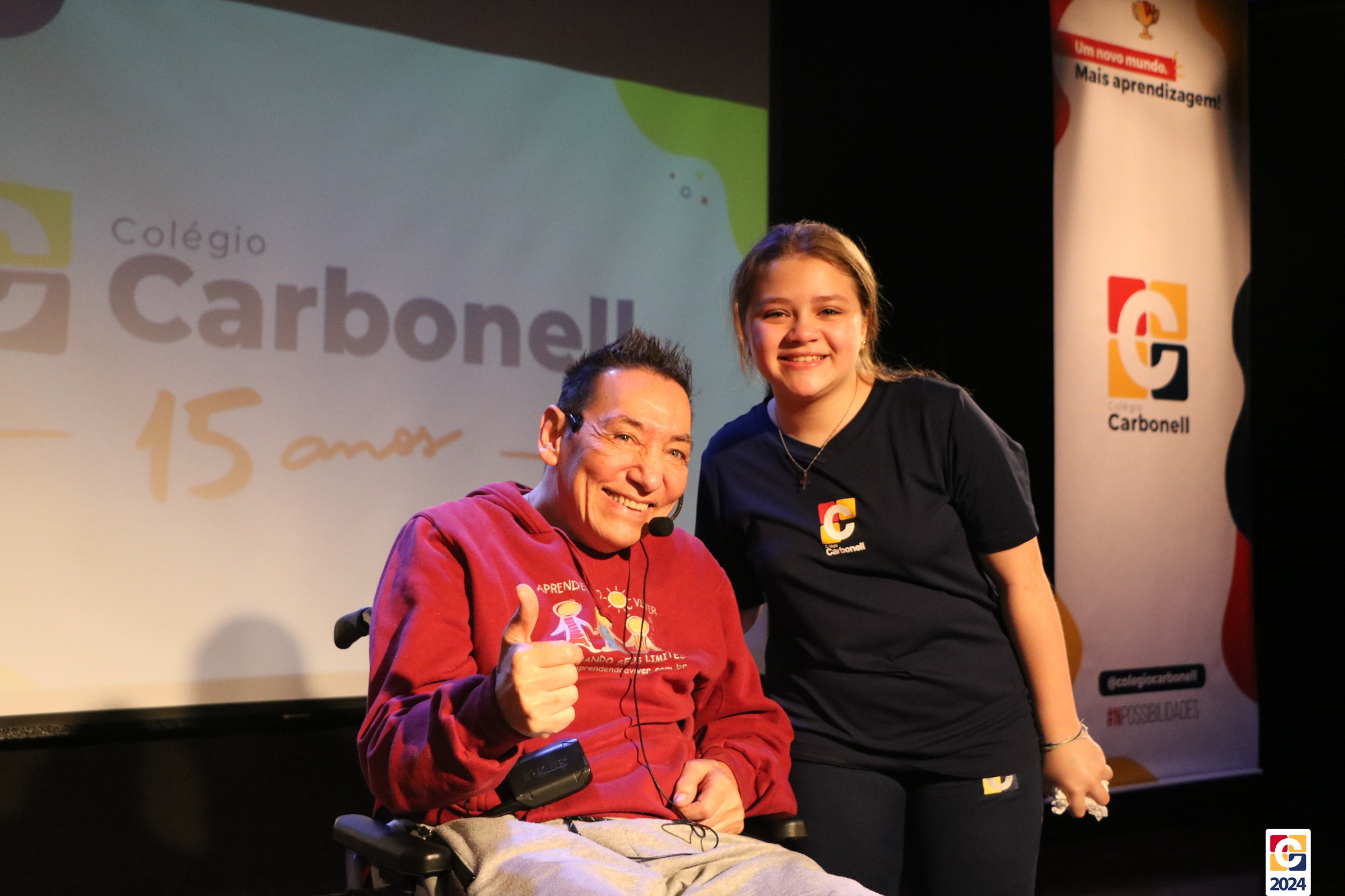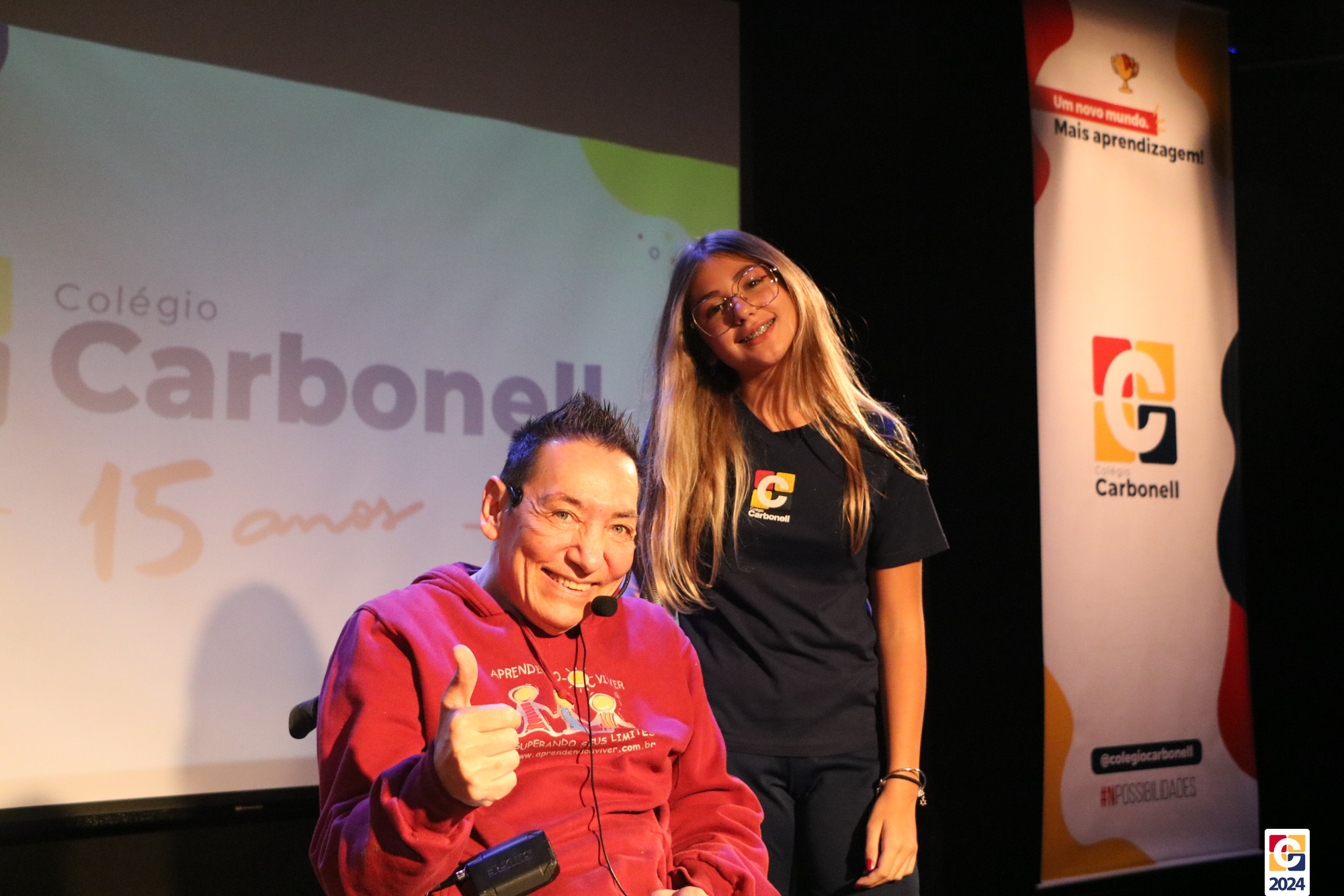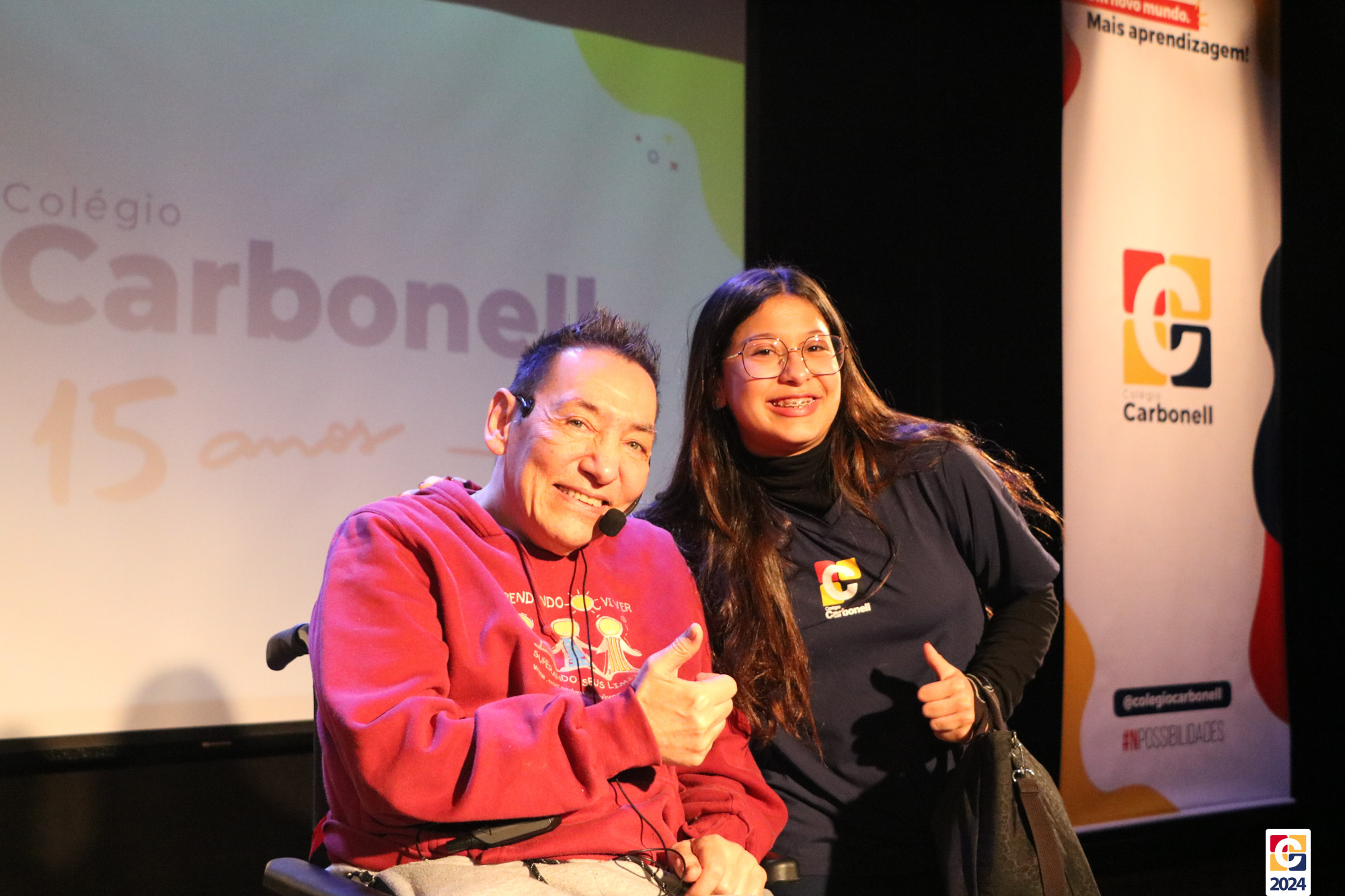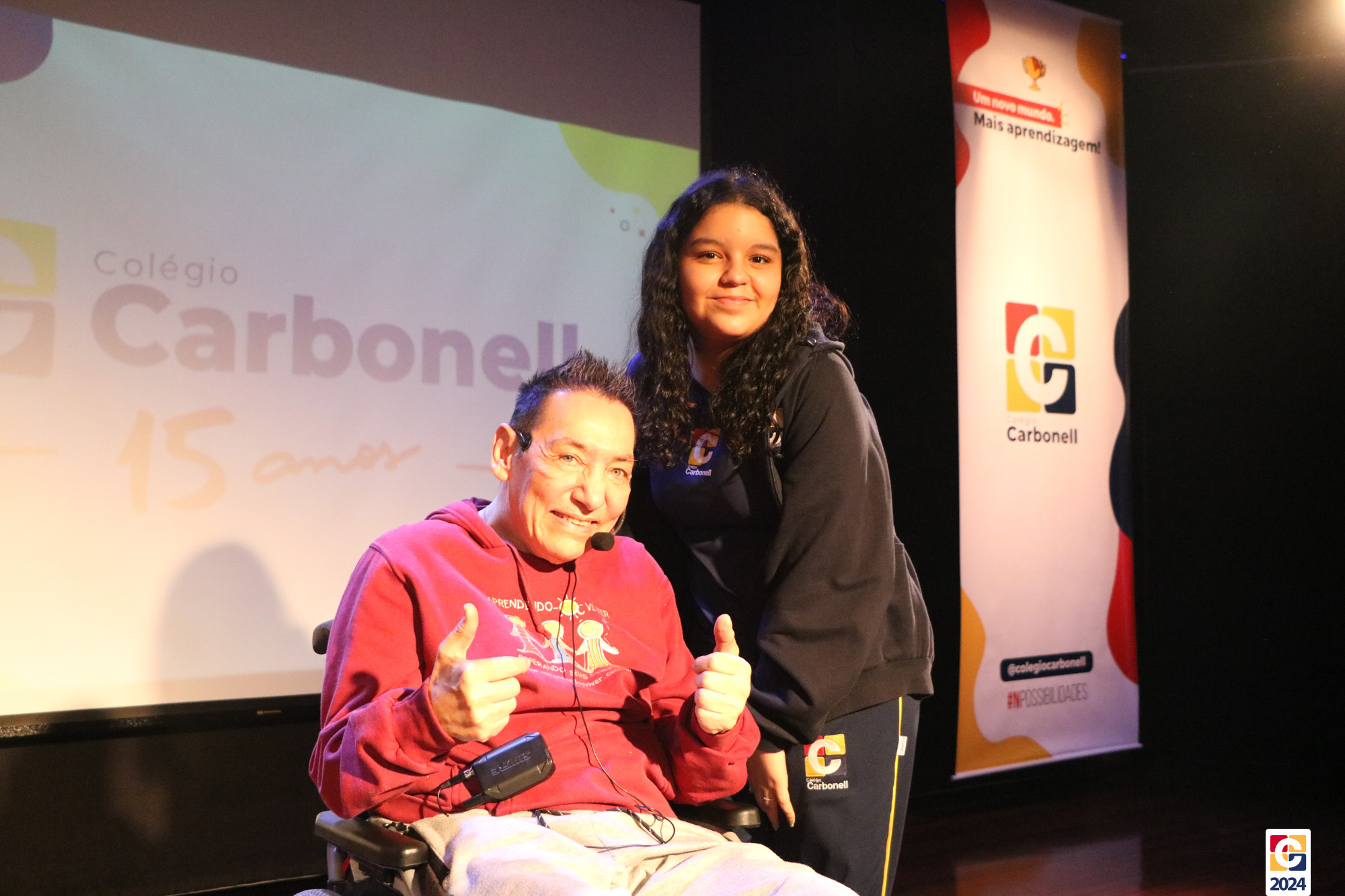 A palestra fez parte de um novo projeto do Colégio Carbonell, o ‘’Inclusão em ação: Diversidade que transforma’’, que visa promover a diversidade, inclusão, superação, objetivos de vida, sonhos e prevenção contra o bullying. A atividade foi um marco para fortalecer esses valores e inspirar nossos estudantes a se colocarem no lugar do outro, cultivando a empatia e o respeito mútuo. 🤗