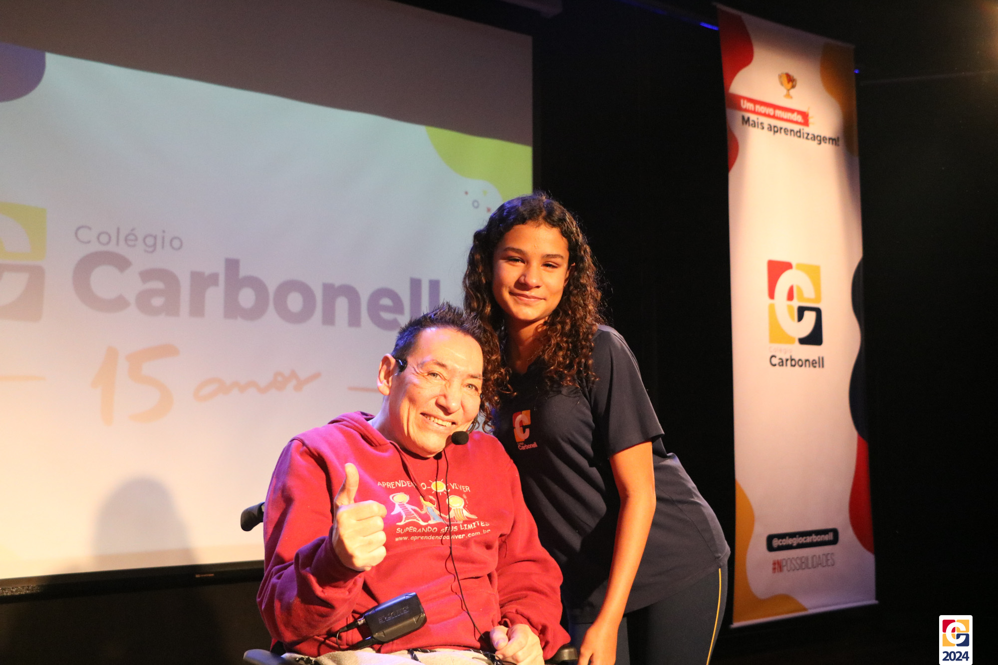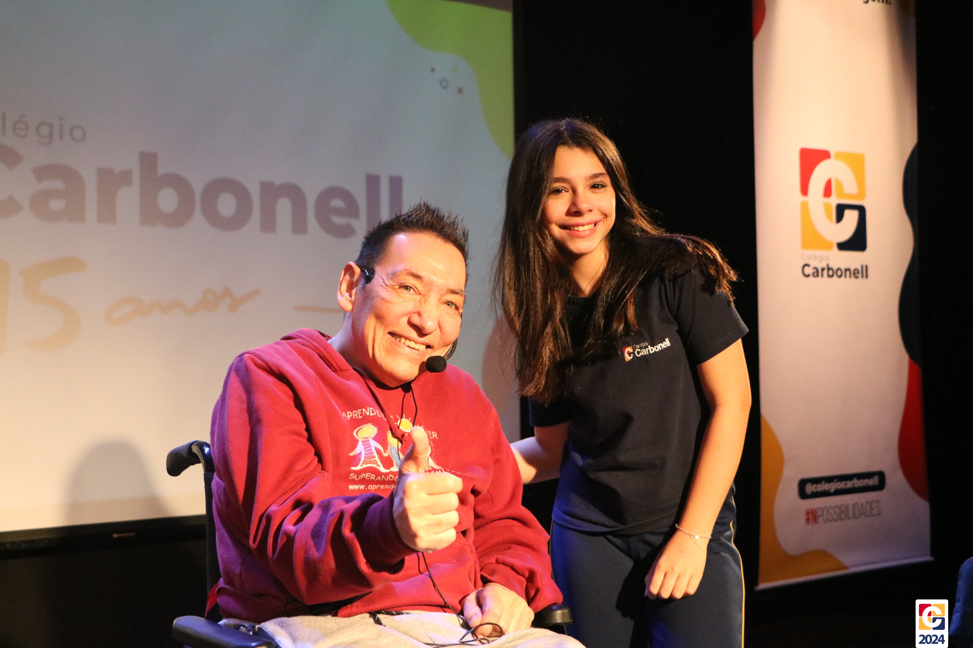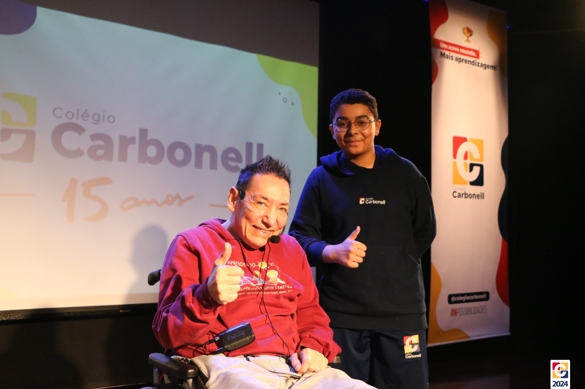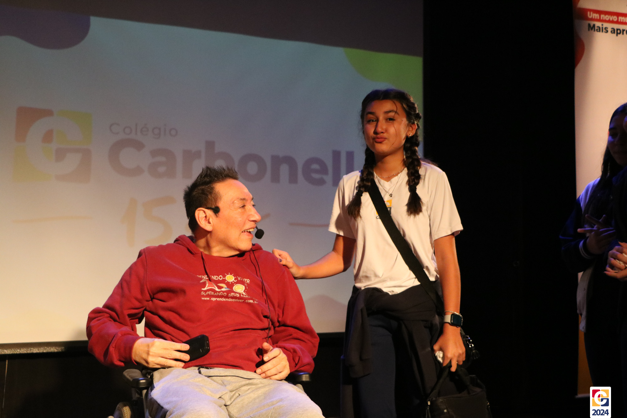 A palestra fez parte de um novo projeto do Colégio Carbonell, o ‘’Inclusão em ação: Diversidade que transforma’’, que visa promover a diversidade, inclusão, superação, objetivos de vida, sonhos e prevenção contra o bullying. A atividade foi um marco para fortalecer esses valores e inspirar nossos estudantes a se colocarem no lugar do outro, cultivando a empatia e o respeito mútuo. 🤗