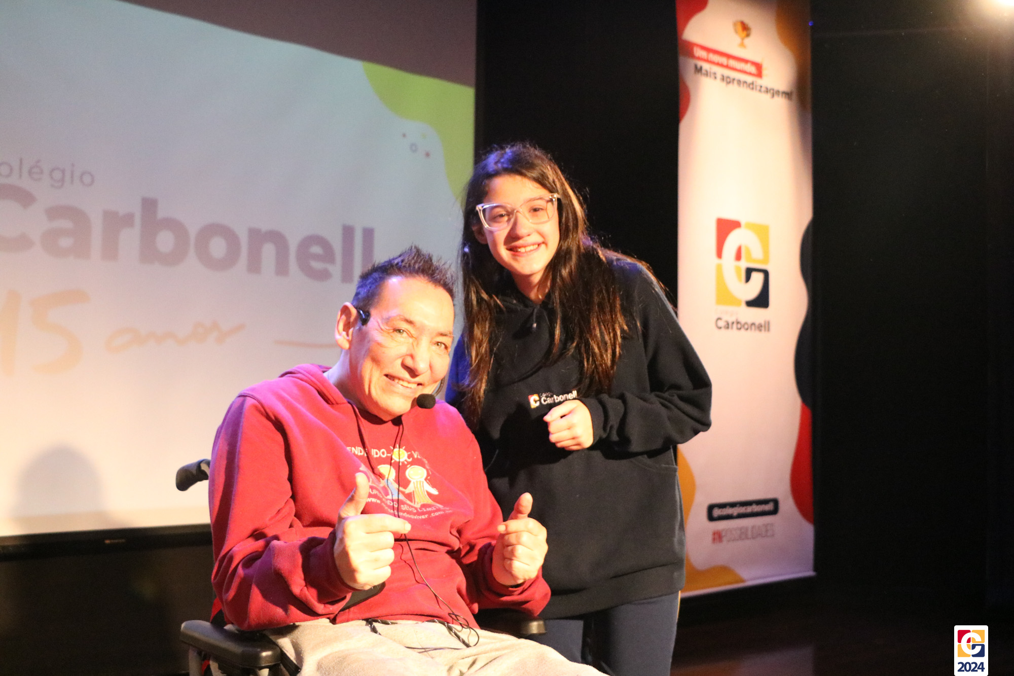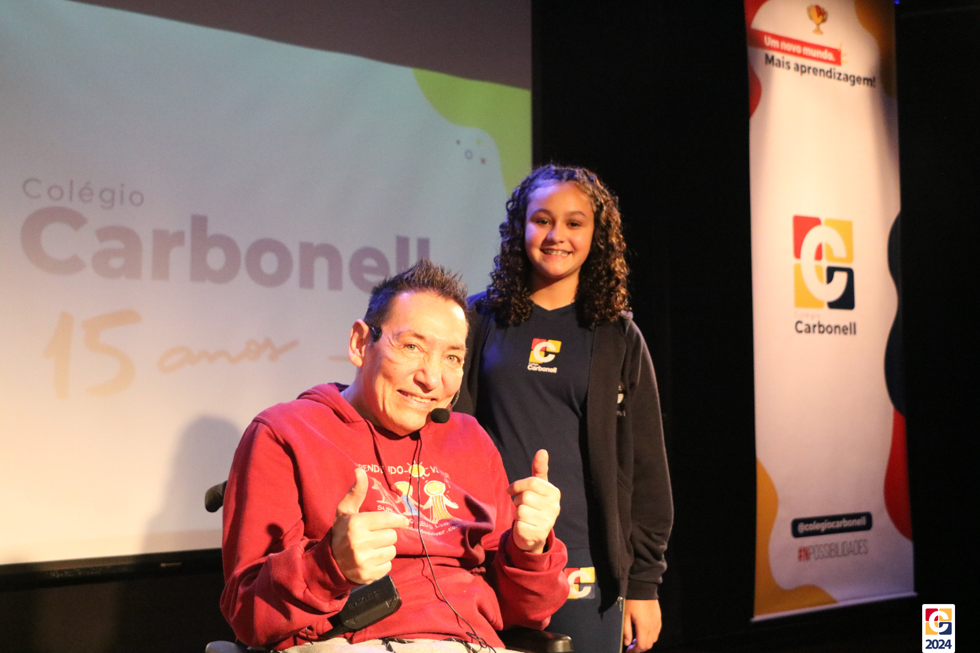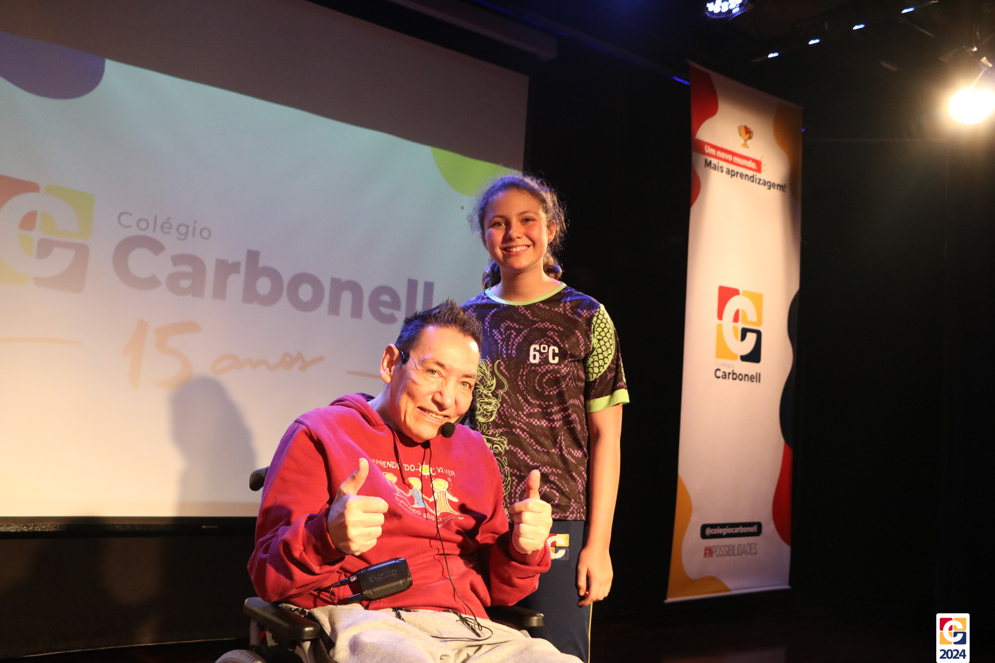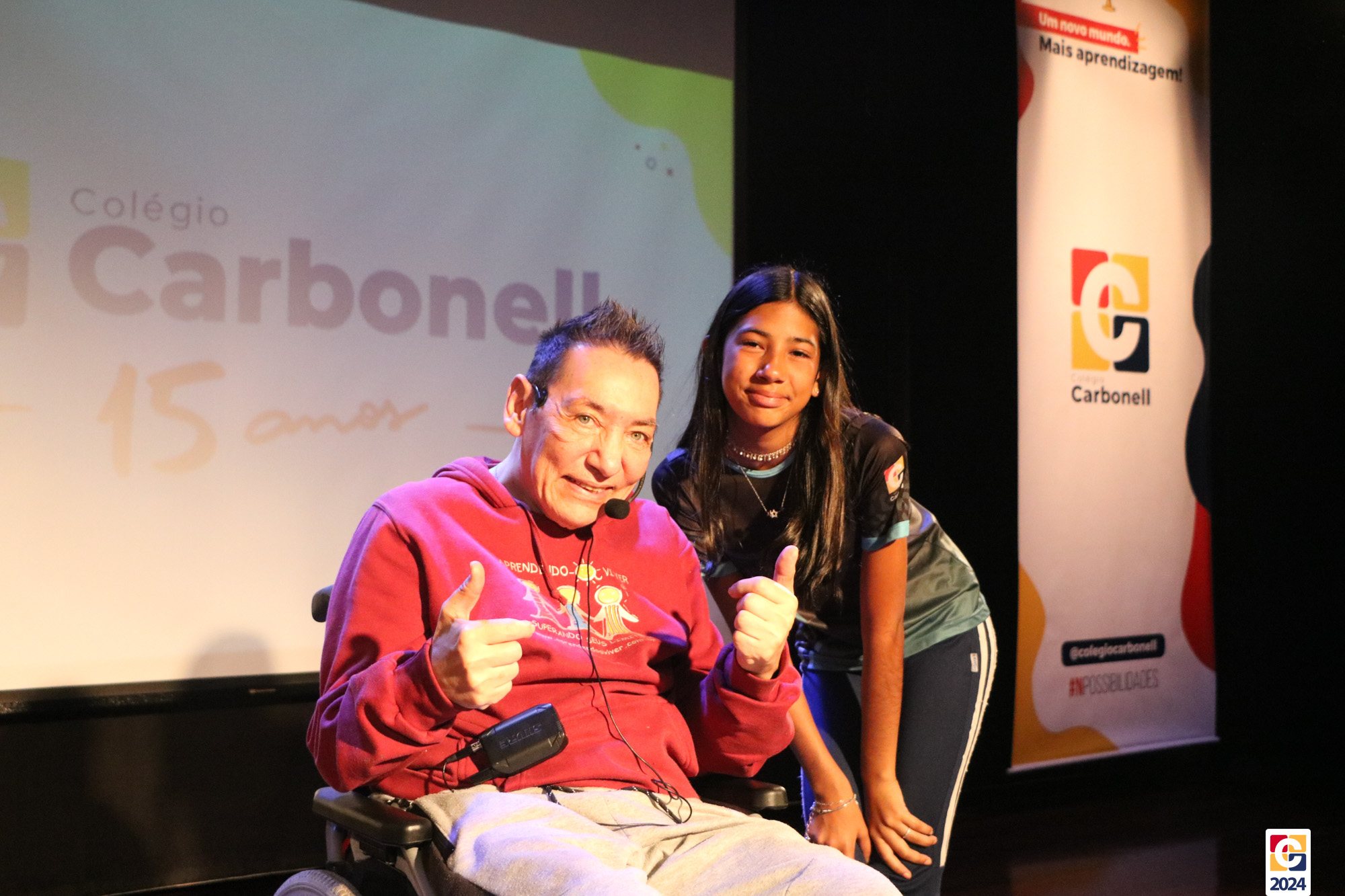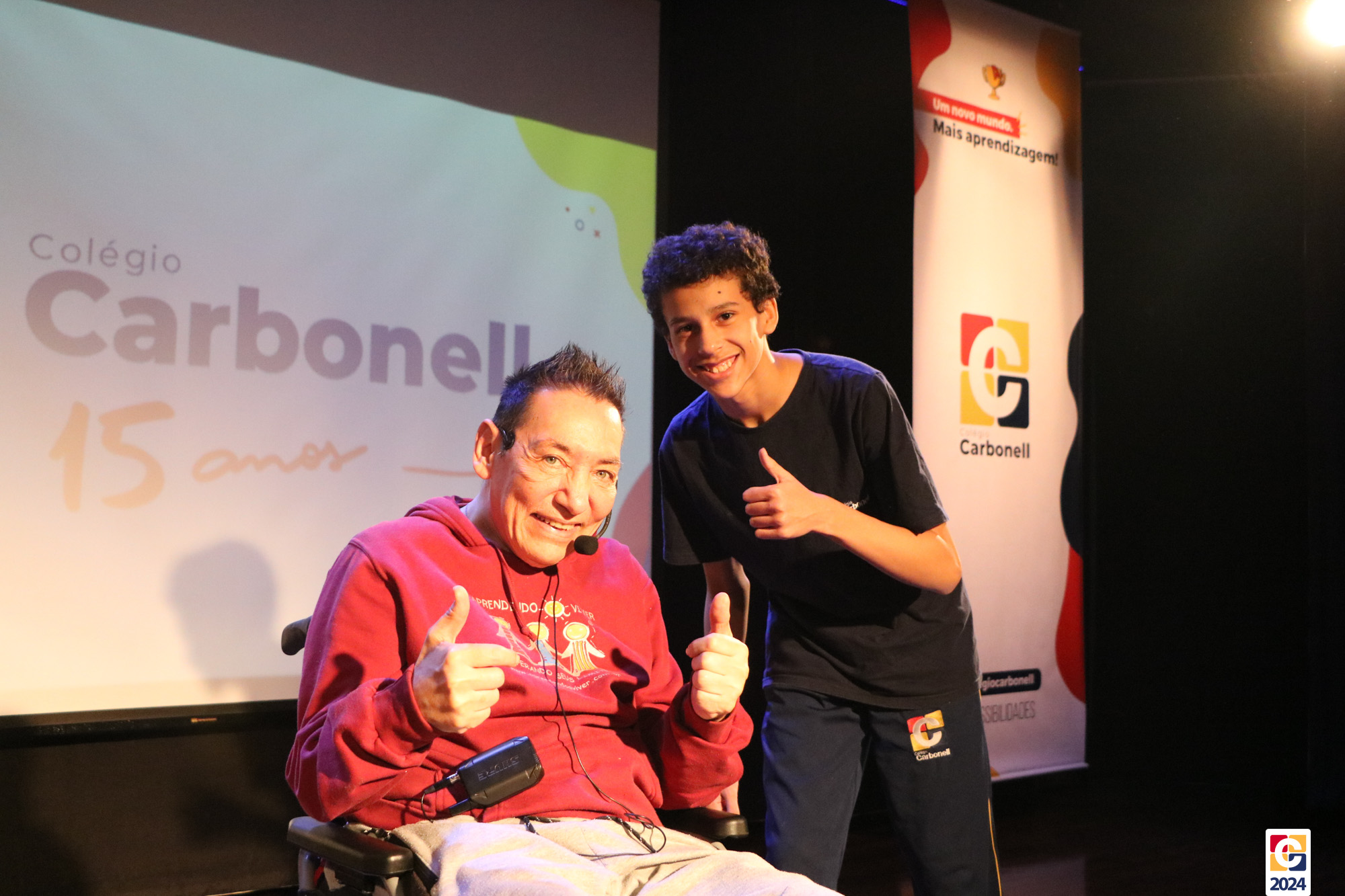 A palestra fez parte de um novo projeto do Colégio Carbonell, o ‘’Inclusão em ação: Diversidade que transforma’’, que visa promover a diversidade, inclusão, superação, objetivos de vida, sonhos e prevenção contra o bullying. A atividade foi um marco para fortalecer esses valores e inspirar nossos estudantes a se colocarem no lugar do outro, cultivando a empatia e o respeito mútuo. 🤗