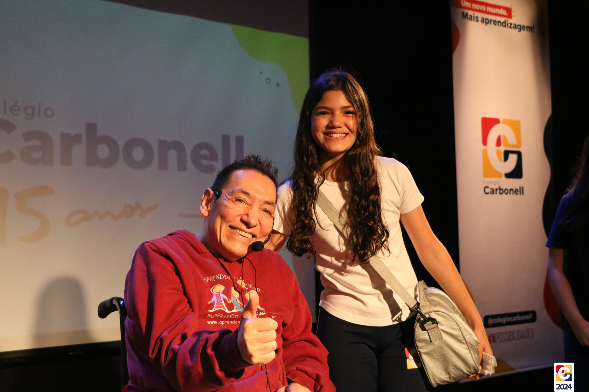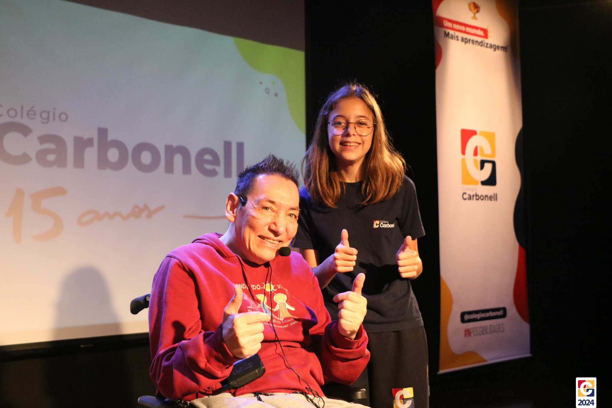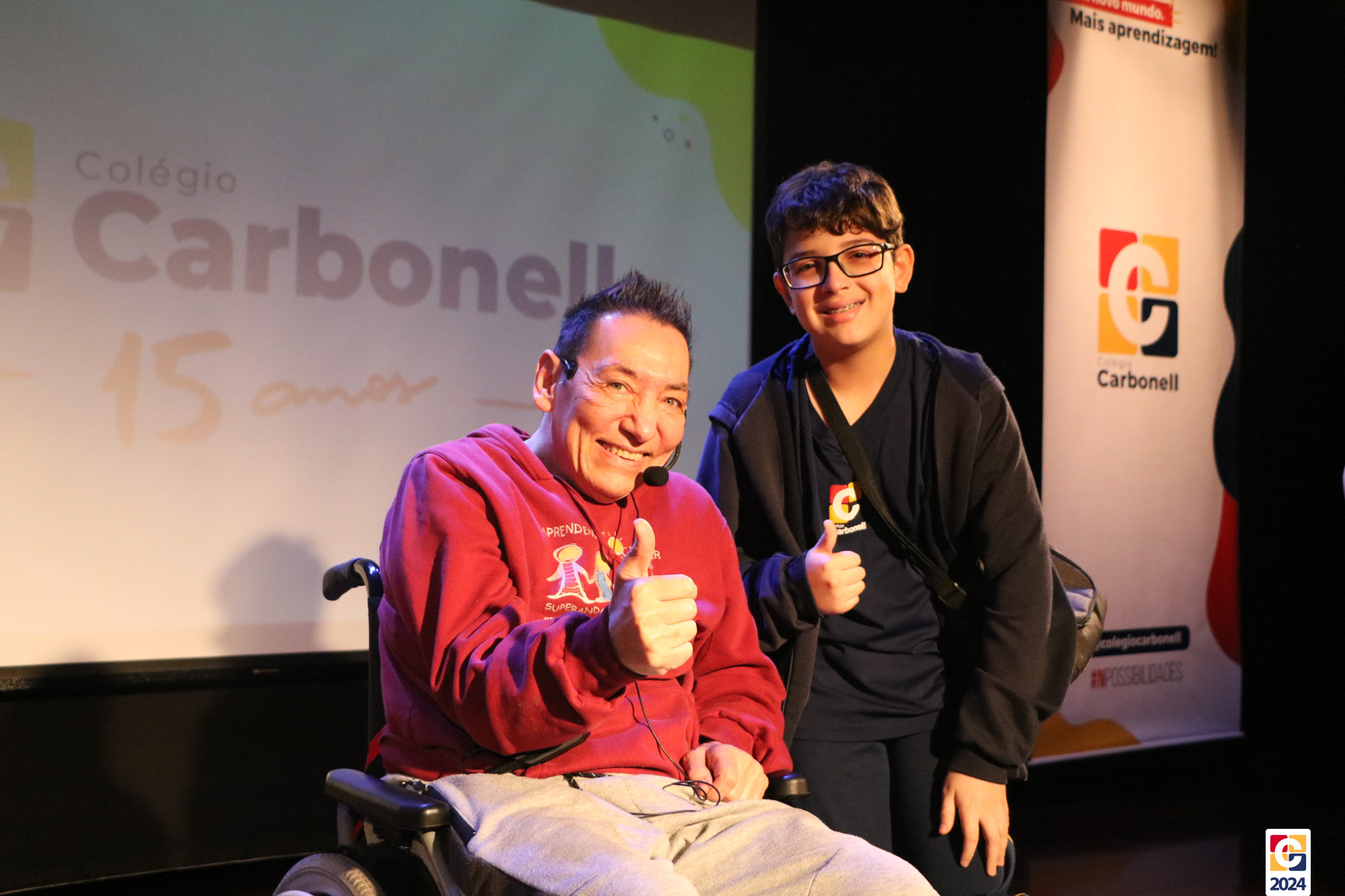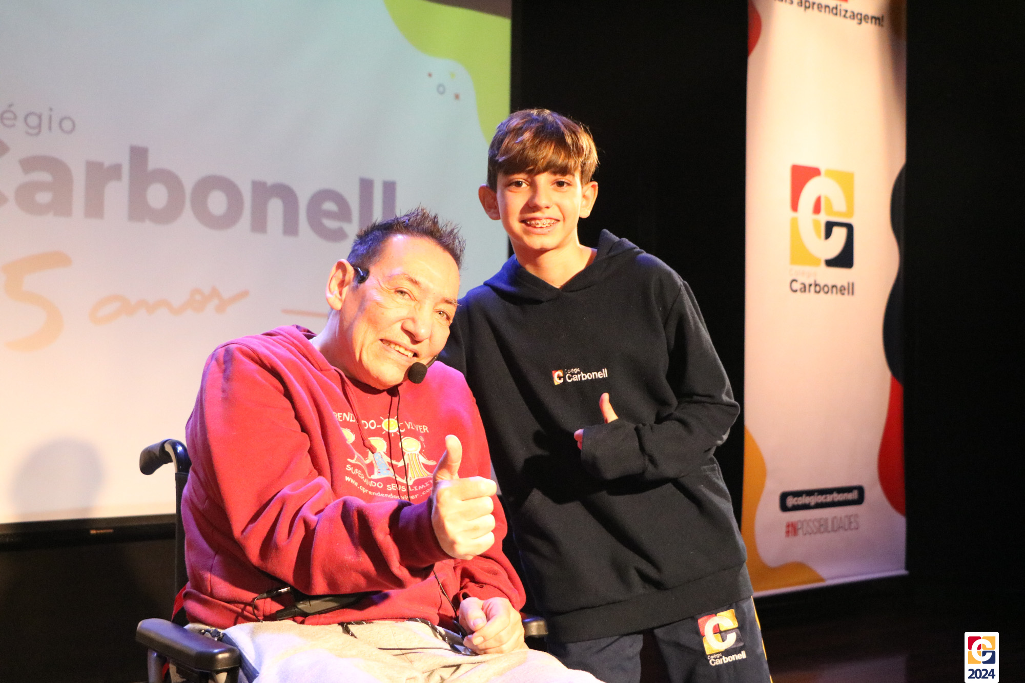 A palestra fez parte de um novo projeto do Colégio Carbonell, o ‘’Inclusão em ação: Diversidade que transforma’’, que visa promover a diversidade, inclusão, superação, objetivos de vida, sonhos e prevenção contra o bullying. A atividade foi um marco para fortalecer esses valores e inspirar nossos estudantes a se colocarem no lugar do outro, cultivando a empatia e o respeito mútuo. 🤗