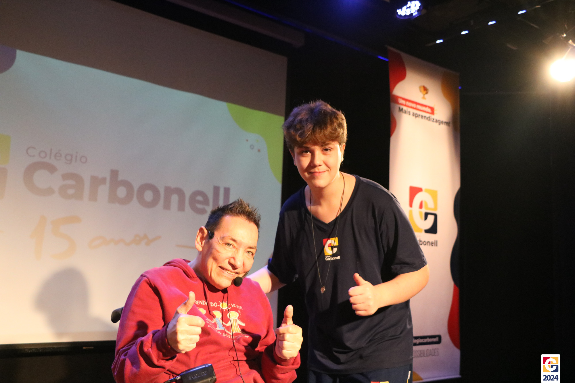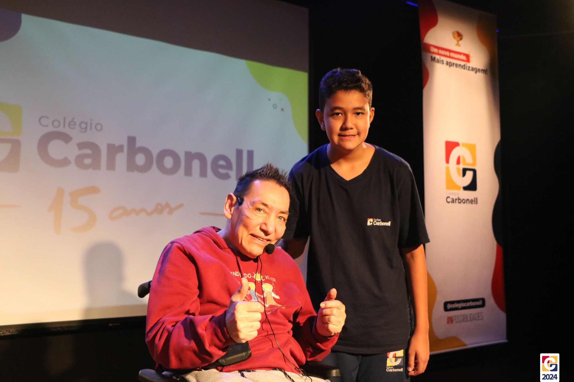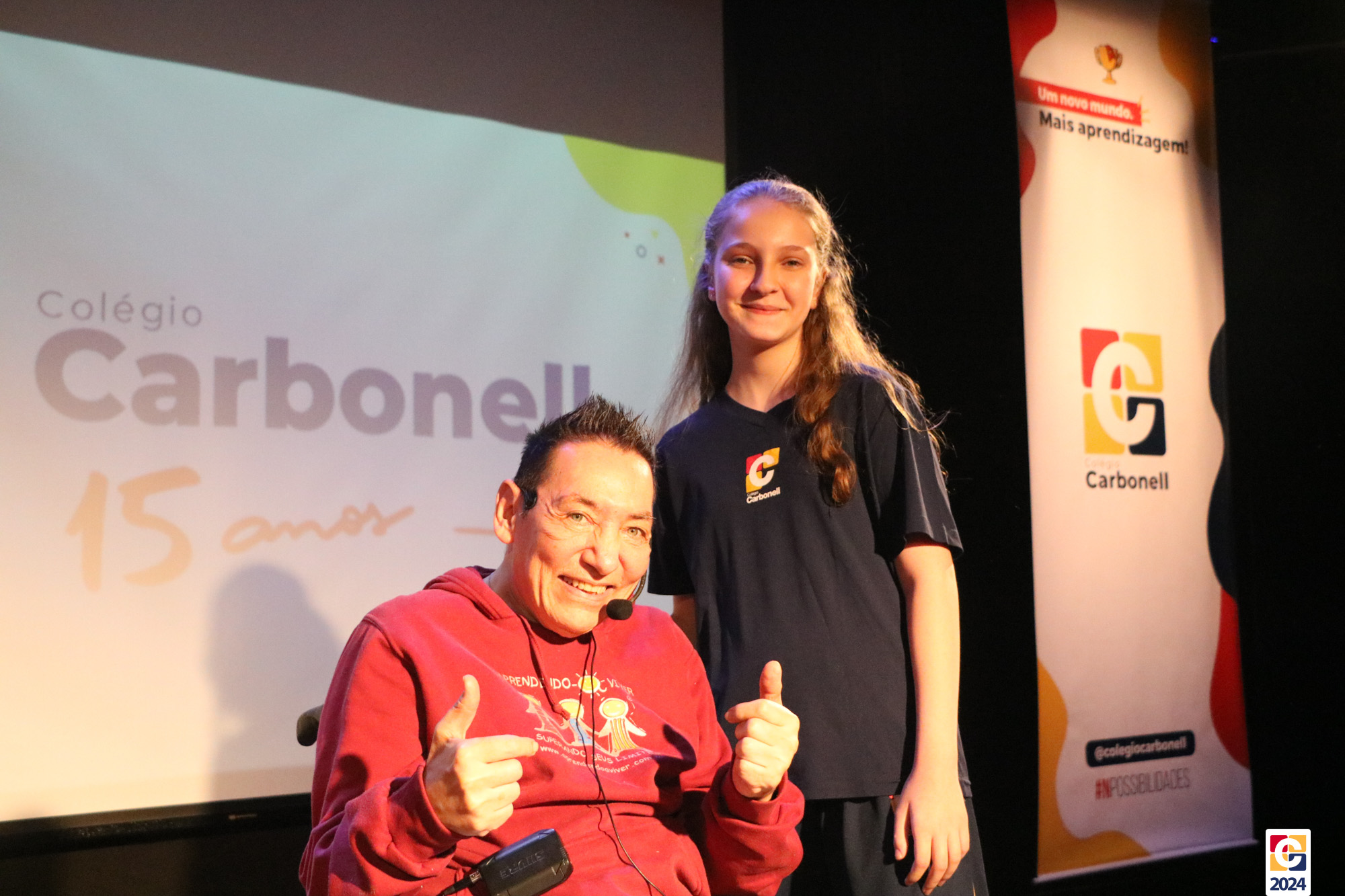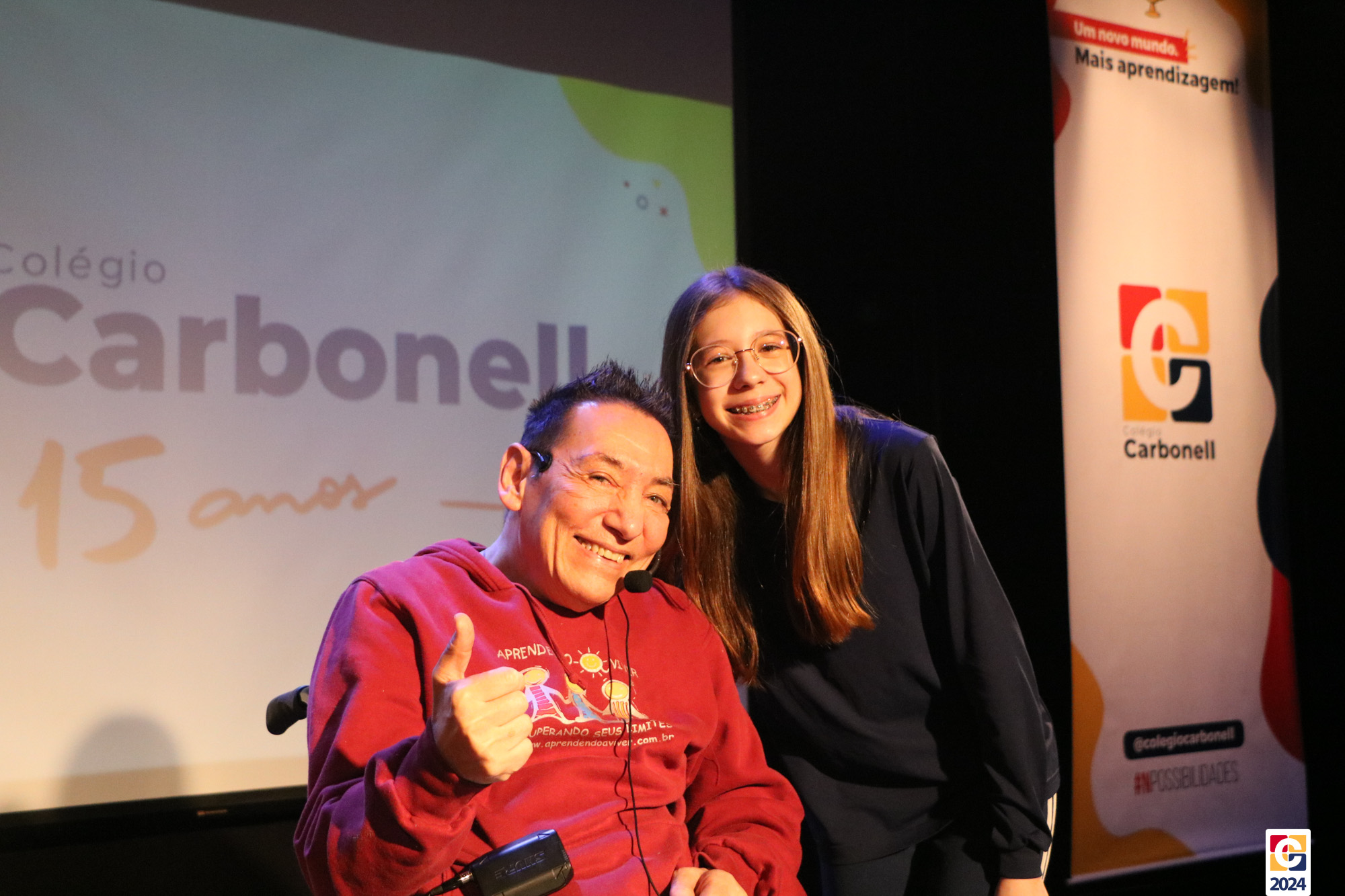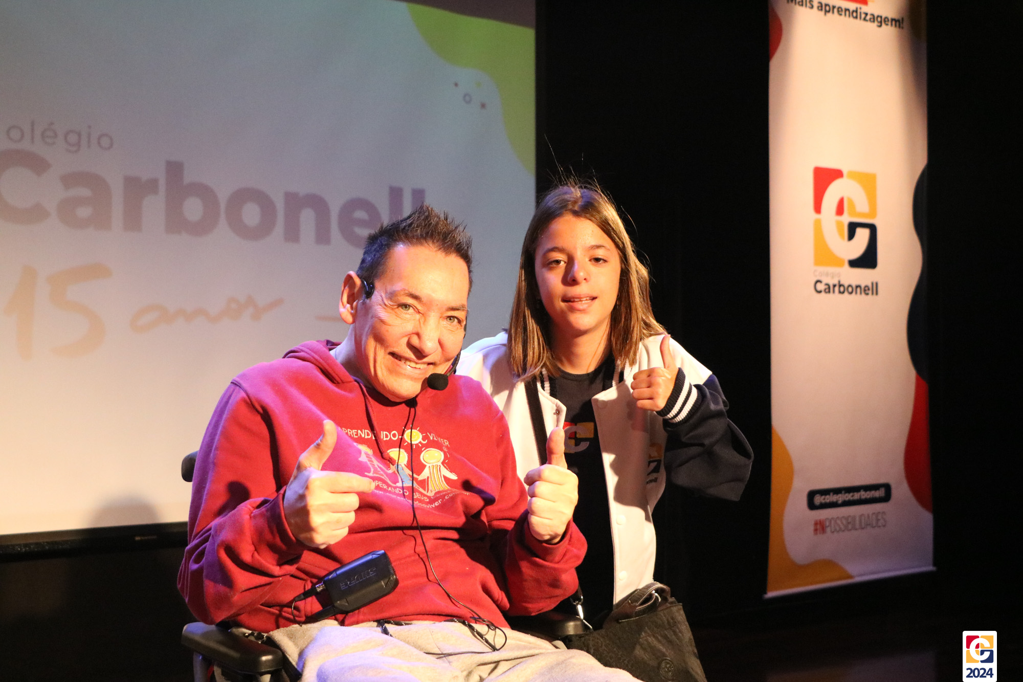 A palestra fez parte de um novo projeto do Colégio Carbonell, o ‘’Inclusão em ação: Diversidade que transforma’’, que visa promover a diversidade, inclusão, superação, objetivos de vida, sonhos e prevenção contra o bullying. A atividade foi um marco para fortalecer esses valores e inspirar nossos estudantes a se colocarem no lugar do outro, cultivando a empatia e o respeito mútuo. 🤗