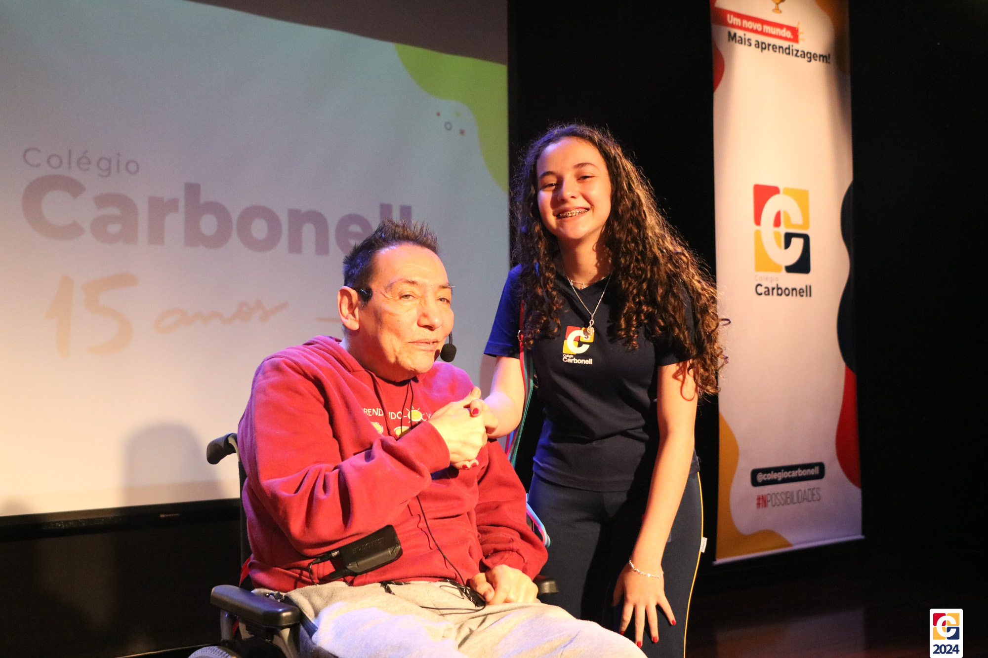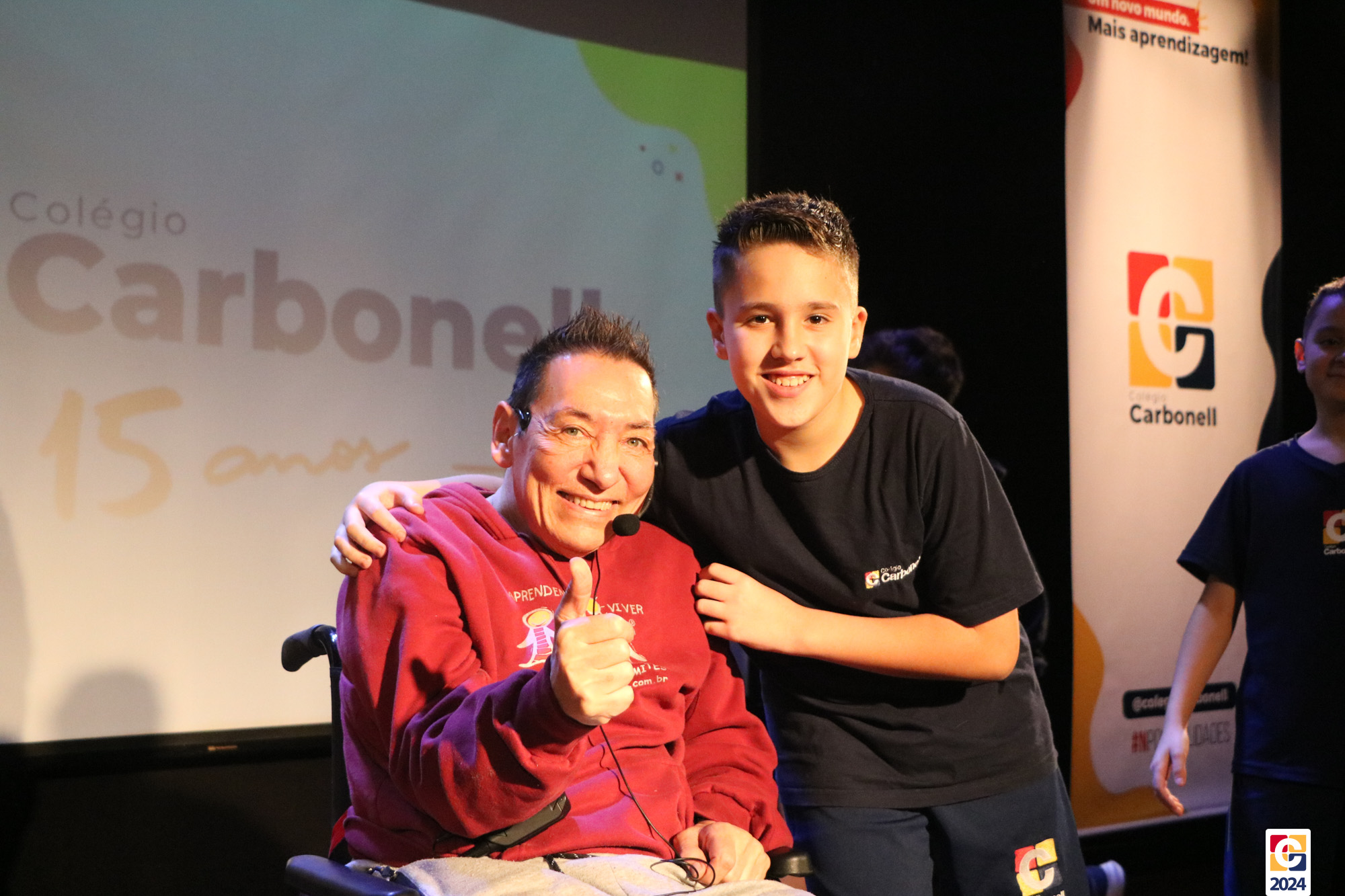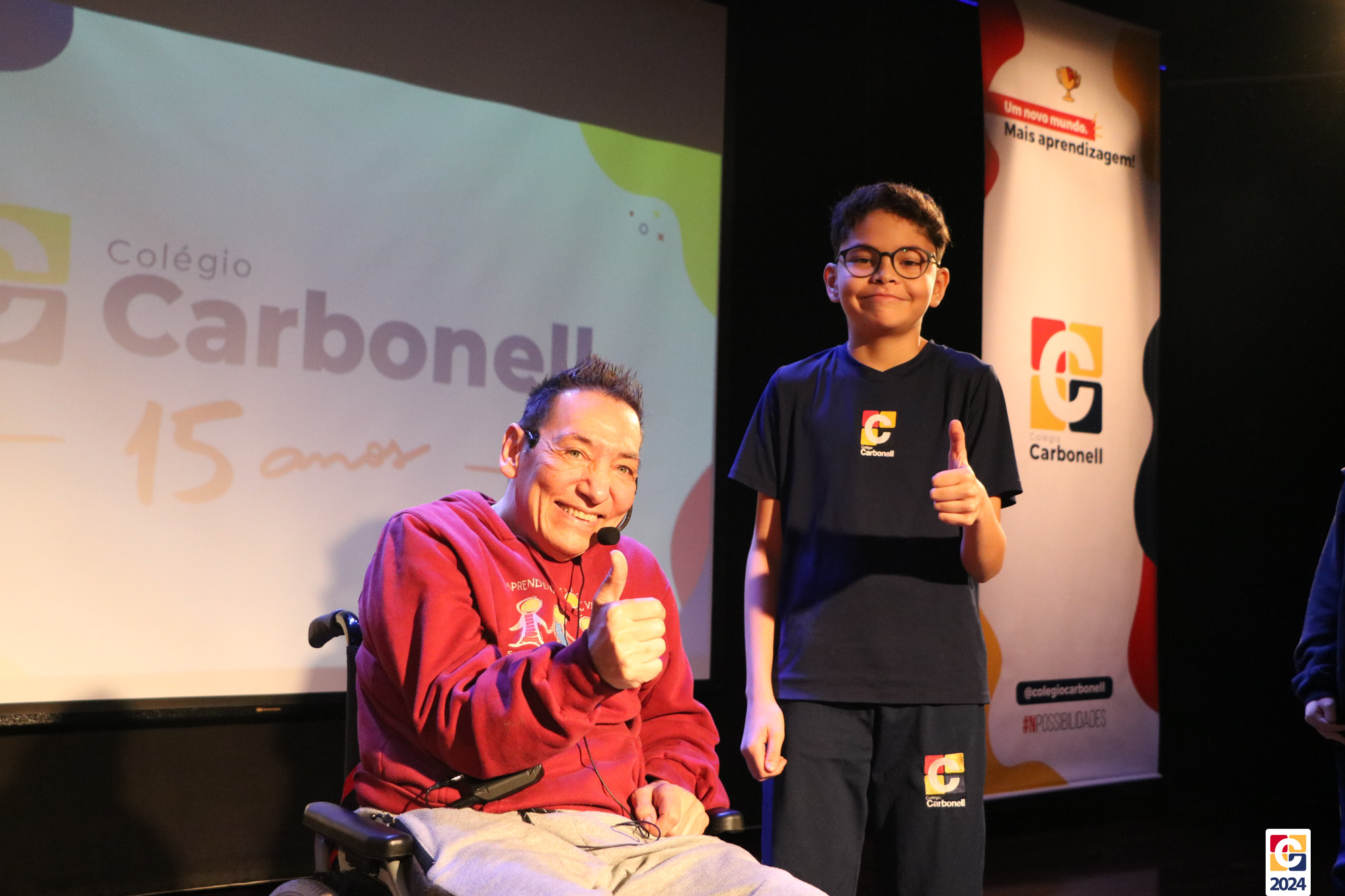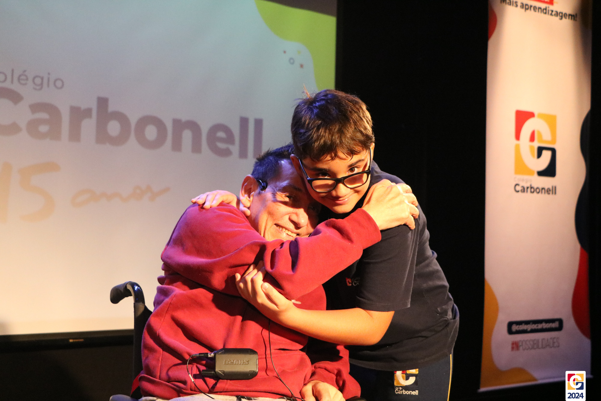 As palavras de Luiz emocionaram profundamente todos os presentes. Estudantes, colaboradores e professores ficaram tocados pela mensagem e, ao final, muitos se aproximaram para agradecer, oferecer apoio e expressar admiração. Foi um momento marcante que reforçou o espírito de empatia e solidariedade em toda a comunidade escolar. Capturamos alguns momentos em fotos, que você acessa, curte e compartilha com amigos e familiares no álbum a seguir. Aqui, a gente te prepara para um novo mundo! 🌎 #Carbonell15 #SouCarbonell #nPossibilidades