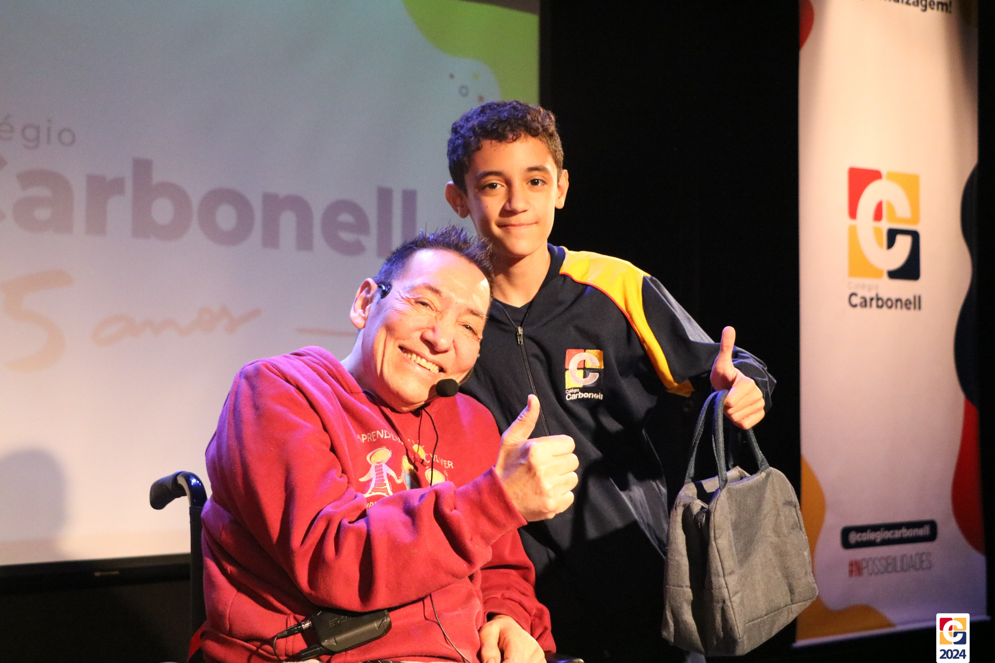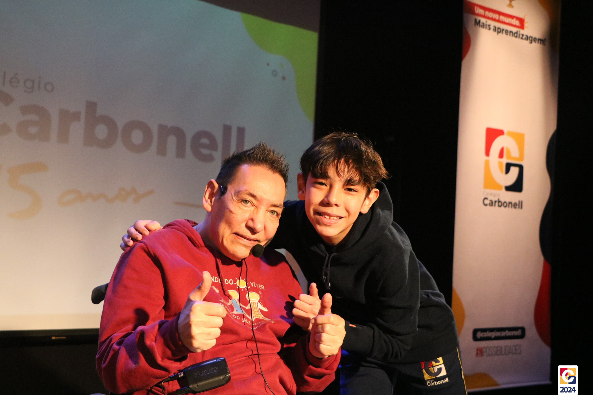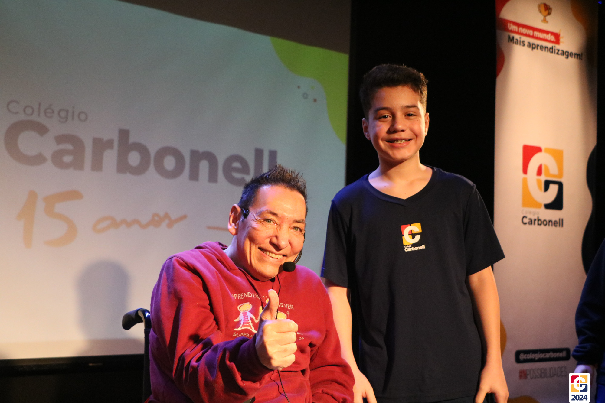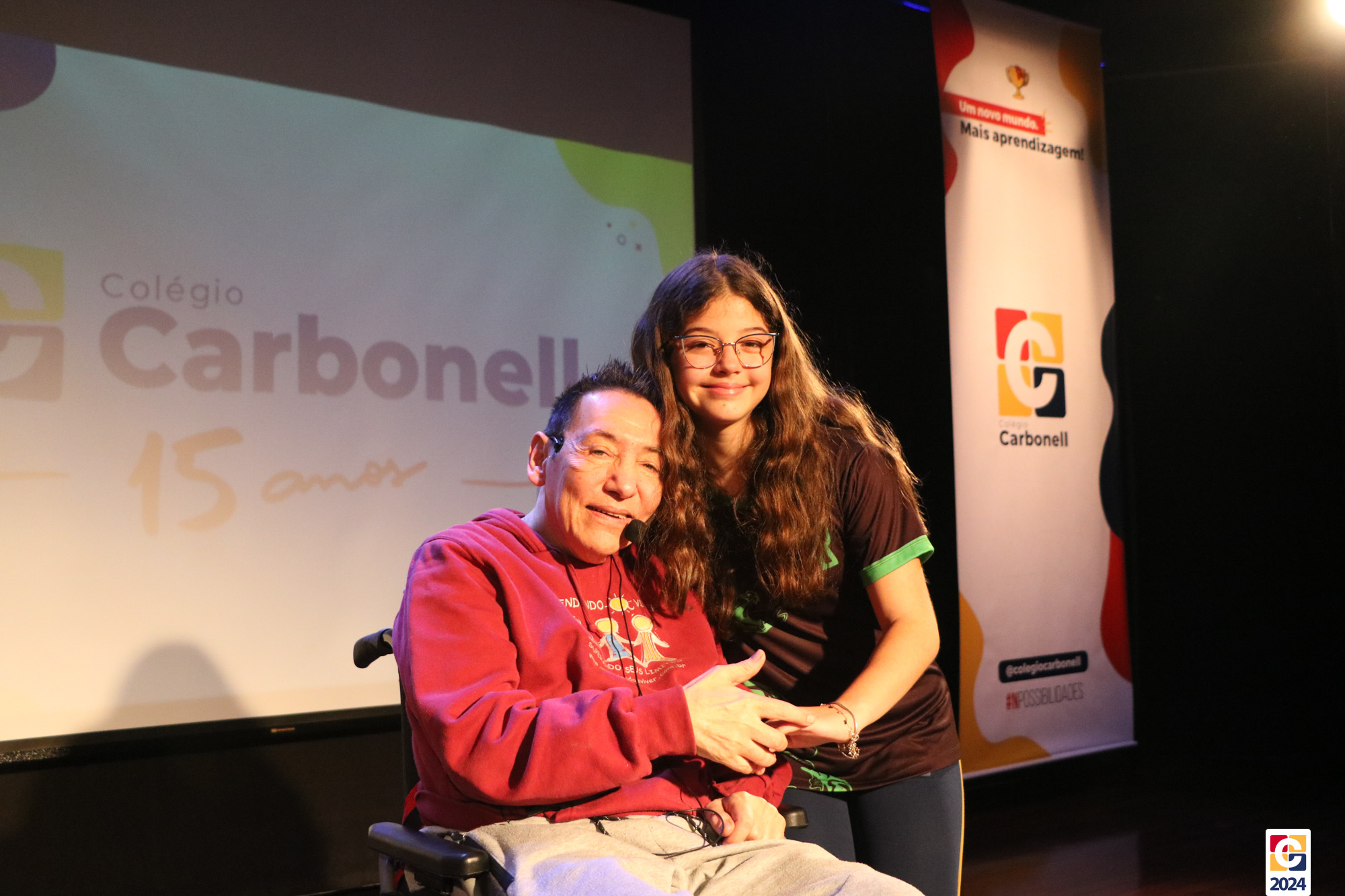 As palavras de Luiz emocionaram profundamente todos os presentes. Estudantes, colaboradores e professores ficaram tocados pela mensagem e, ao final, muitos se aproximaram para agradecer, oferecer apoio e expressar admiração. Foi um momento marcante que reforçou o espírito de empatia e solidariedade em toda a comunidade escolar. Capturamos alguns momentos em fotos, que você acessa, curte e compartilha com amigos e familiares no álbum a seguir. Aqui, a gente te prepara para um novo mundo! 🌎 #Carbonell15 #SouCarbonell #nPossibilidades