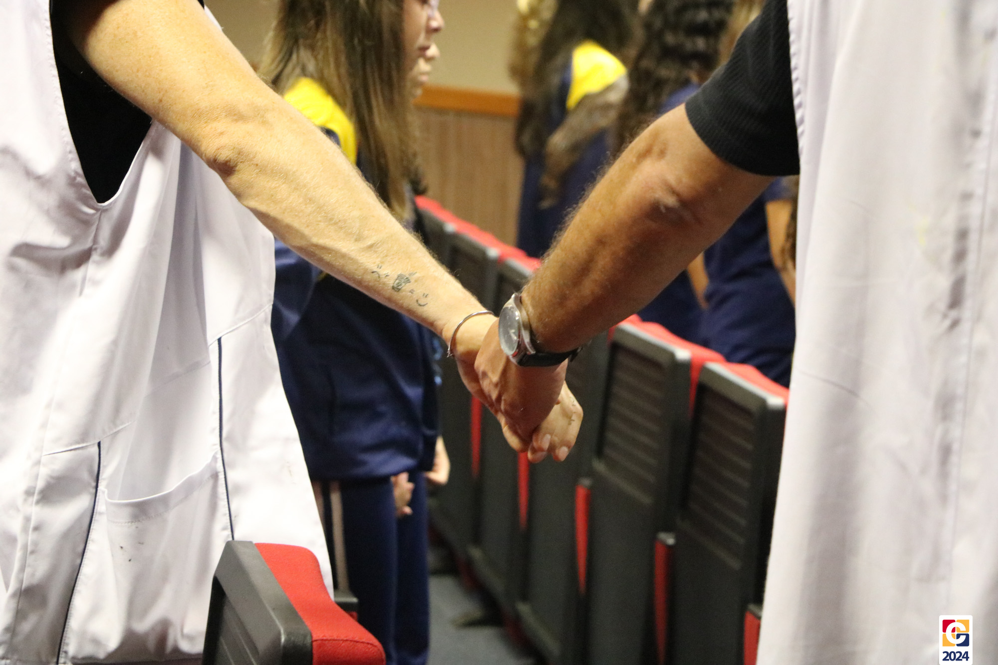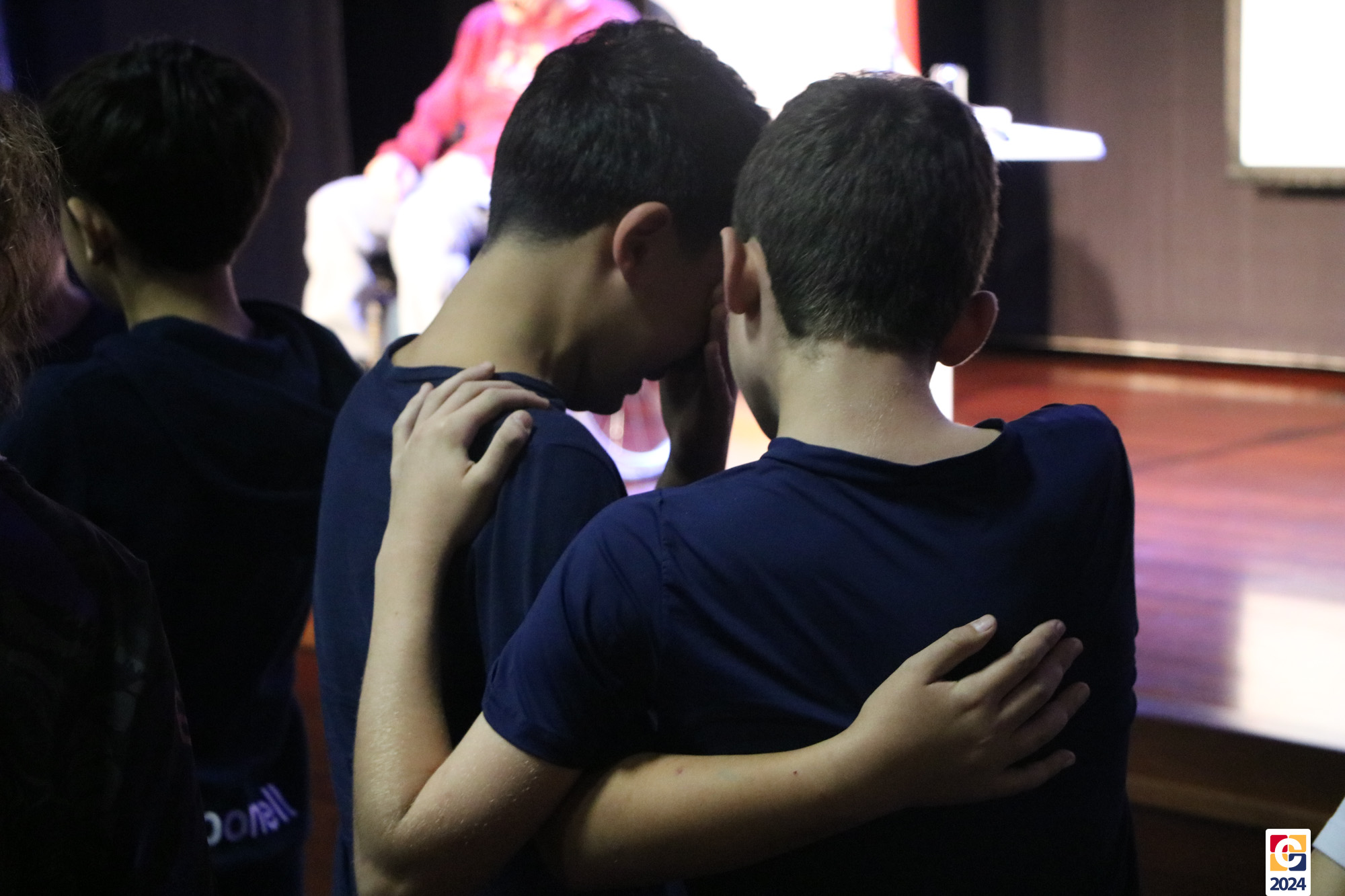 Esse trabalho deu origem ao Projeto Aprendendo a Viver, uma iniciativa pessoal de Luiz Eduardo Boudakian que busca ajudar jovens, famílias e equipes a reconhecerem o valor da vida. Durante a palestra, Luiz pediu aos estudantes, professores e colaboradores que formassem uma corrente, dando as mãos e fechando os olhos, imaginando estar ao lado de alguém que amam. Em seguida, solicitou que se abraçassem, promovendo um gesto de empatia e solidariedade. 🥰