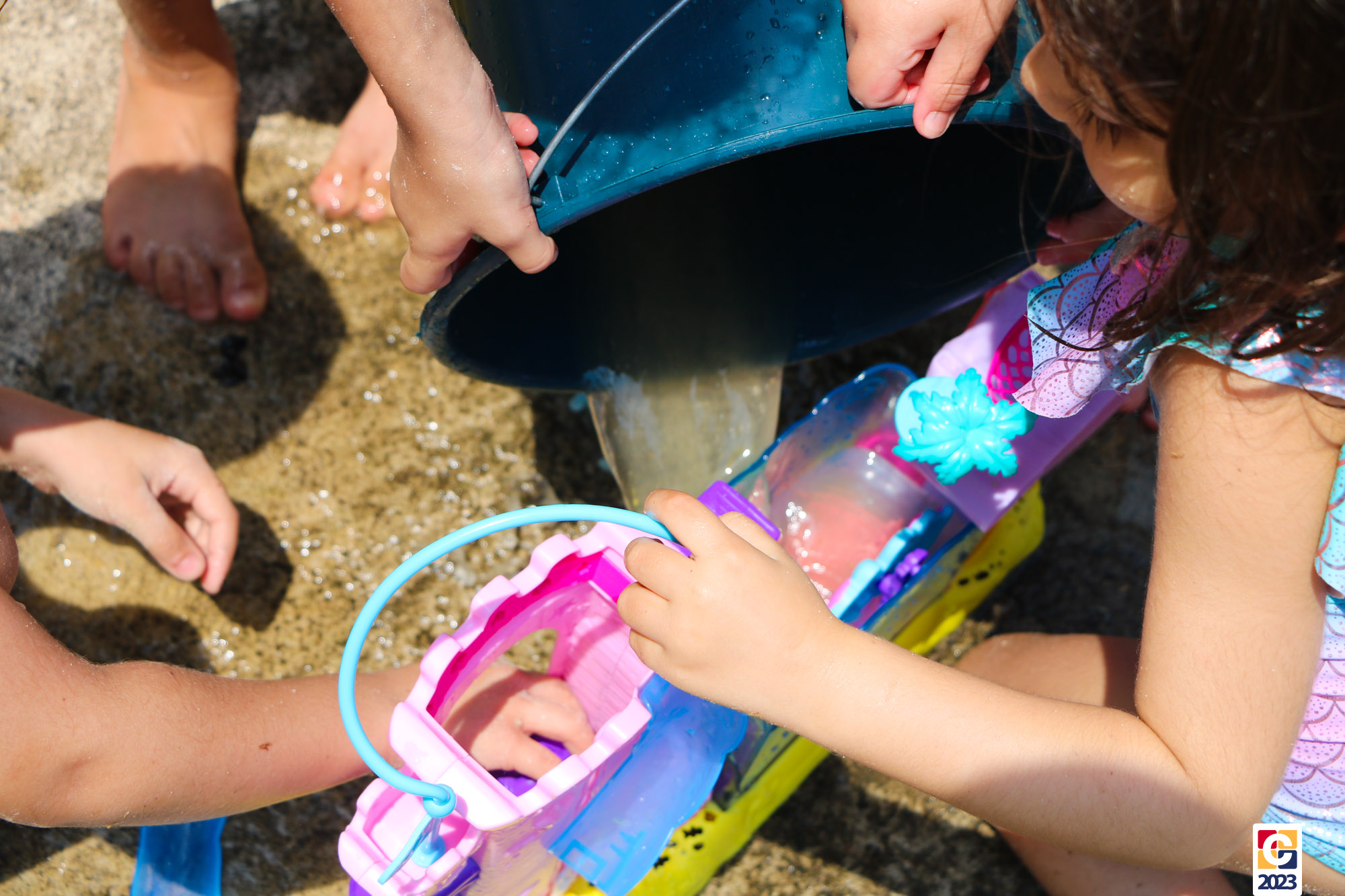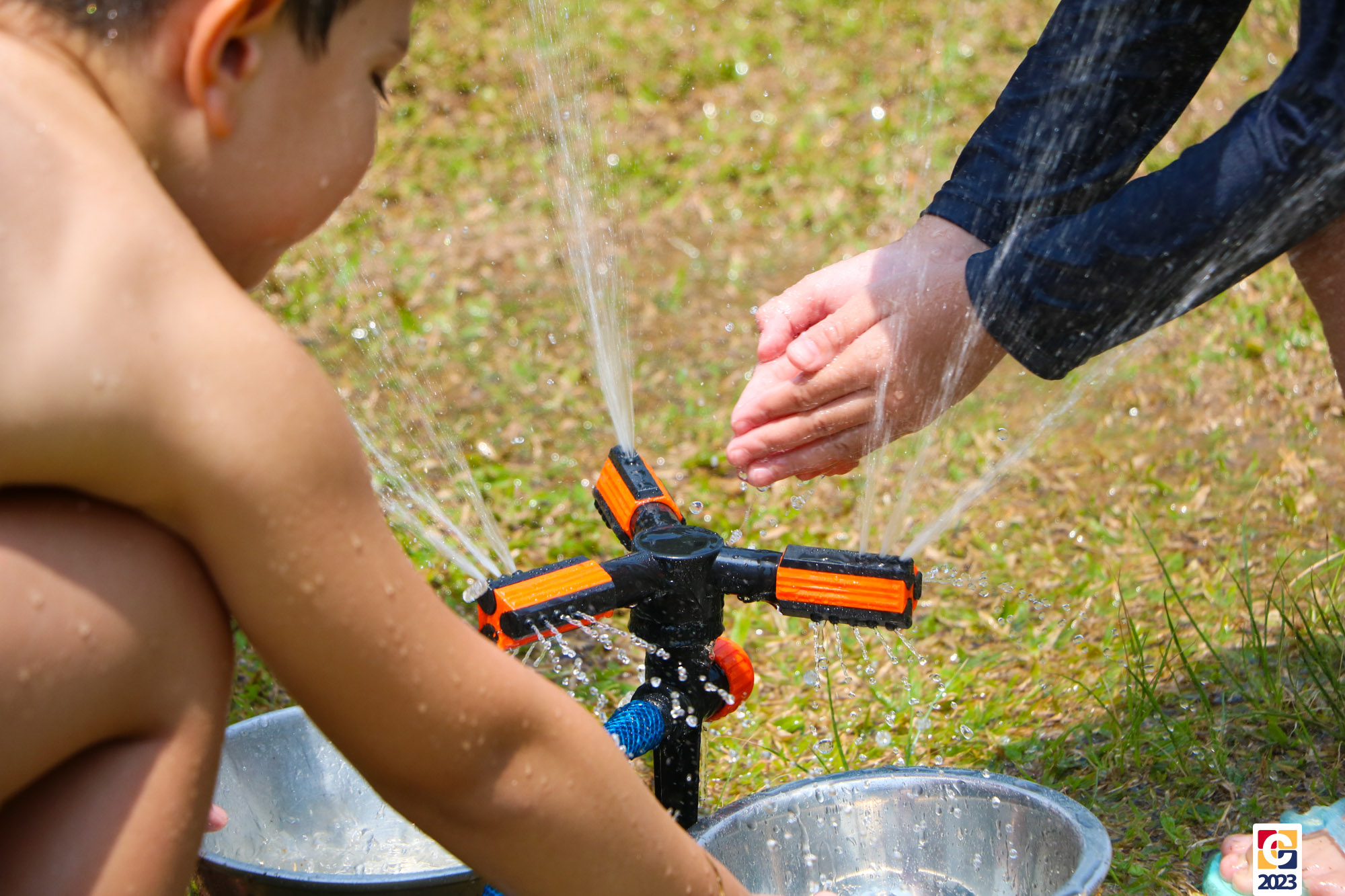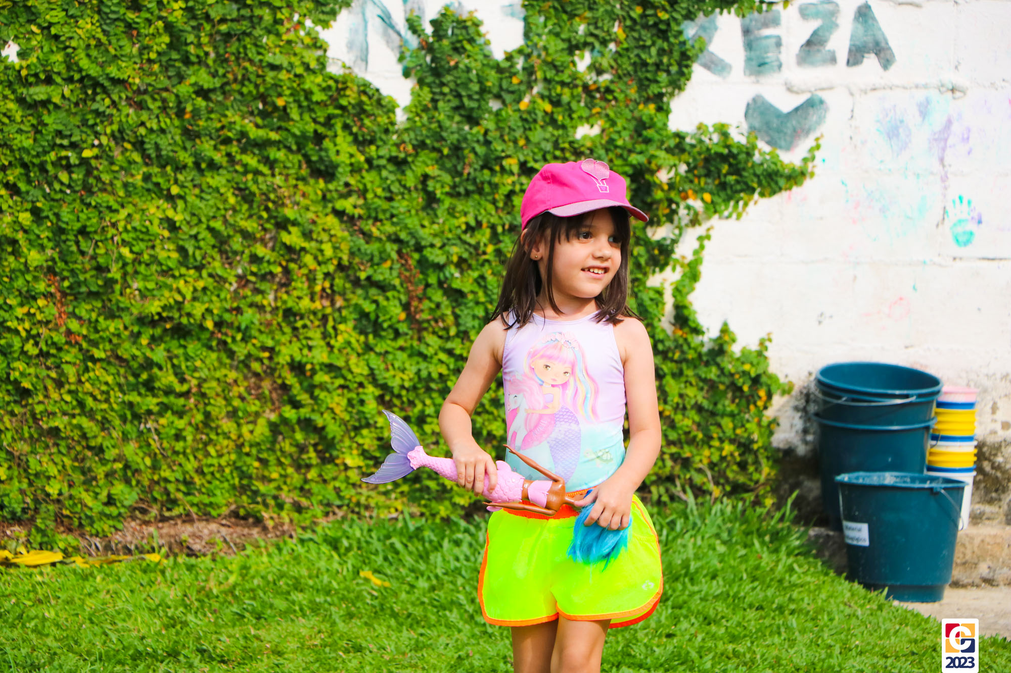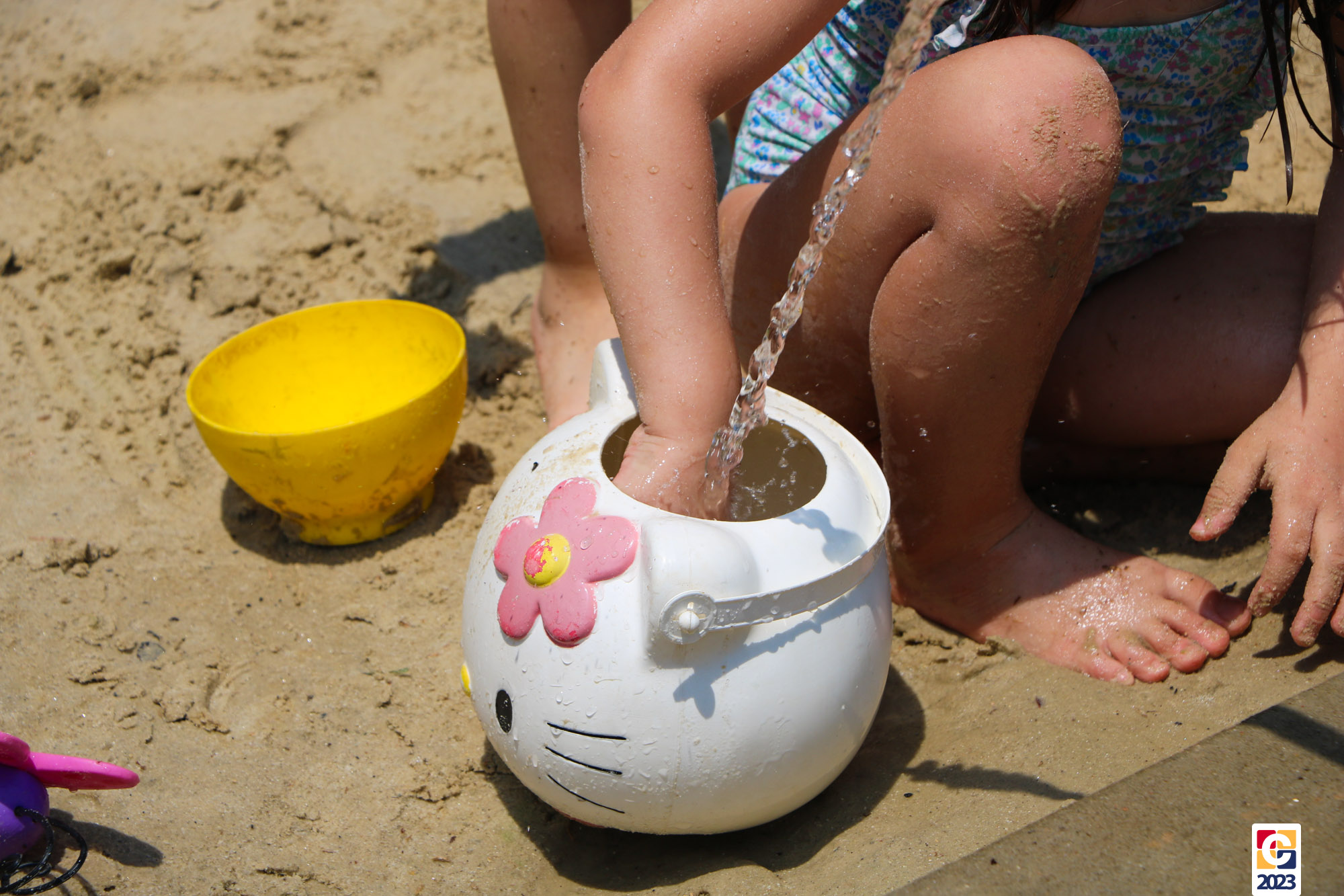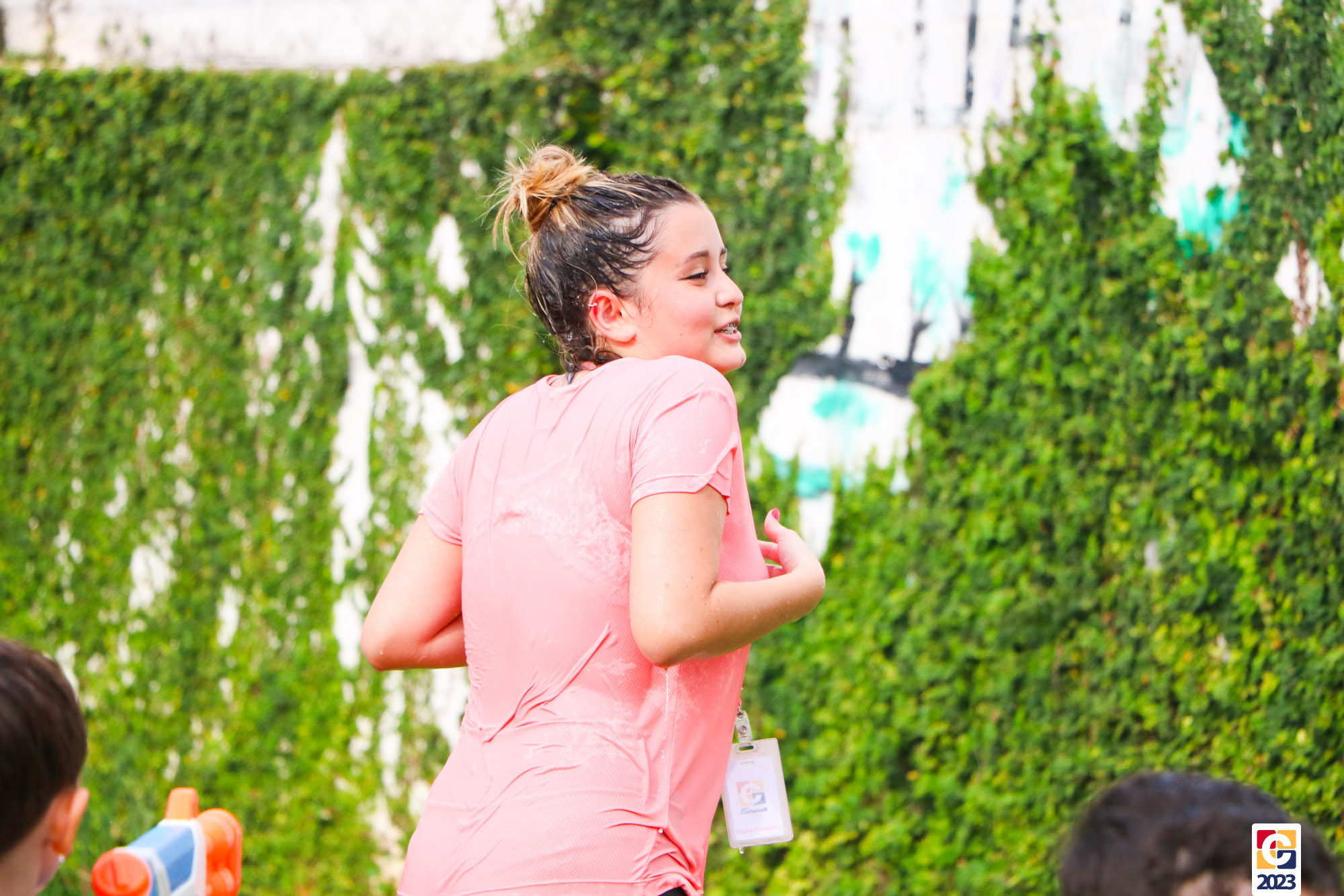 Professoras, assistentes e crianças, unidos pela alegria, esguichavam água uns nos outros em mais um dia mágico, desses que ficam gravados para sempre nas memórias de infância. 💧