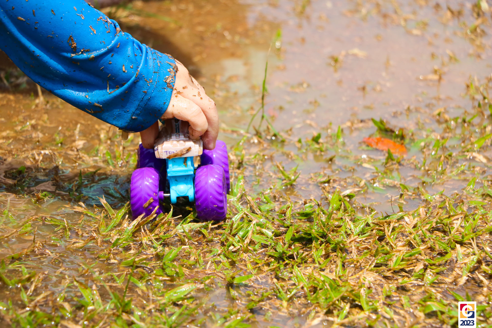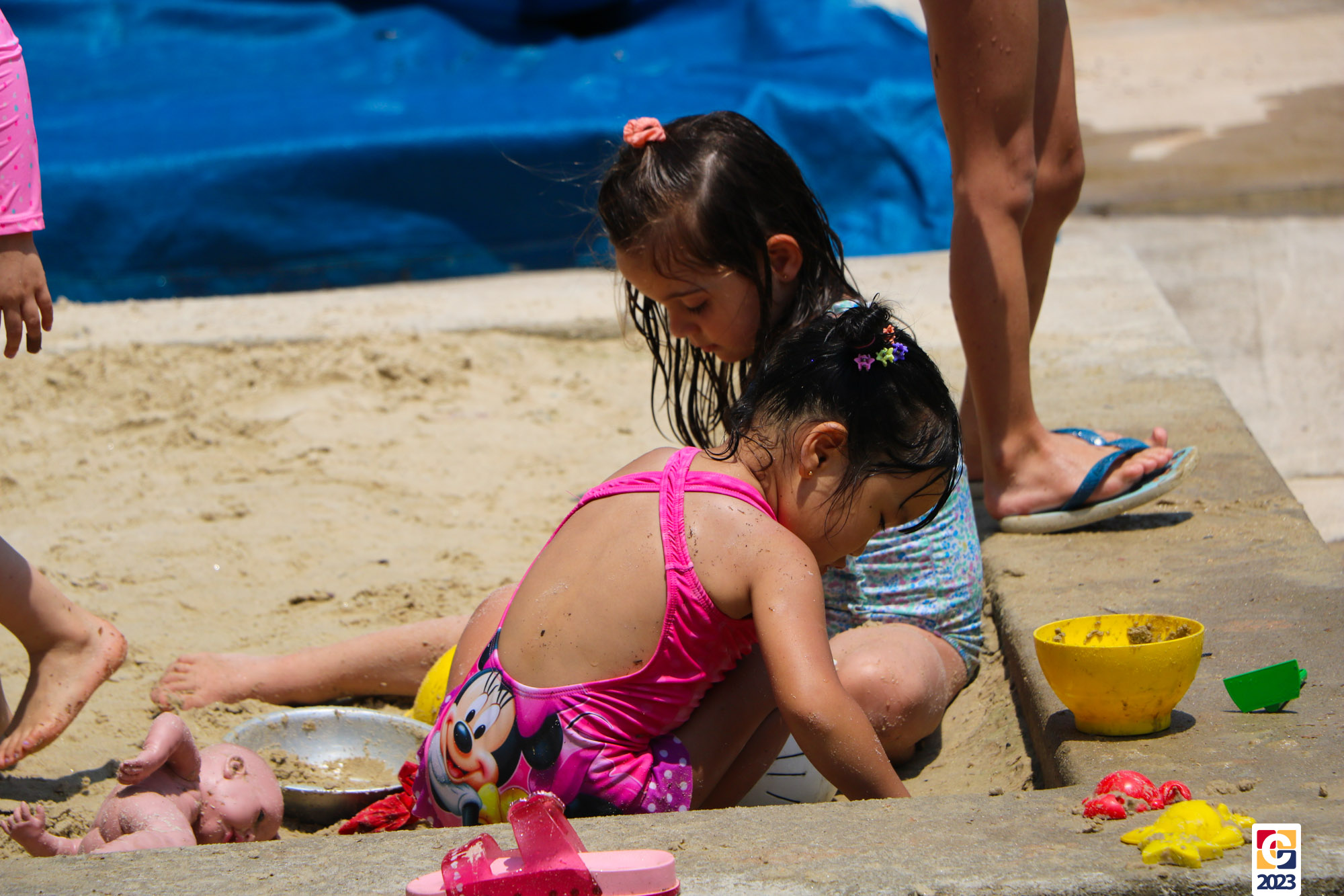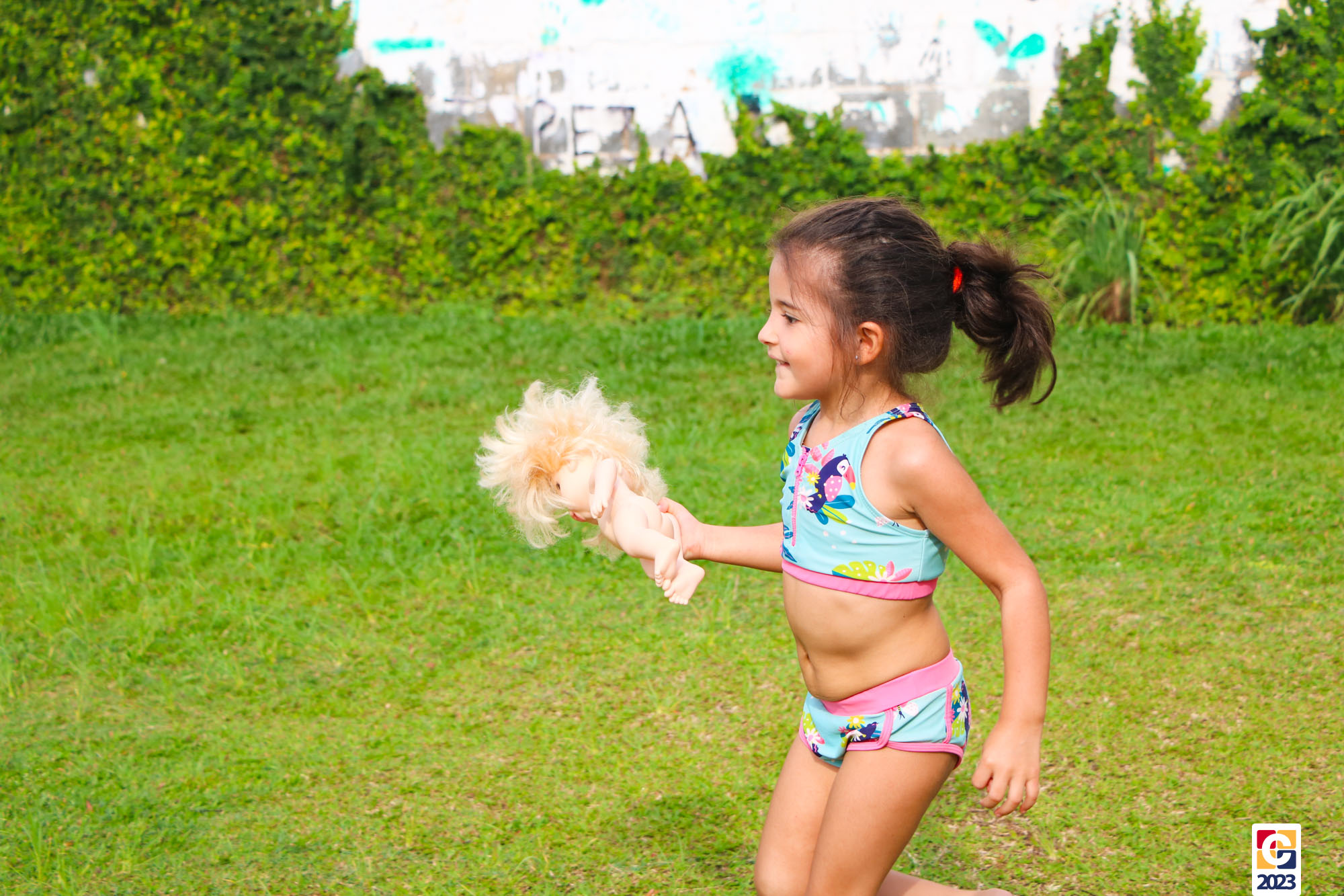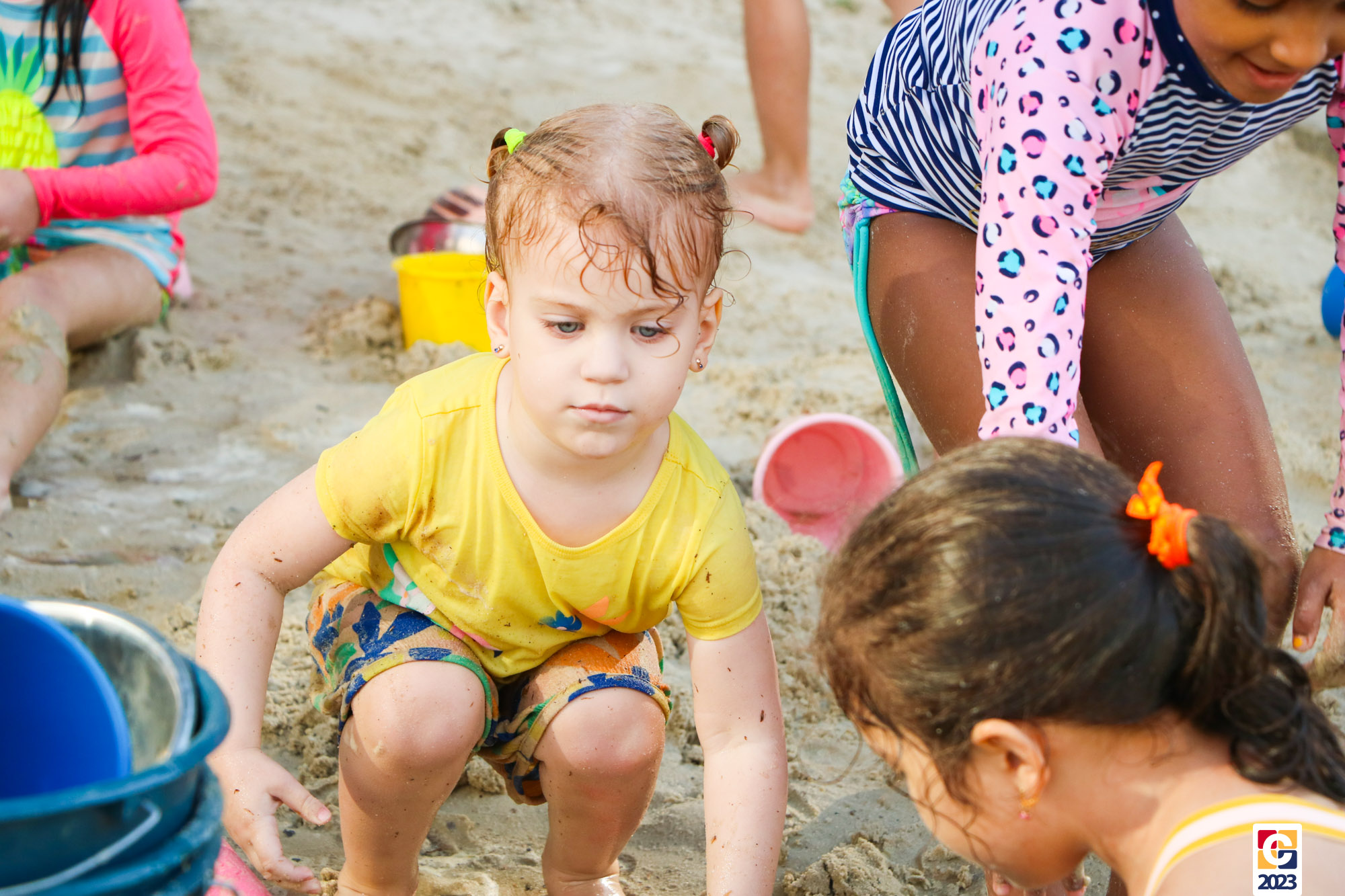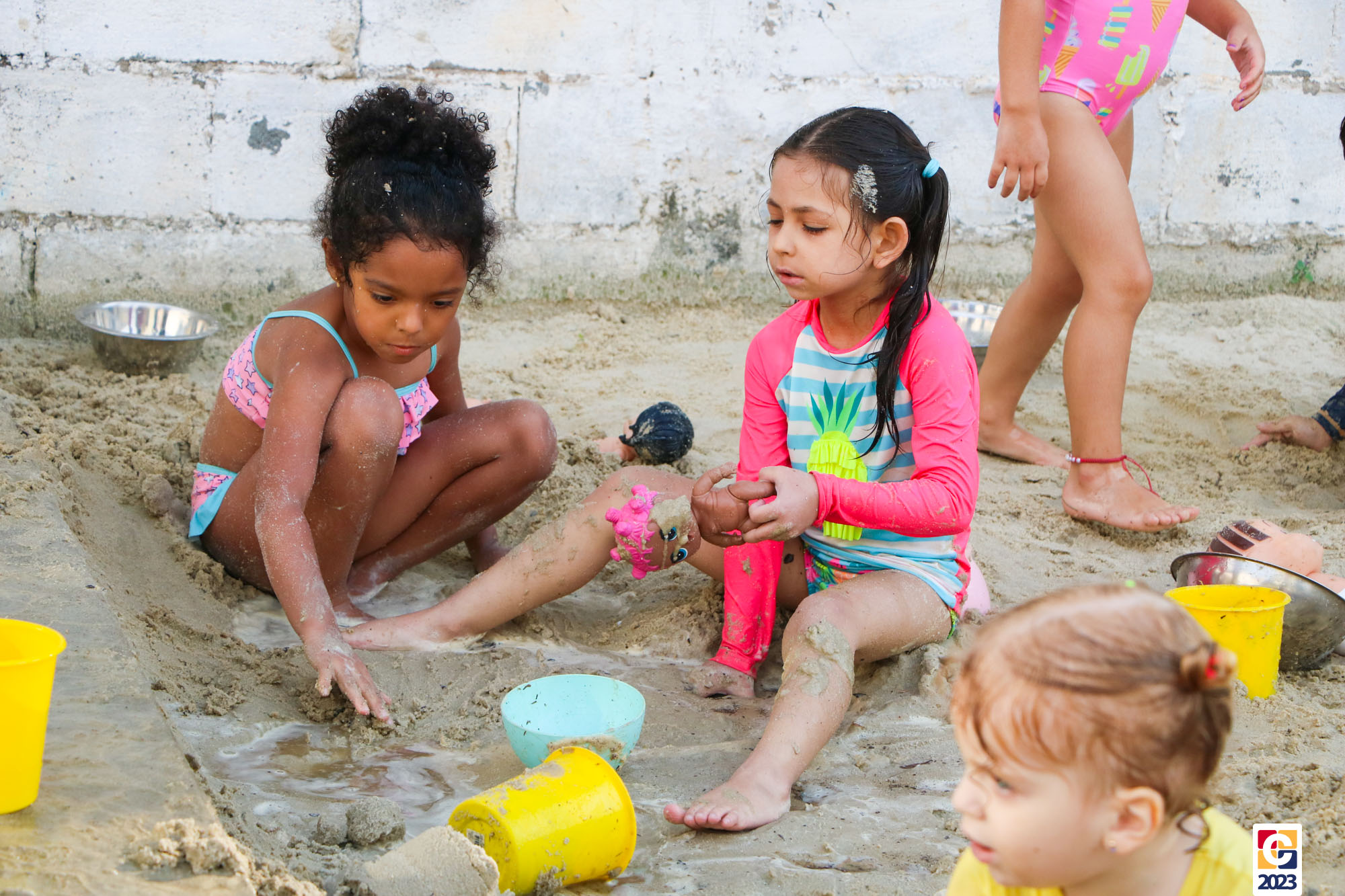 Professoras, assistentes e crianças, unidos pela alegria, esguichavam água uns nos outros em mais um dia mágico, desses que ficam gravados para sempre nas memórias de infância. 💧