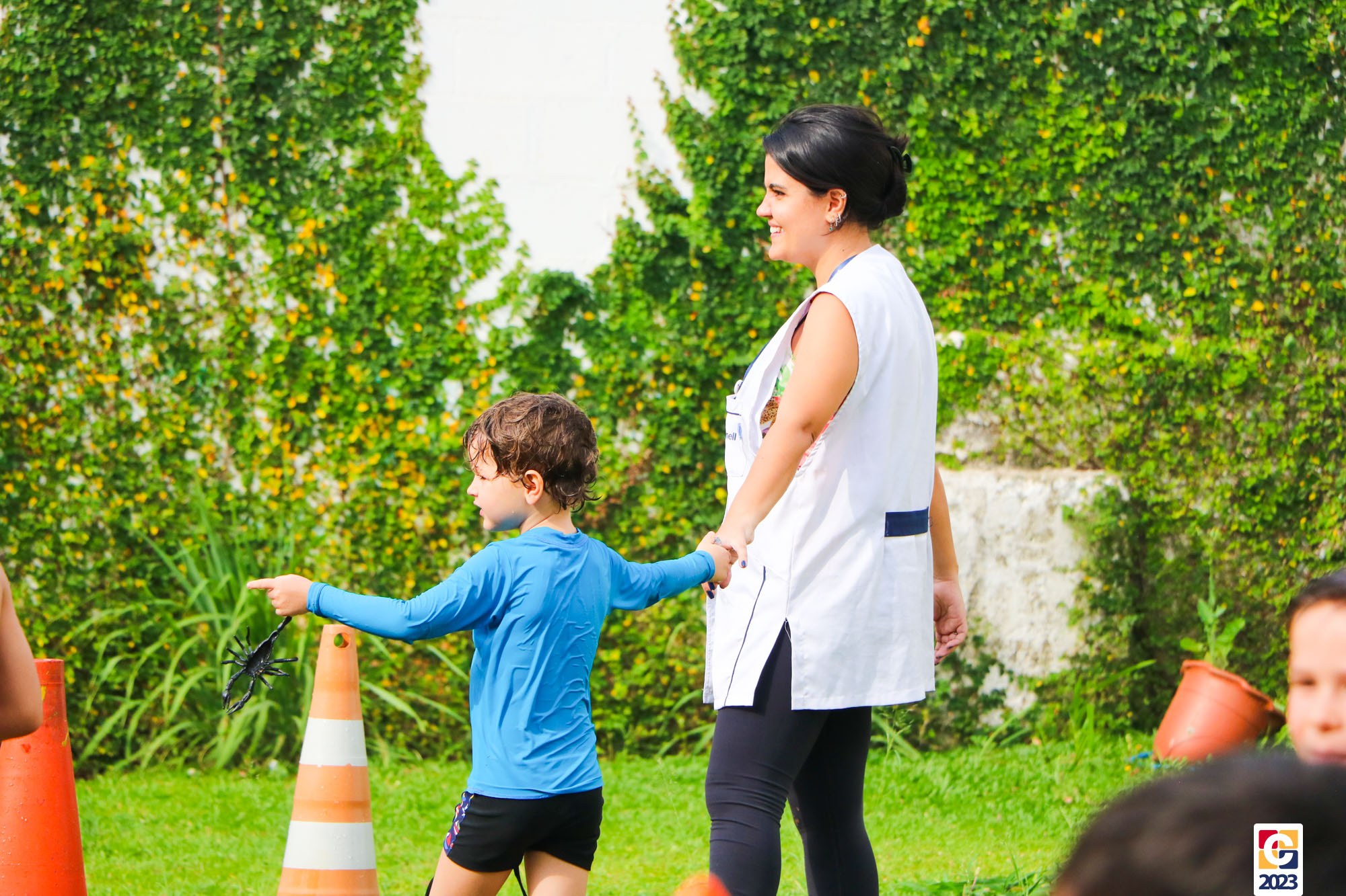 Por volta das 14h de ontem (16), os termômetros beiravam incríveis 40°C na Vila Augusta, aqui em Guarulhos! Foi quando a natureza se uniu à diversão e bem ali, em nossa ampla área verde, turminhas da Educação Infantil encontraram um refúgio refrescante na simplicidade de uma mangueira. 🔫