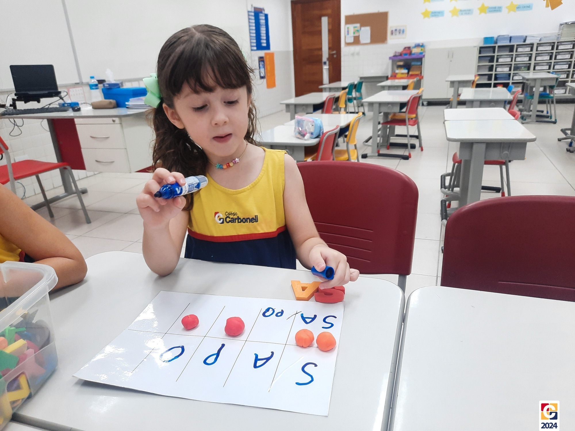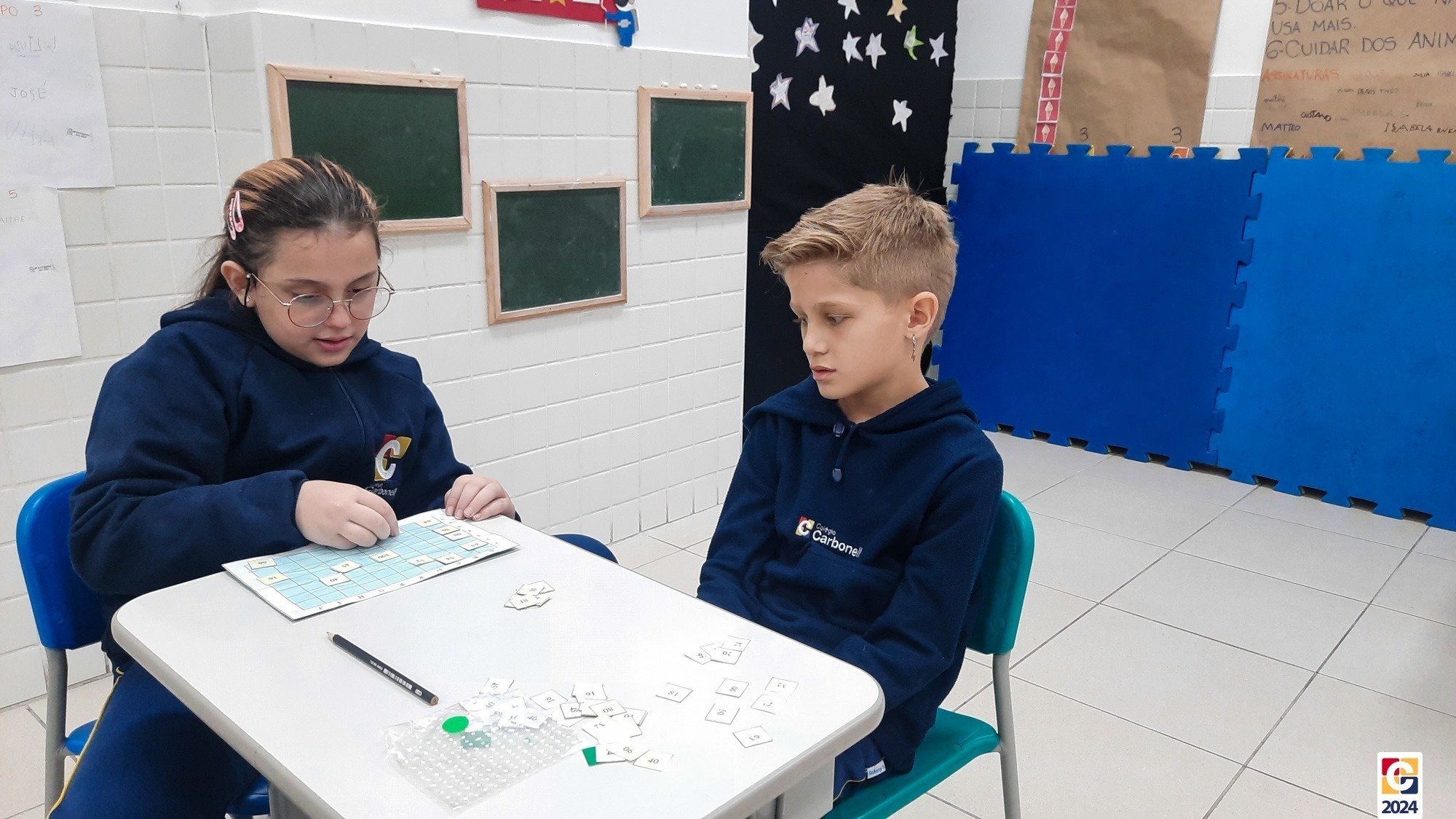 O +Carbonell, projeto do Colégio Carbonell, oferece aos estudantes do 1º ao 5º ano uma abordagem diferenciada, distinta daquela aplicada nos Anos Finais e Ensino Médio. Durante a manhã, a professora Patrícia Sentino conduz atividades que combinam o lúdico com práticas concretas para desenvolver o raciocínio e facilitar a aprendizagem de forma adaptada às necessidades dessa faixa etária. À tarde, a Assistente +Carbonell Gabriela Farias aplica as atividades do projeto, proporcionando uma experiência de aprendizagem completa e personalizada para cada estudante. 🏫
