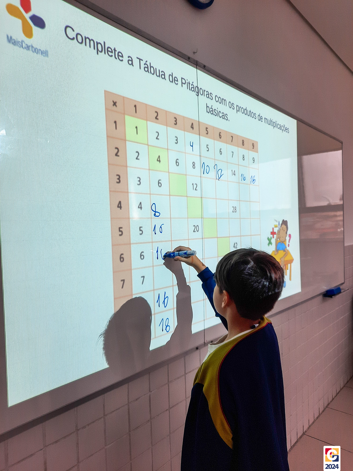 O +Carbonell, projeto do Colégio Carbonell, oferece aos estudantes do 1º ao 5º ano uma abordagem diferenciada, distinta daquela aplicada nos Anos Finais e Ensino Médio. Durante a manhã, a professora Patrícia Sentino conduz atividades que combinam o lúdico com práticas concretas para desenvolver o raciocínio e facilitar a aprendizagem de forma adaptada às necessidades dessa faixa etária. À tarde, a Assistente +Carbonell Gabriela Farias aplica as atividades do projeto, proporcionando uma experiência de aprendizagem completa e personalizada para cada estudante. 🏫