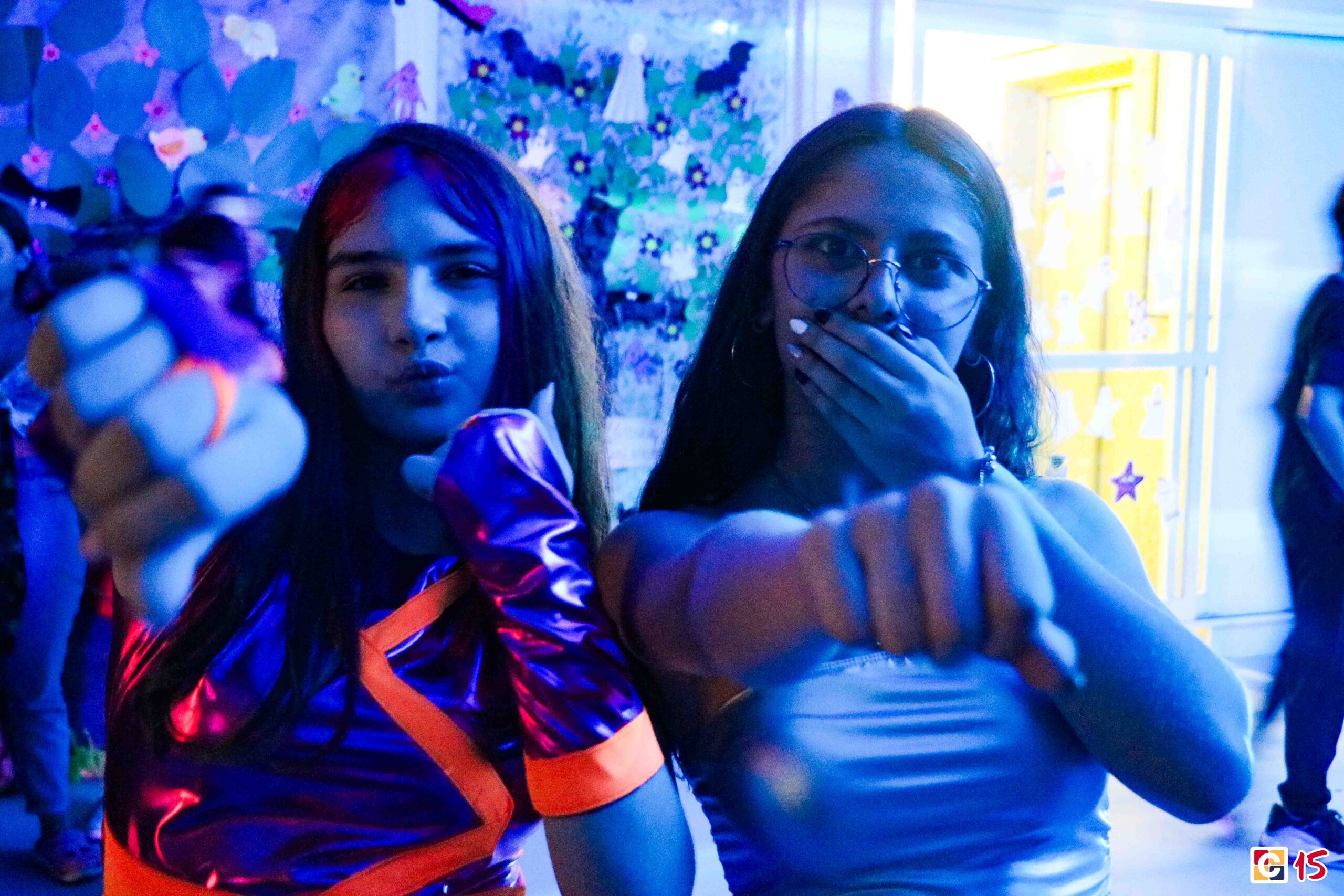 O evento contou com truques de ilusão de ótica em alusão ao seriado e karaokê com a trilha sonora dos episódios mais marcantes, onde o time CLP (Carbonell Language Program) explorou aspectos fonológicos da língua inglesa; também teve Kahoot — um jogo interativo de perguntas e respostas em inglês com curiosidades da série —, além da confecção de bracelets com a frase “Friends don’t lie”, marca da amizade entre os personagens da série e Arcade Game, com máquinas Pinball e multijogos relembrando um dos locais mais amados pelos jovens desbravadores da cidade de Hawkins. O evento contou ainda com um enigma do mundo invertido, onde nossos estudantes desvendaram mensagens enigmáticas em inglês, e, claro, um grande baile para encerrar a noite. 🕺