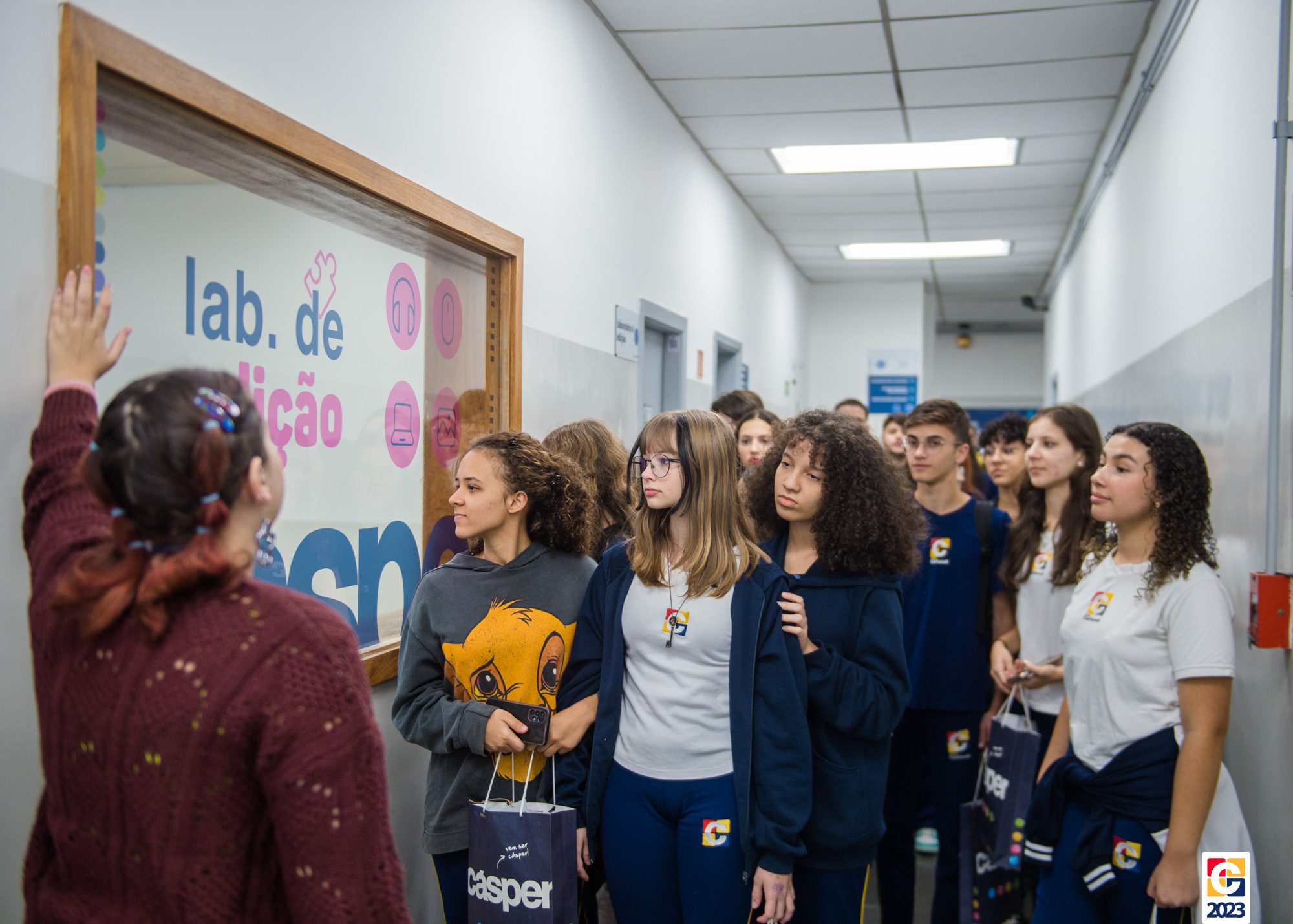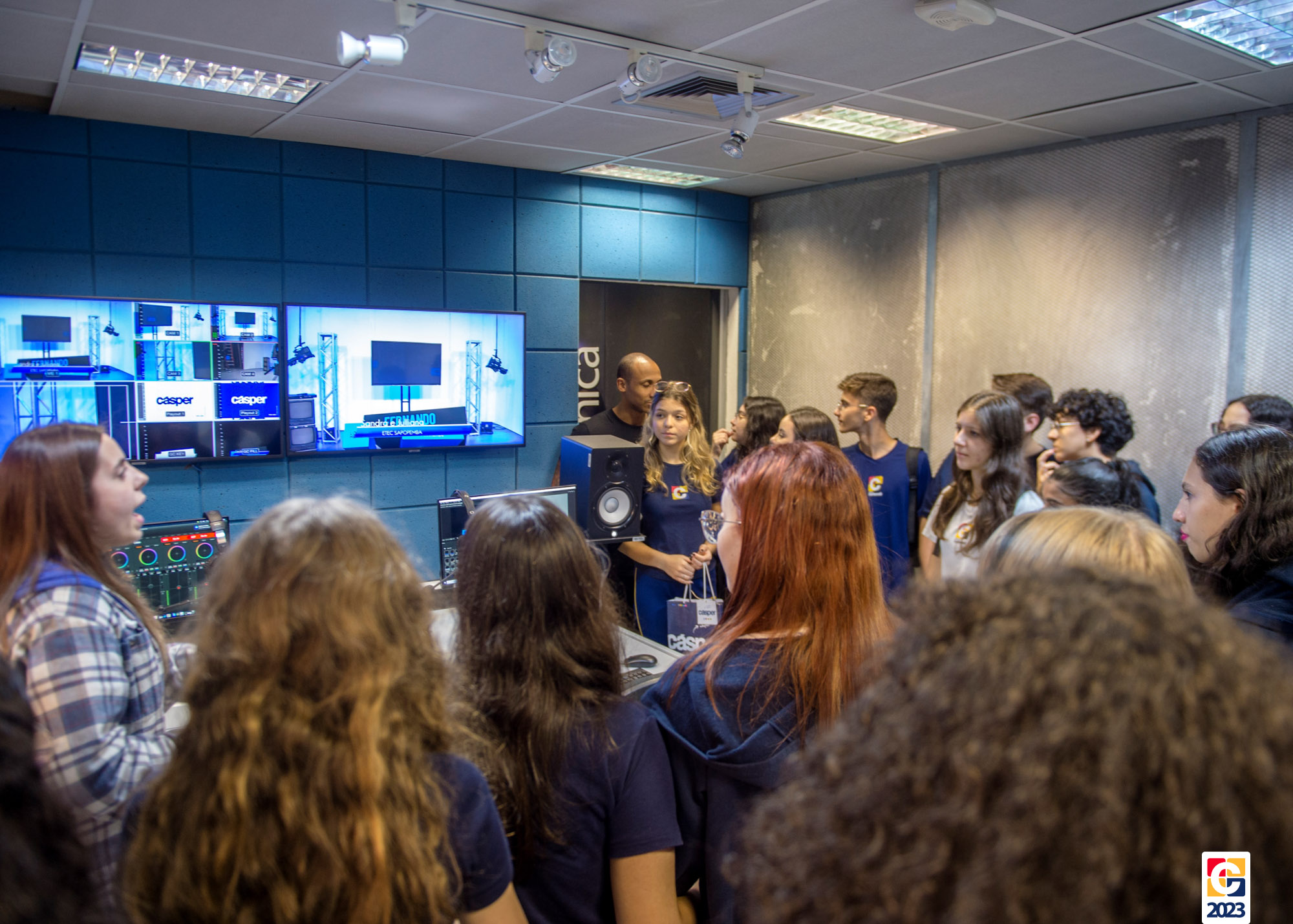 Nossos estudantes ainda puderam conhecer o interior da faculdade, os corredores e as salas do prédio, bem como os estúdios de gravações de podcast e a redação da TV Gazeta, que também faz parte da Cásper. 🎧👨‍🎓