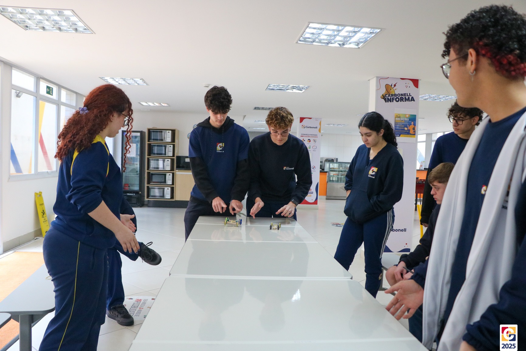 A atividade, além de divertida, colocou em prática conceitos fundamentais da Mecânica, como massa, aceleração e armazenamento de energia nos elásticos. Cada grupo precisou aprimorar seus próprios protótipos, buscando maior eficiência e desempenho nas corridas. 🏎