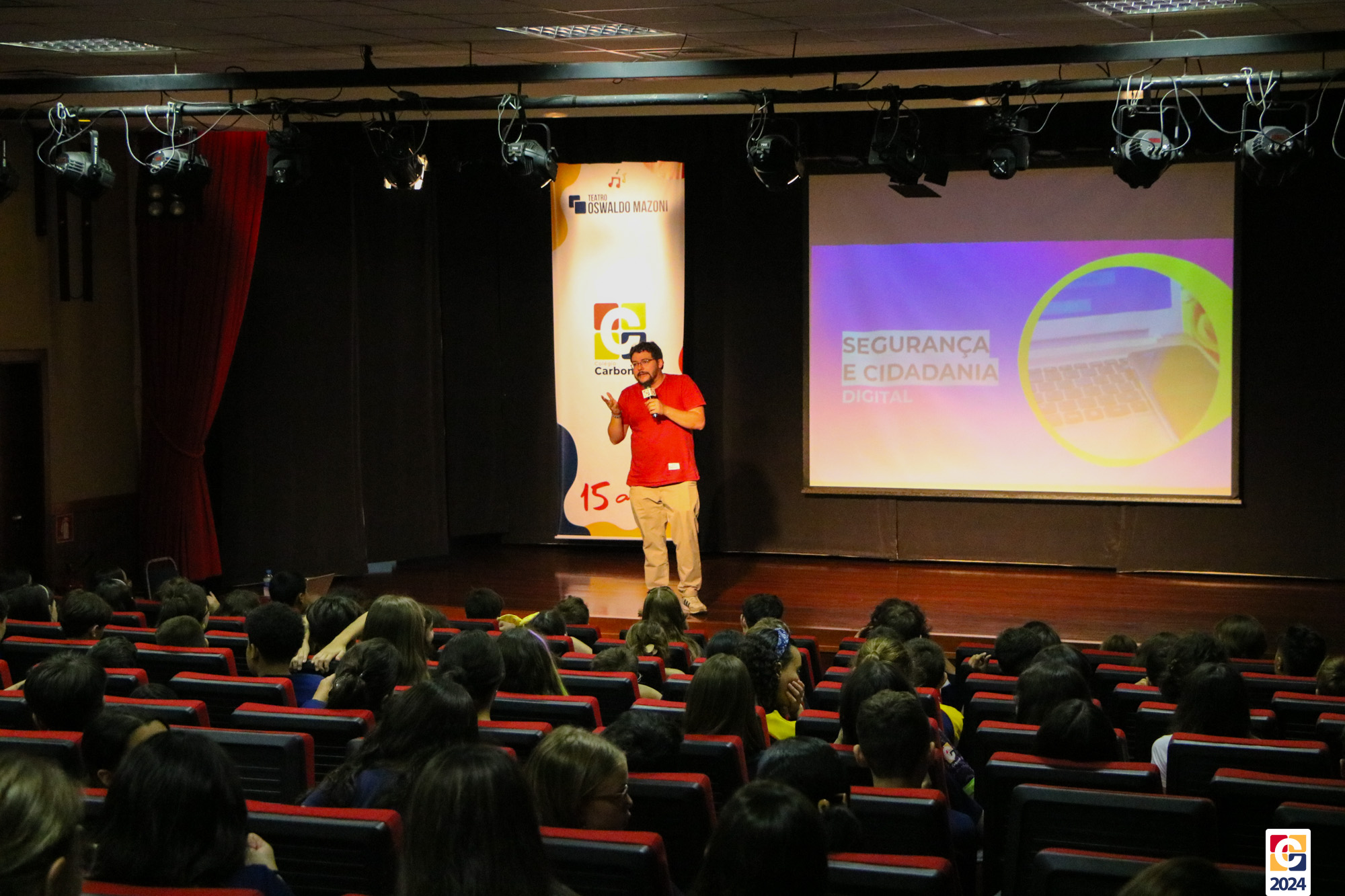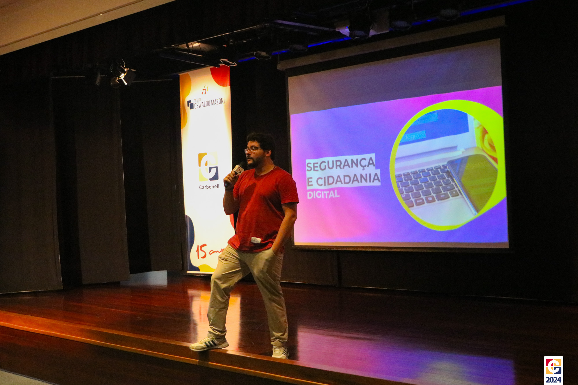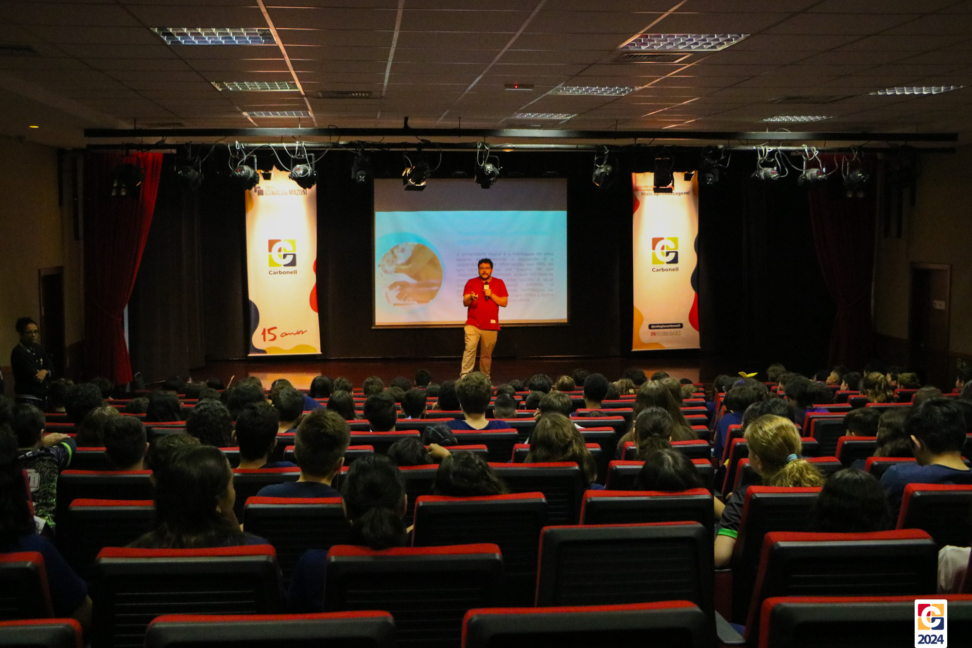 Ontem (19), no Teatro Oswaldo Mazoni, o palestrante Kadu Braga conduziu uma palestra sobre “Segurança e Cidadania Digital”. O evento, em parceria com a INICIE, abordou temas cruciais para o mundo digital atual. 🎤